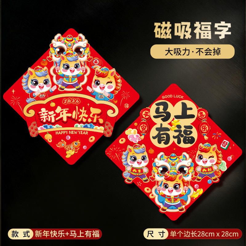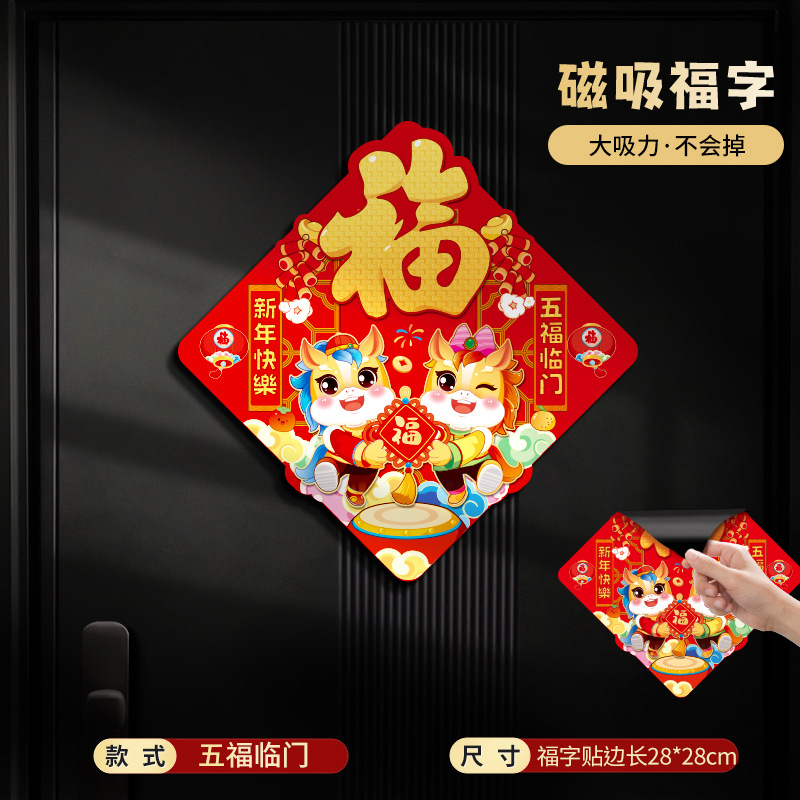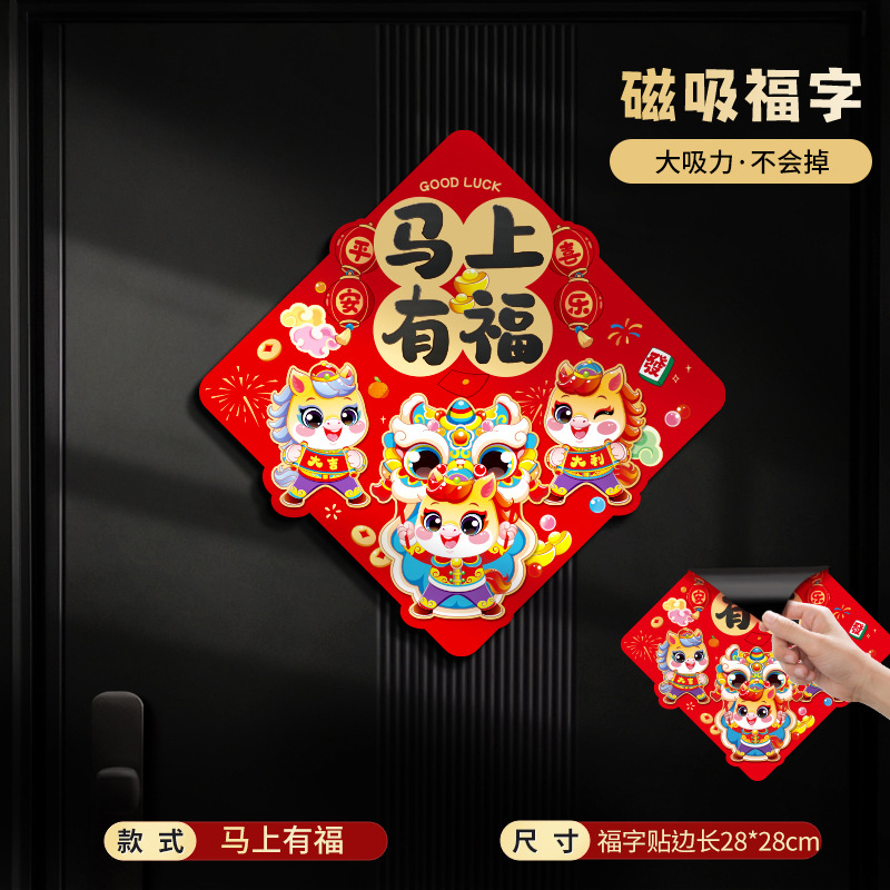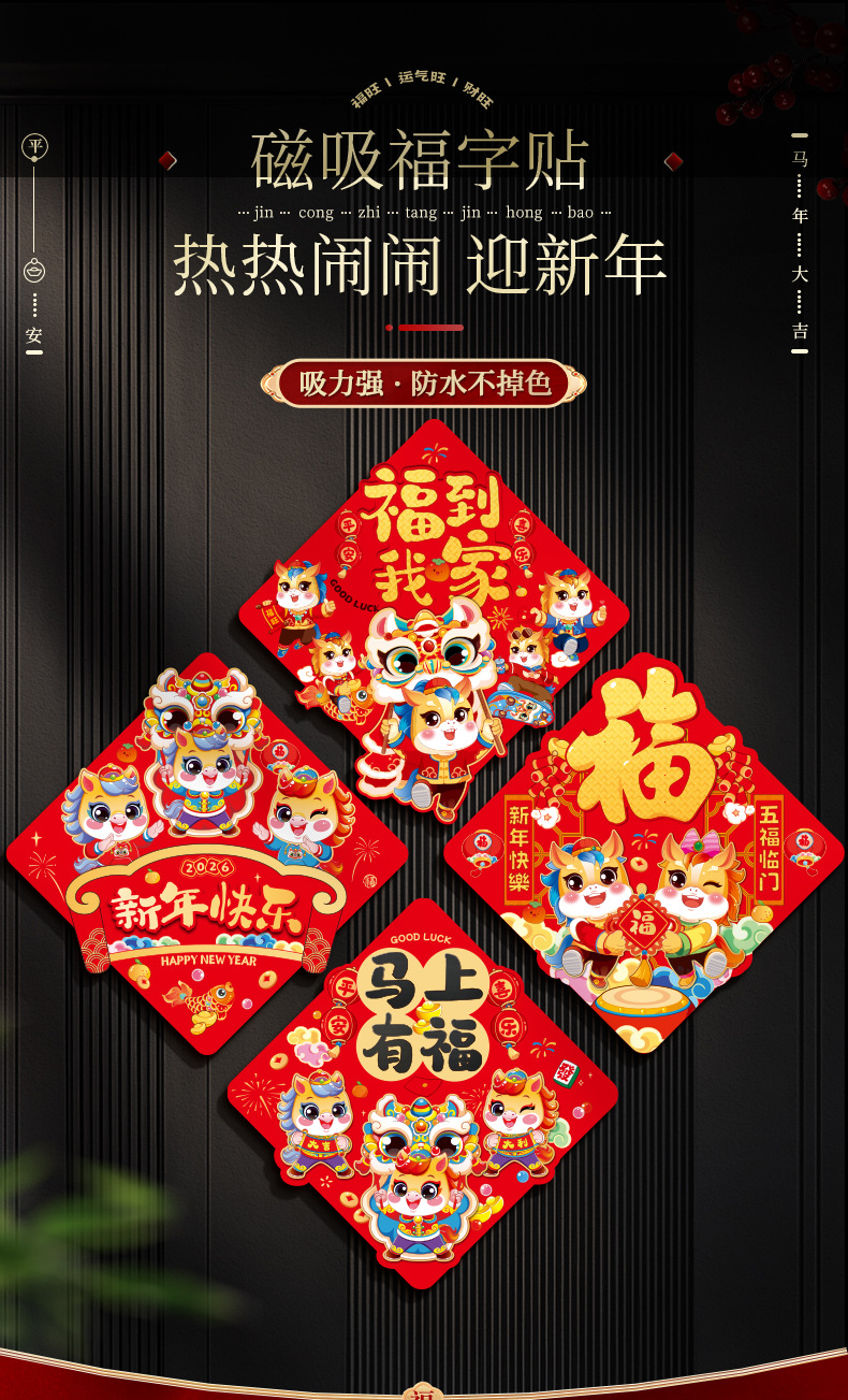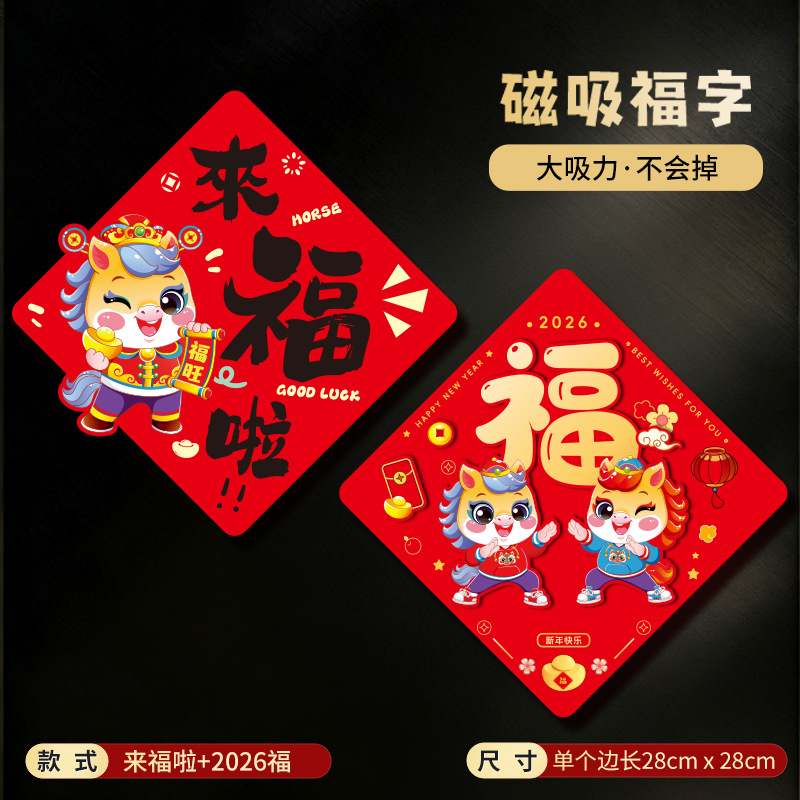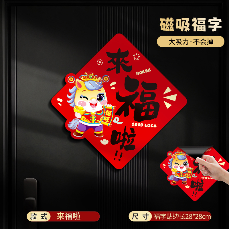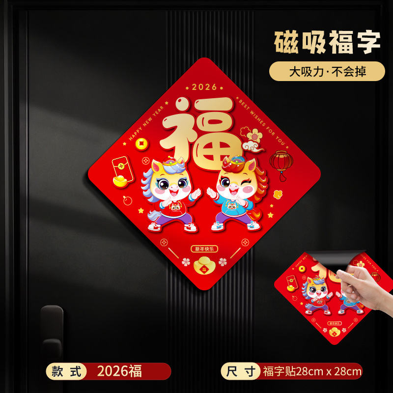 喜庆福字门贴2026马年新款福字贴春节年货防盗门实用自粘磁吸装饰
