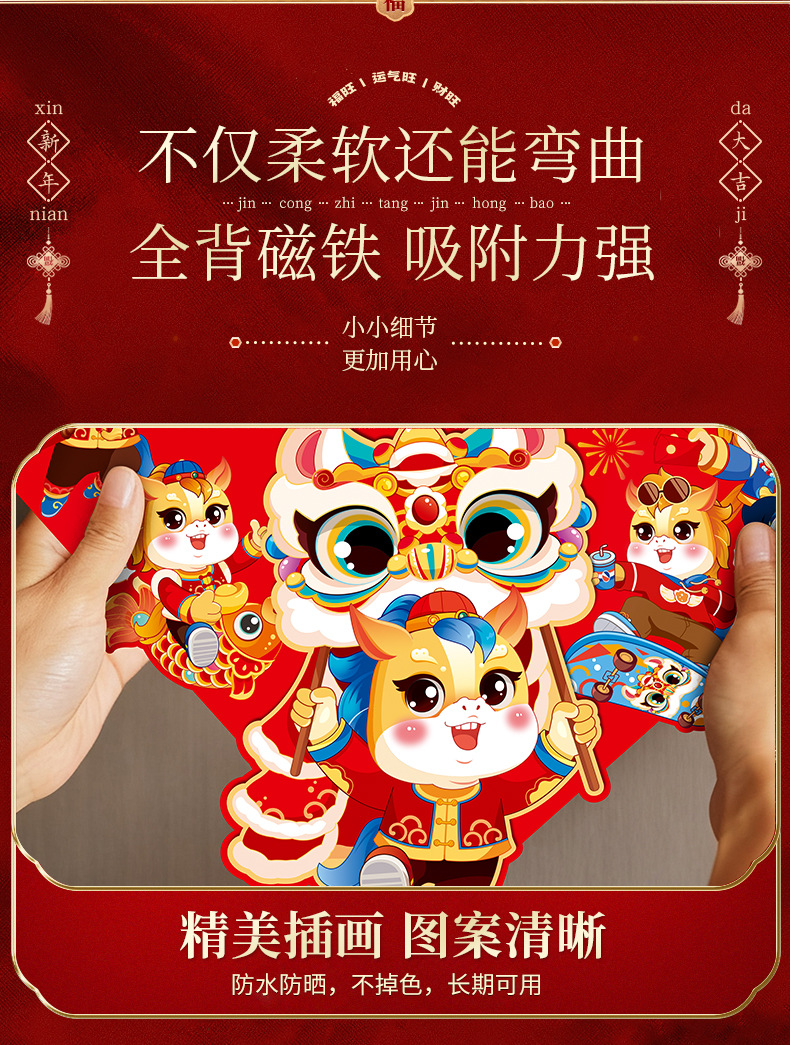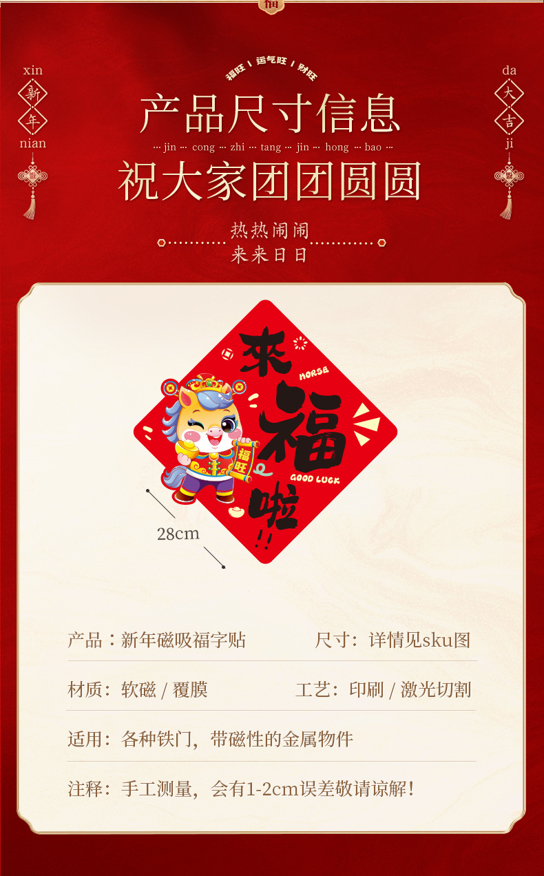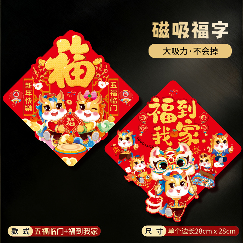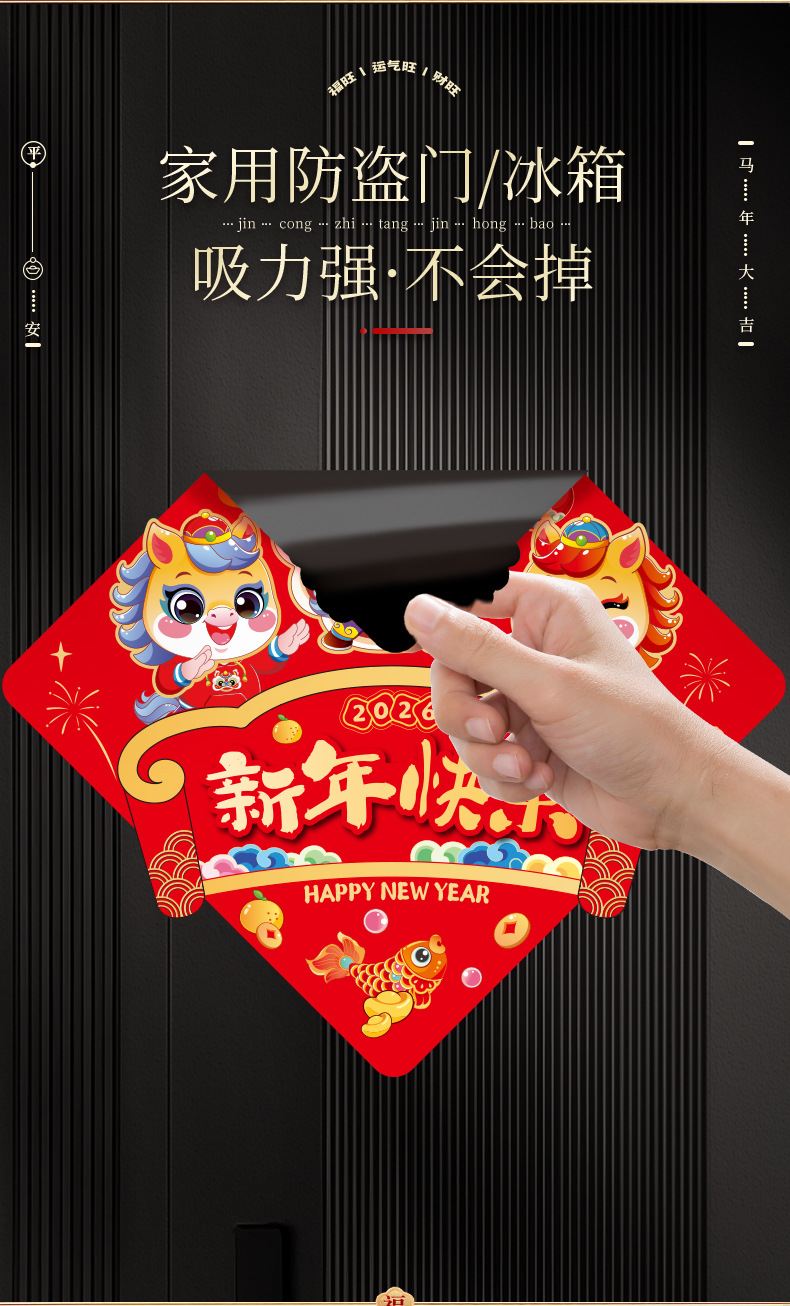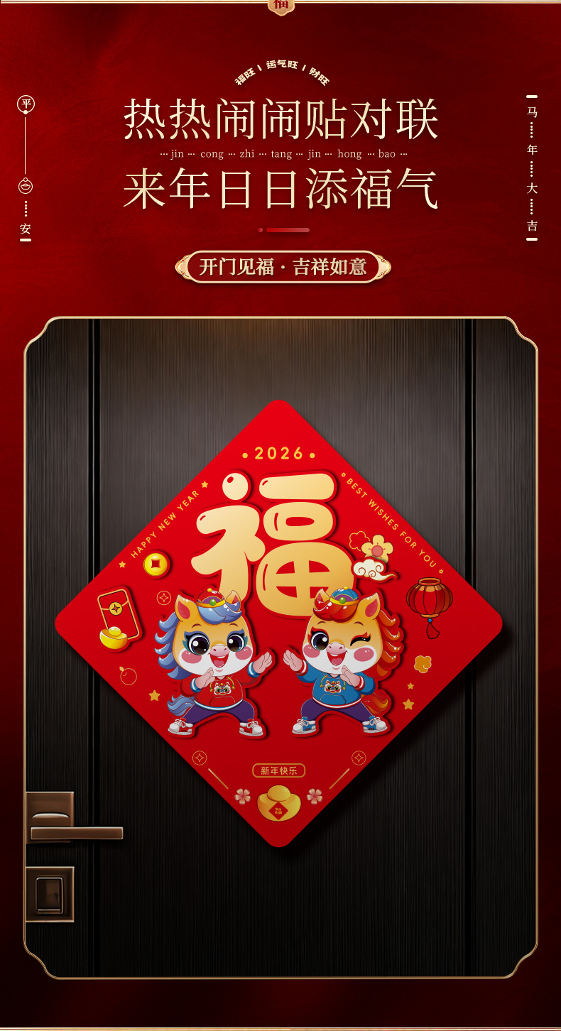 喜庆福字门贴2026马年新款福字贴春节年货防盗门实用自粘磁吸装饰