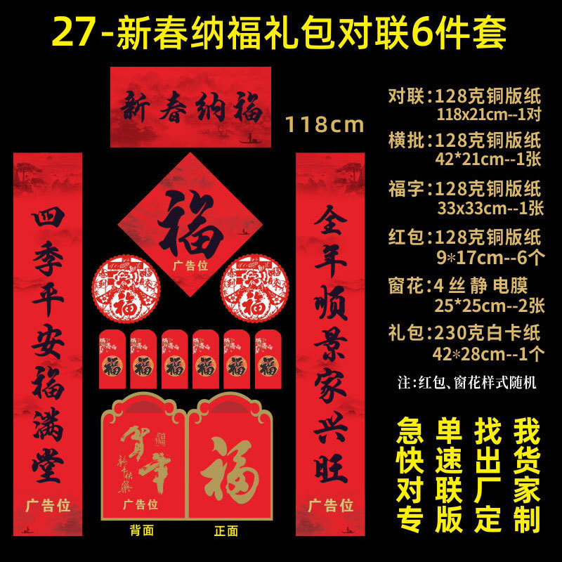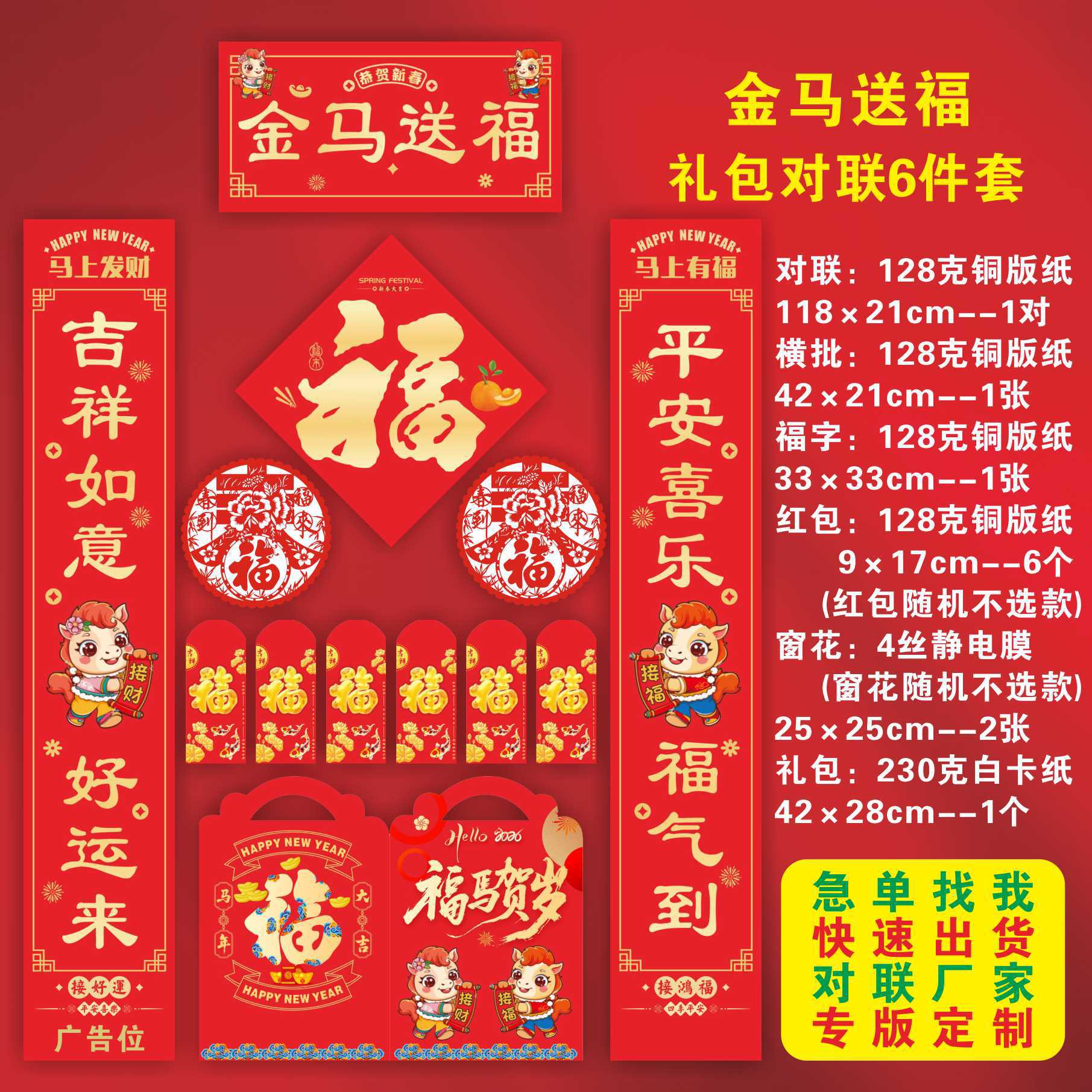 2026马年新春对联定制企业logo烫金春联礼盒套装银行大礼包专版