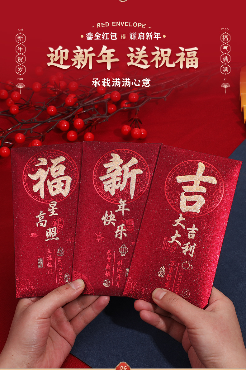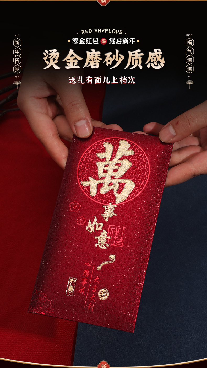 批发蛇年磨砂新年喜庆红包2025新款福气满满新春过年利是封红包袋