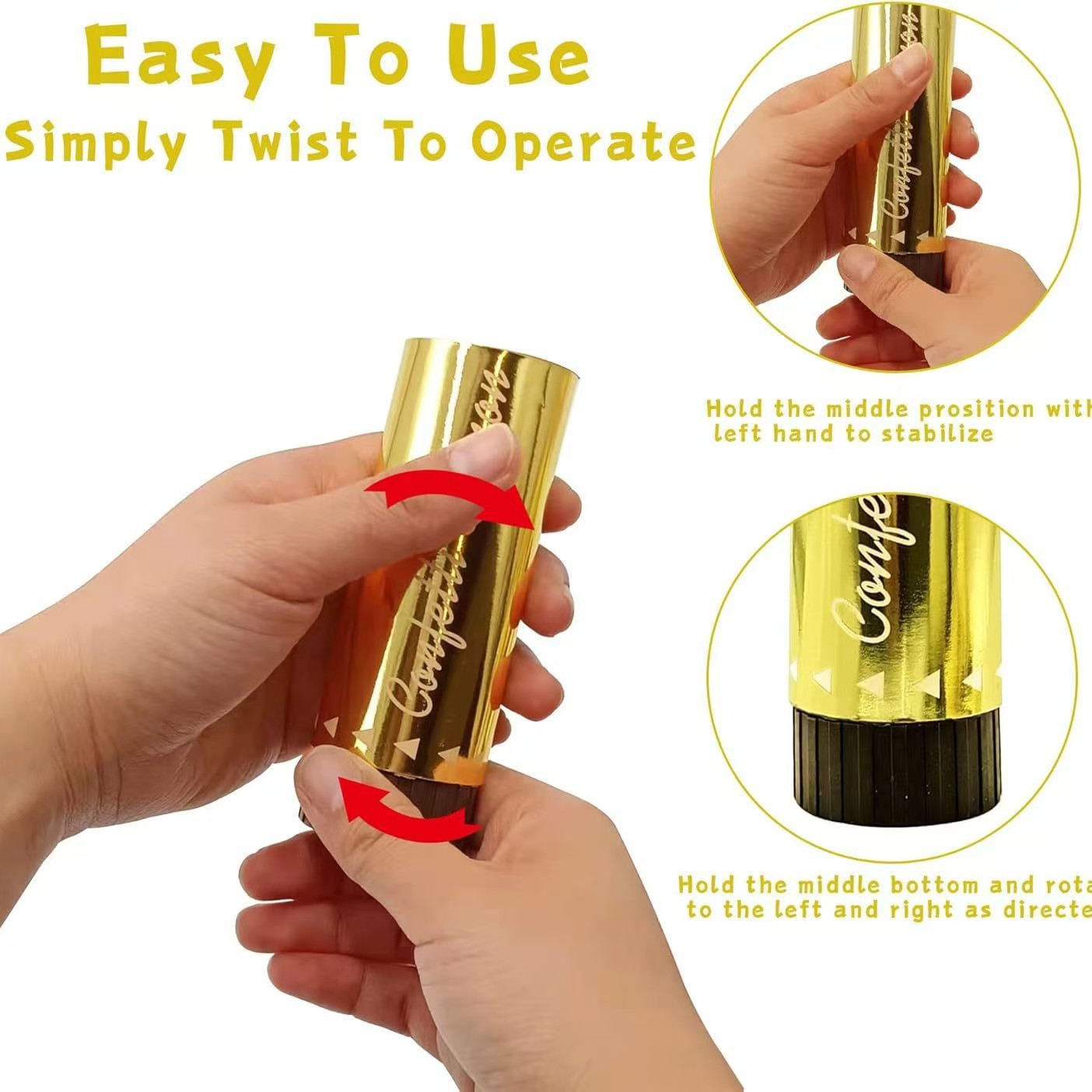 跨境专供弹簧礼花11CM金银玫瑰金旋转手持小礼炮厂家直销批发现货