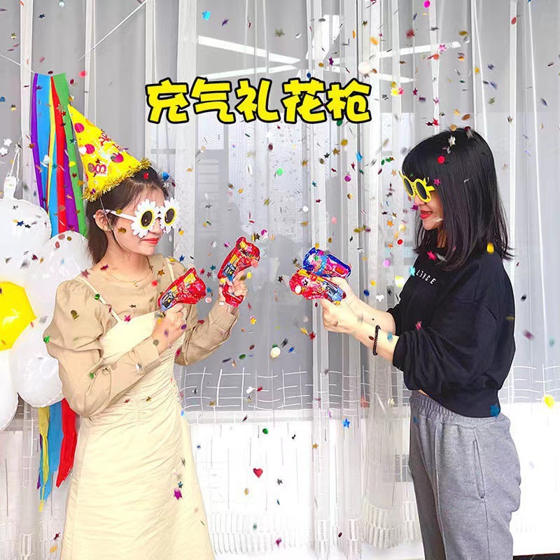 现货自动充气礼花手枪玩具 生日派对结婚氛围手持亮片喷花礼炮
