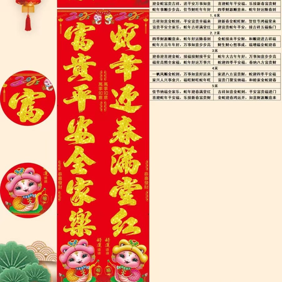 2026年新年生肖烫金对联新款植绒撒金粉对联黑字书法对联厂家批发