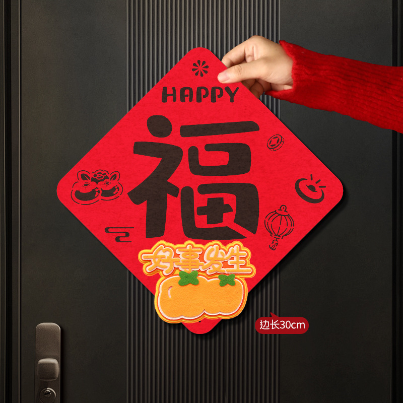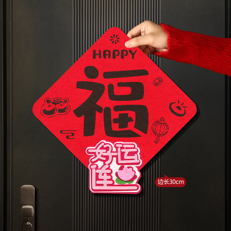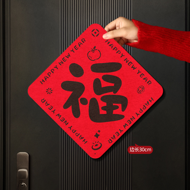 马年窗花2026年新年新款双层毛毡福字春节过年贺年门贴装饰用品