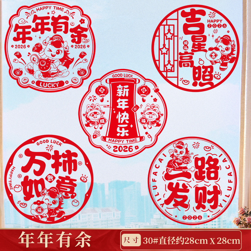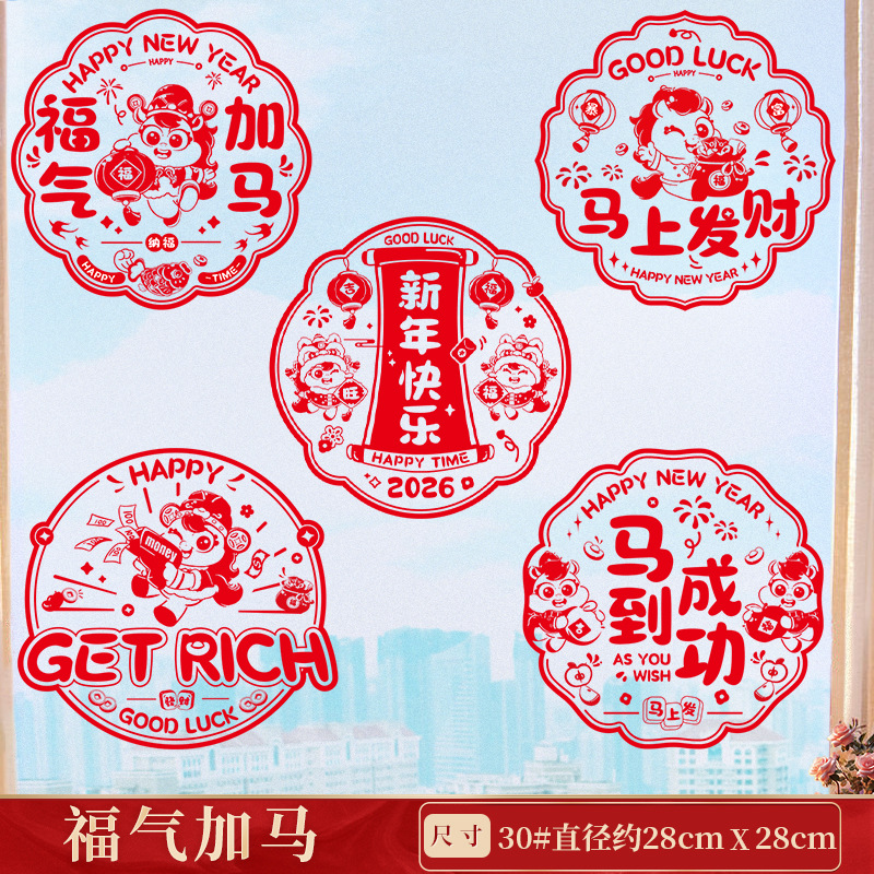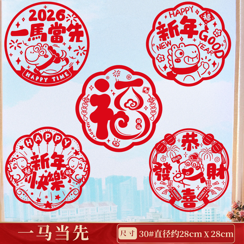 新款马年2026新年客厅卧室窗户静电贴福字窗花过年春节装饰玻璃贴