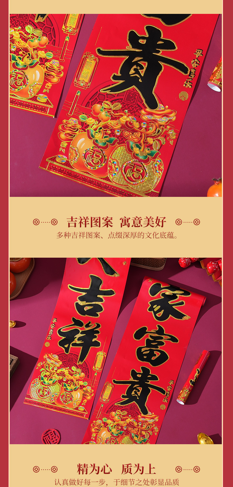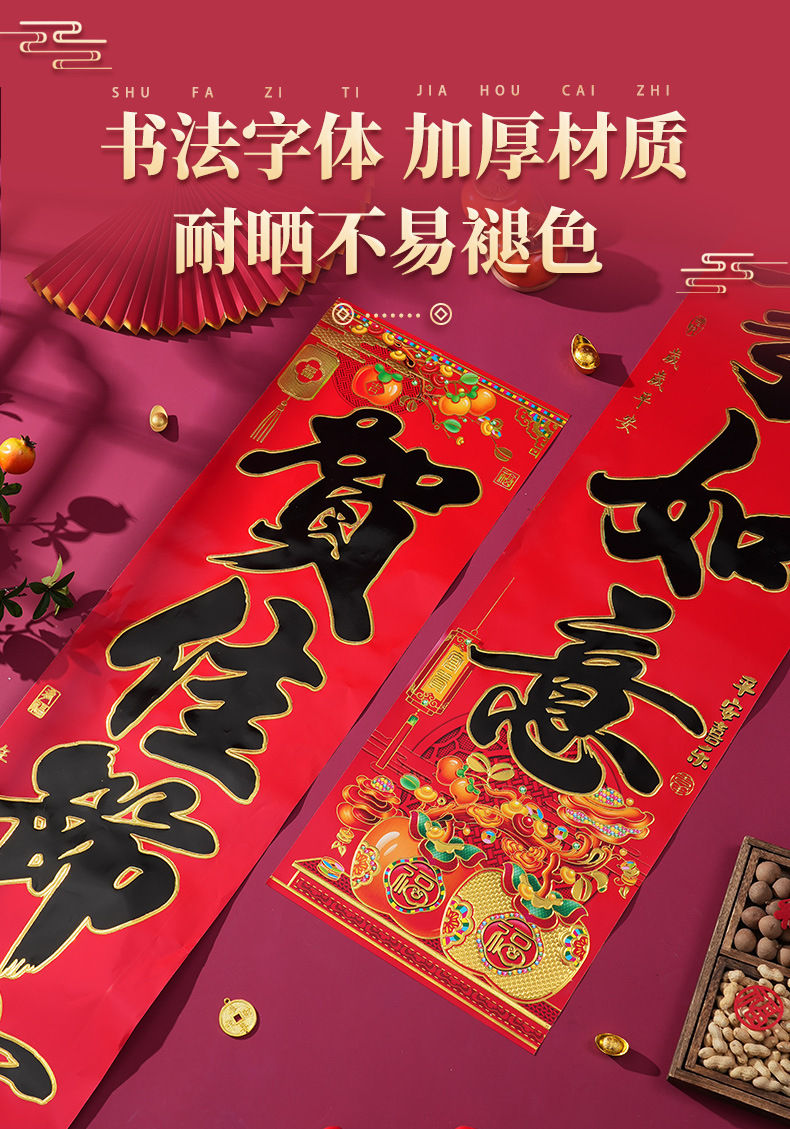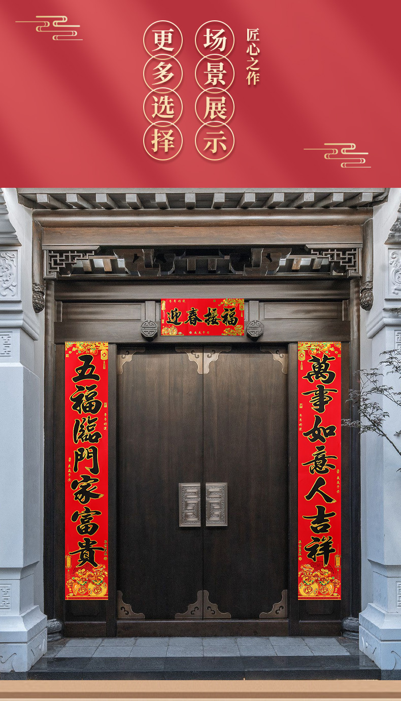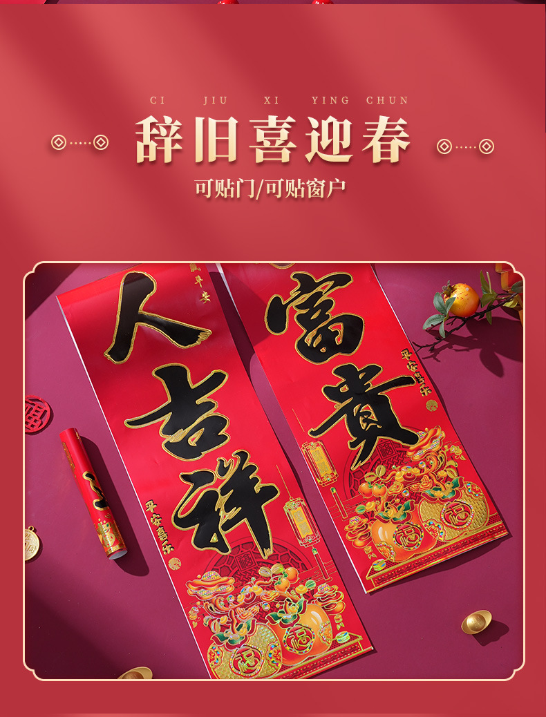 正唐2026年新款植绒对联新春家用春节全背胶绒布春联门贴门联批发