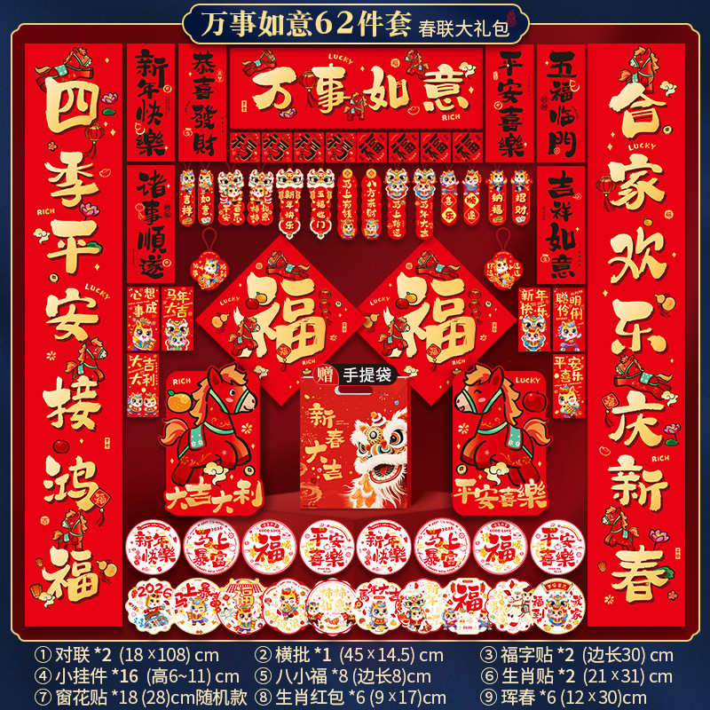 新年对联大礼包2026马年新款门联春联套装过年家用大门门贴批货