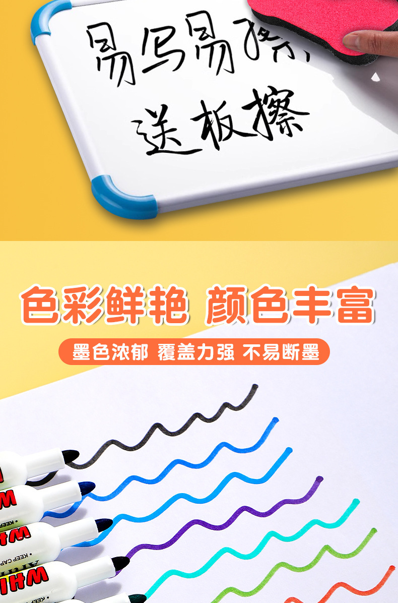 可加墨白板笔大容量易写易擦教师专用环保无毒彩色儿童记号笔套装