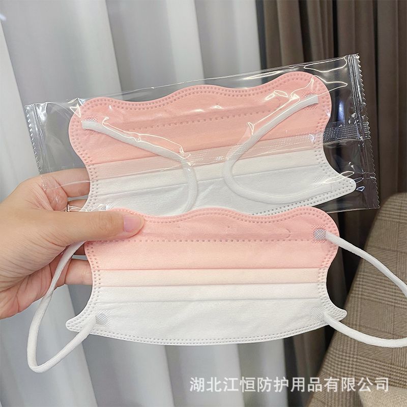 V型粉色渐变腮红口罩ins高颜值可爱甜美时尚一次性独立包装口罩