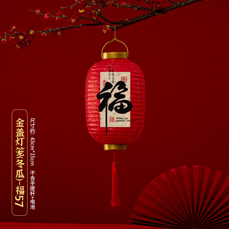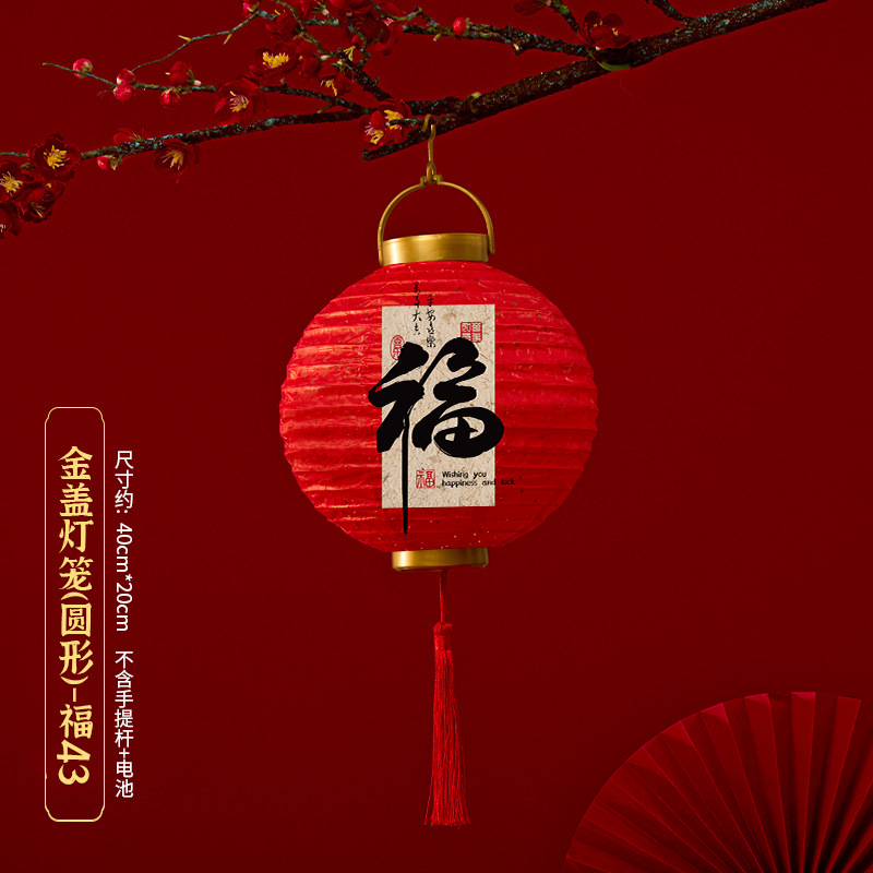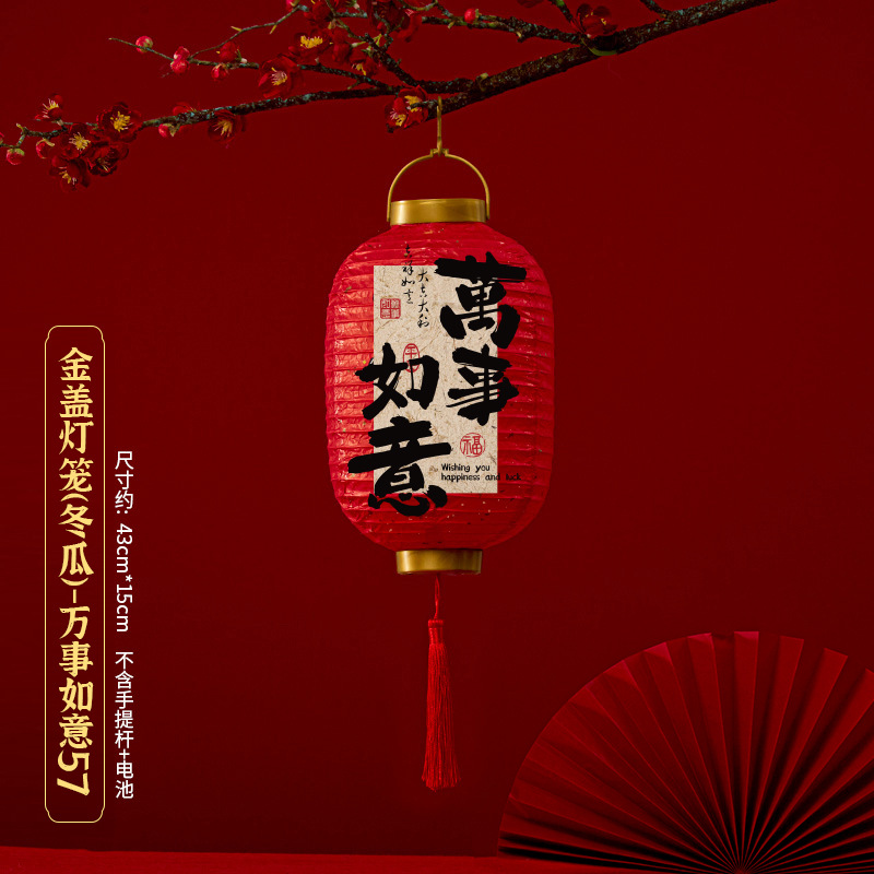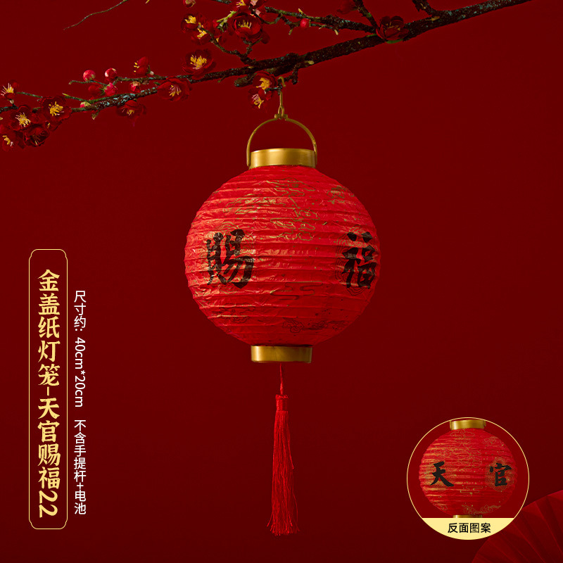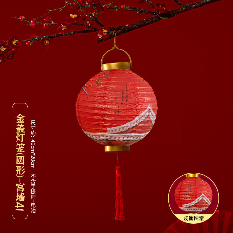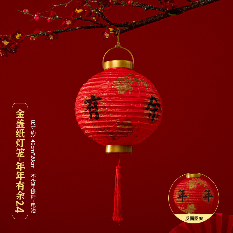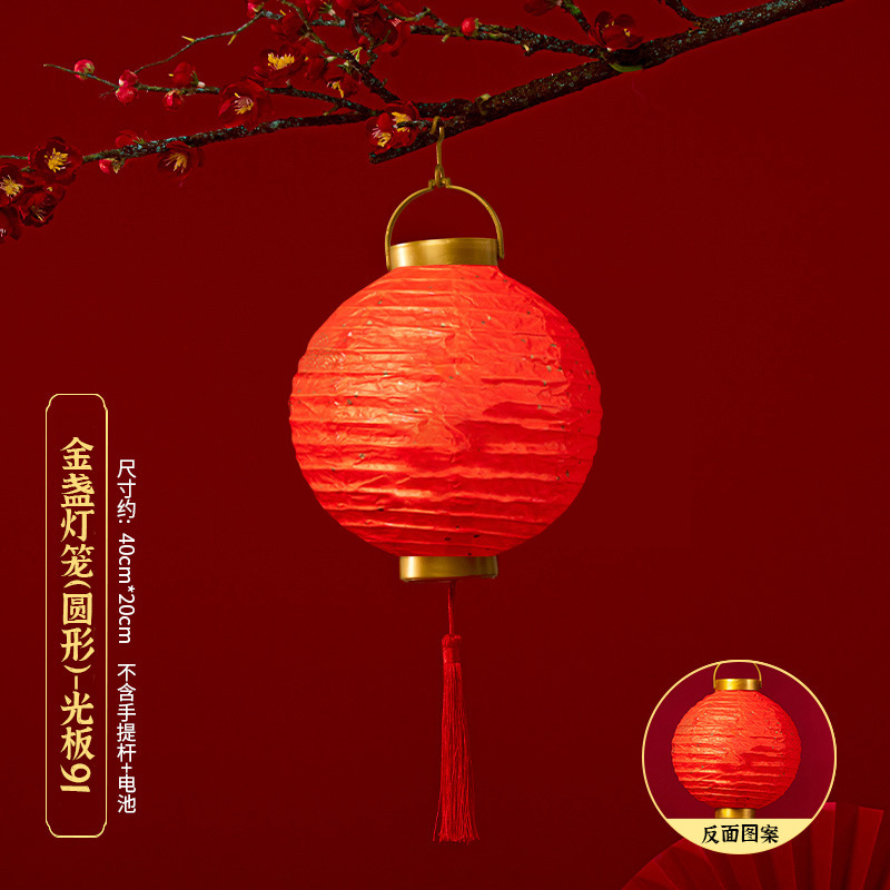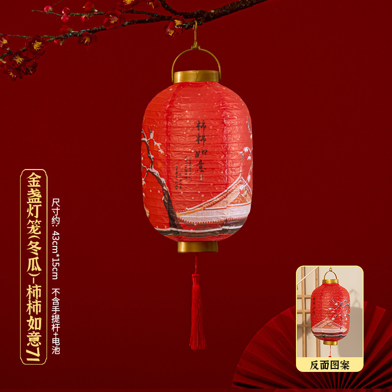 马年喜庆中式红色手提纸灯笼挂饰中国风春节金盖花灯发光手提装饰