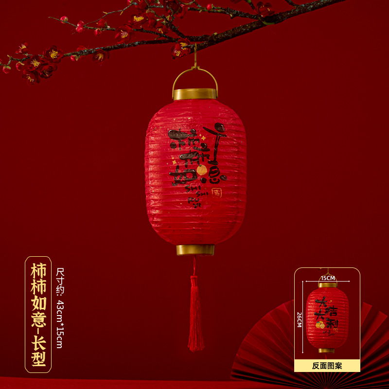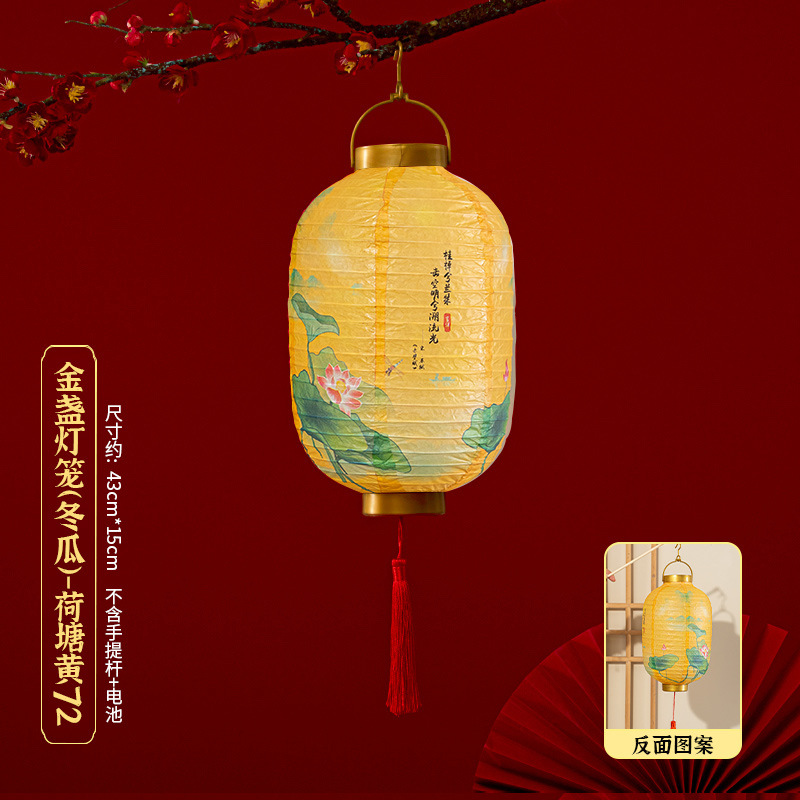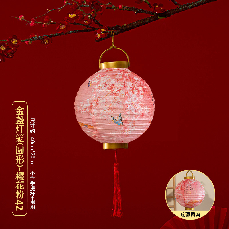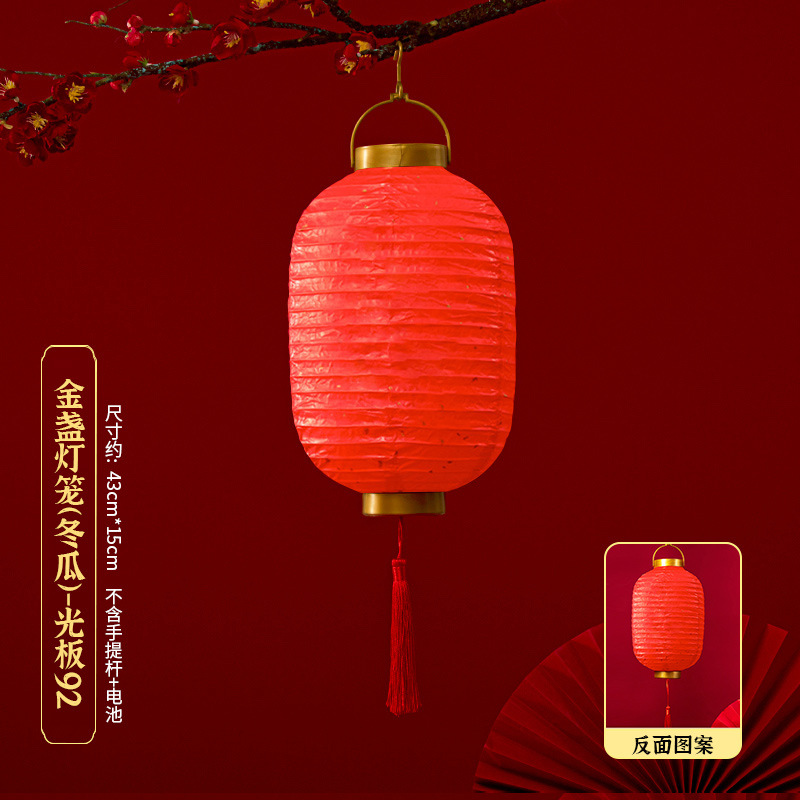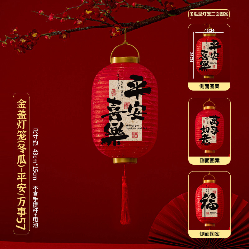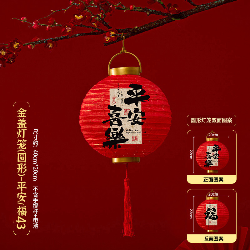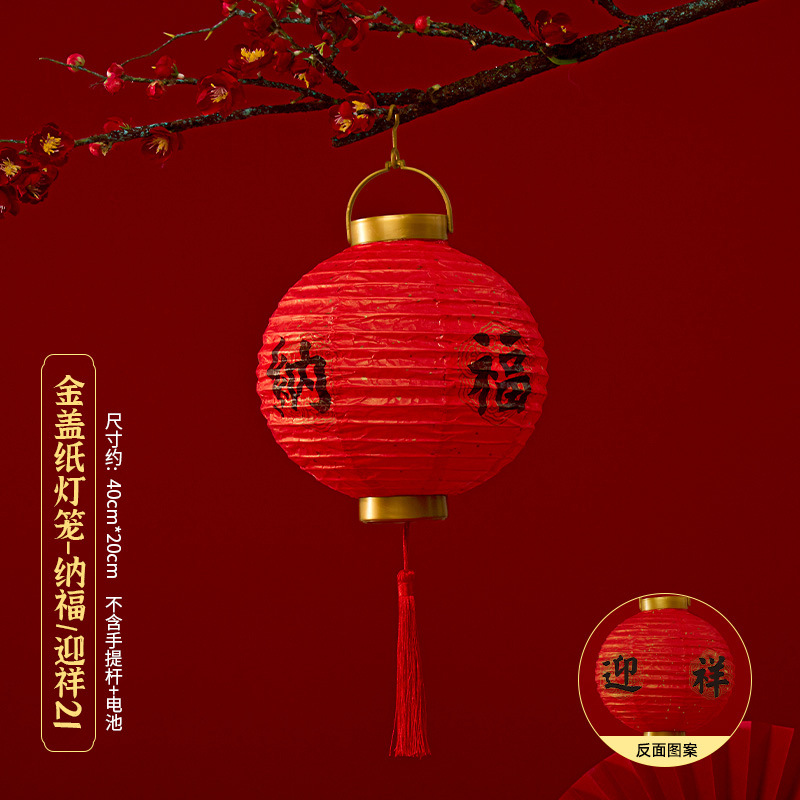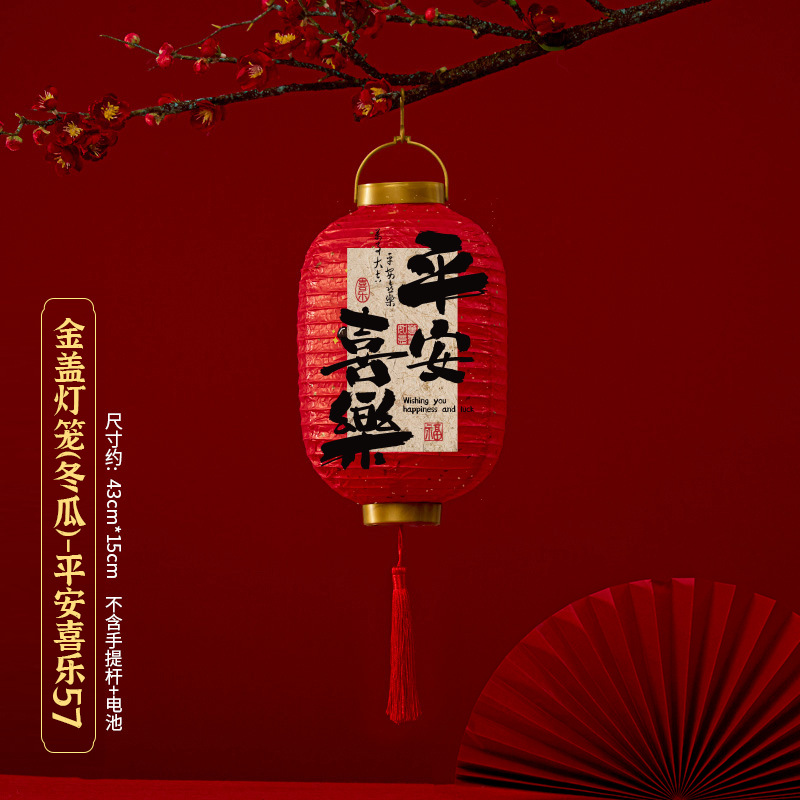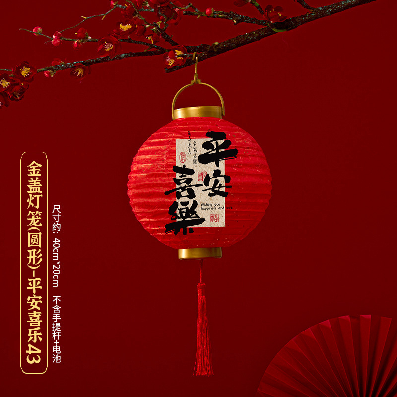 马年喜庆中式红色手提纸灯笼挂饰中国风春节金盖花灯发光手提装饰