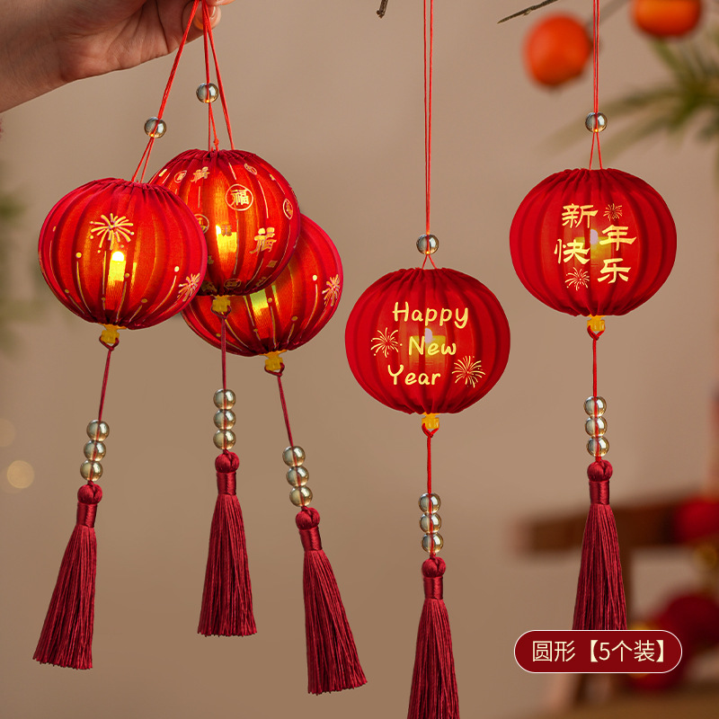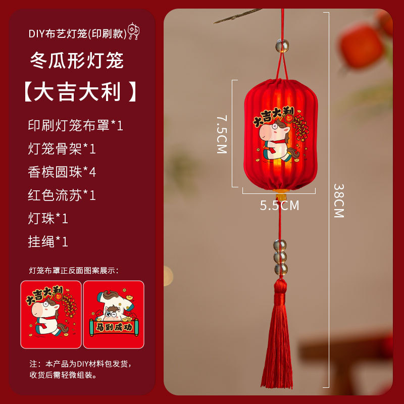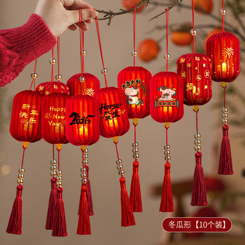 26马年新年灯笼场景布置马年diy布艺发光小灯笼挂饰中式红色挂件