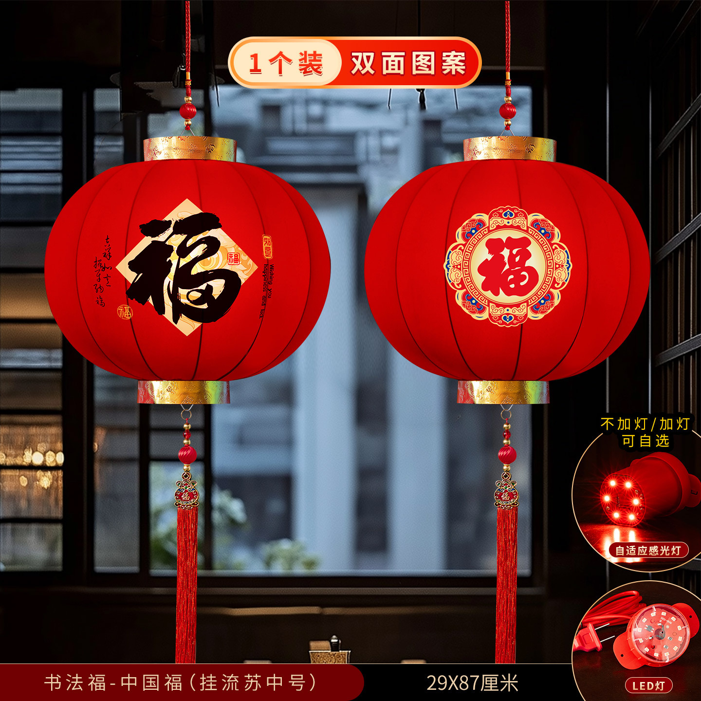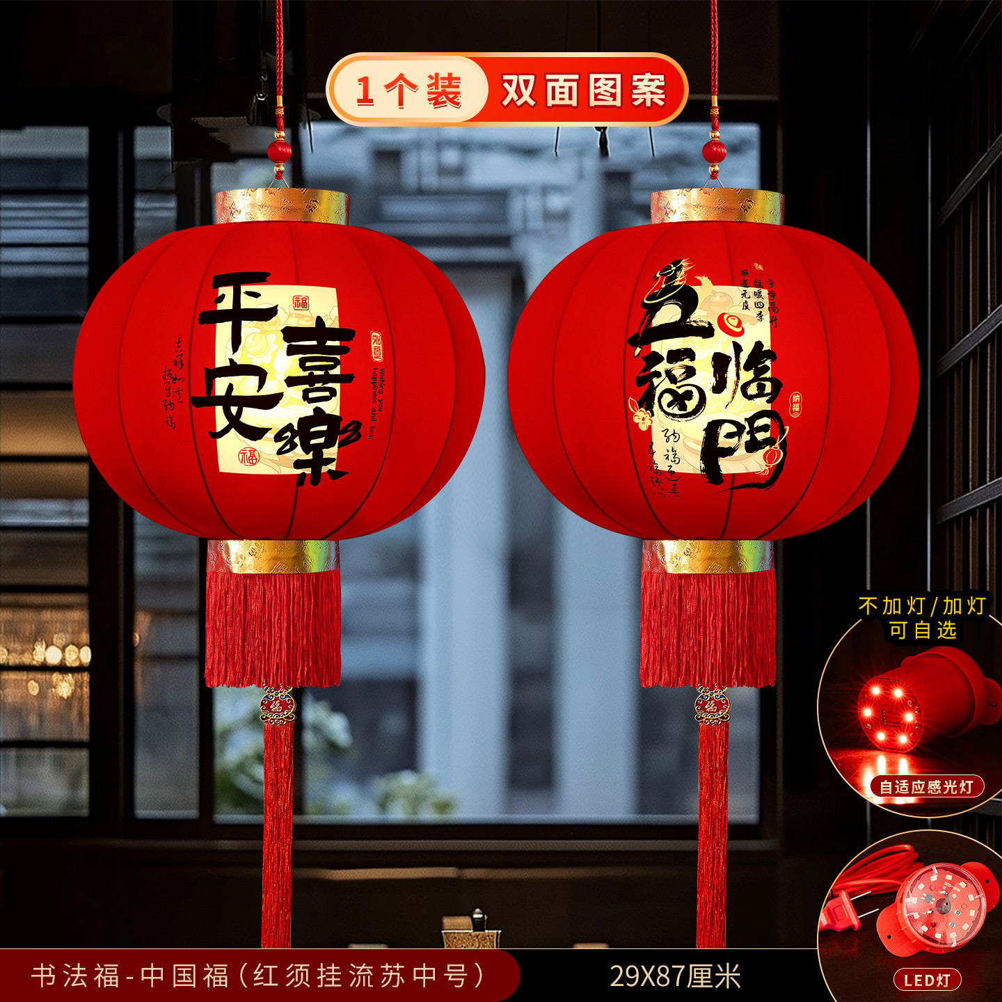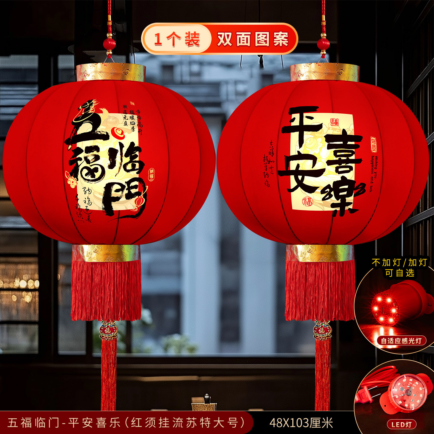 2026新款大红灯笼春节新年装饰门口免插电led灯阳台挂饰绒布灯笼