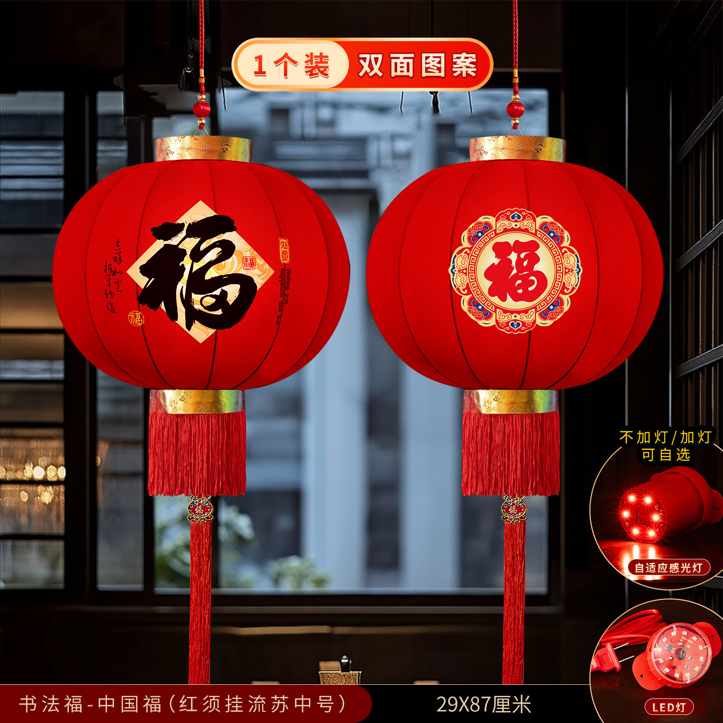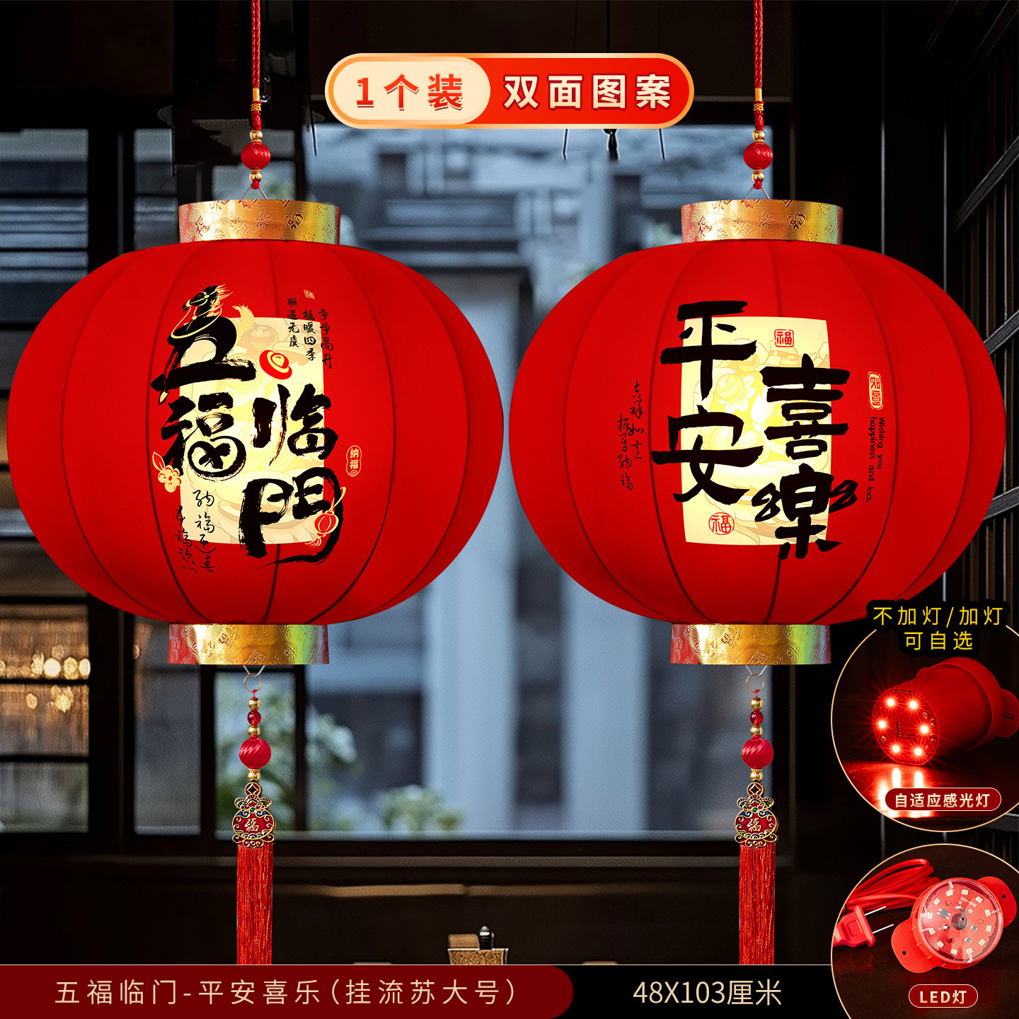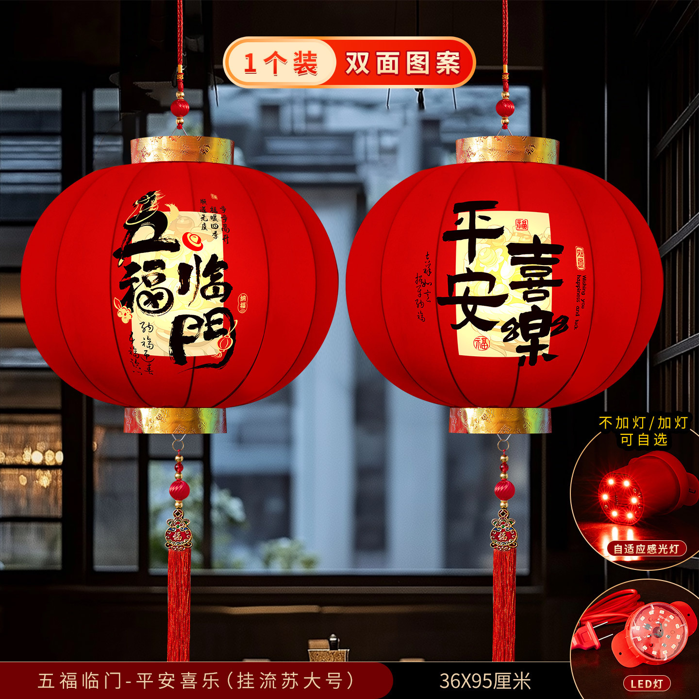 2026新款大红灯笼春节新年装饰门口免插电led灯阳台挂饰绒布灯笼