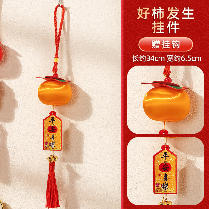 新年柿子挂件平安喜乐春节门把手装饰2026新款春节用品年货批发