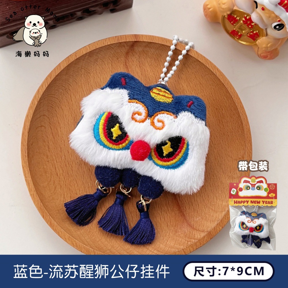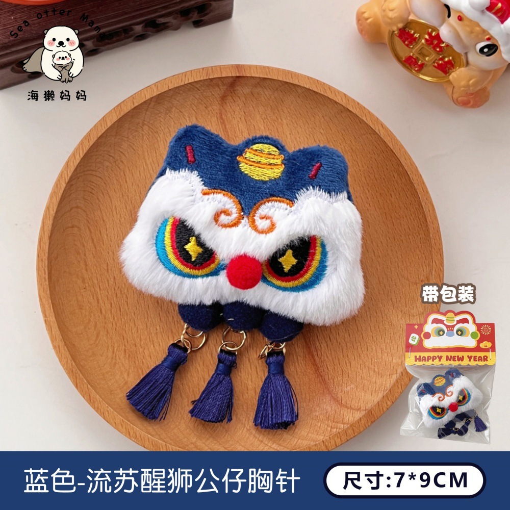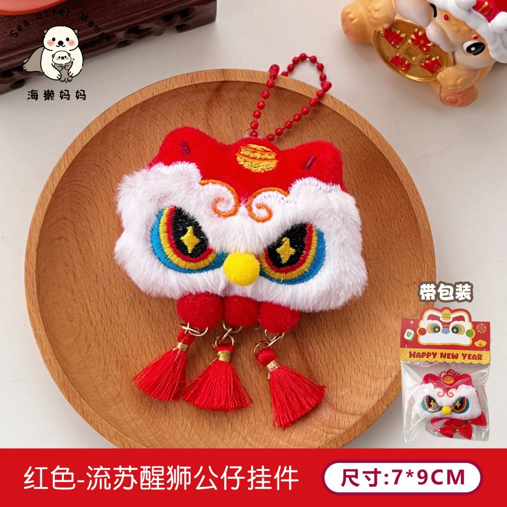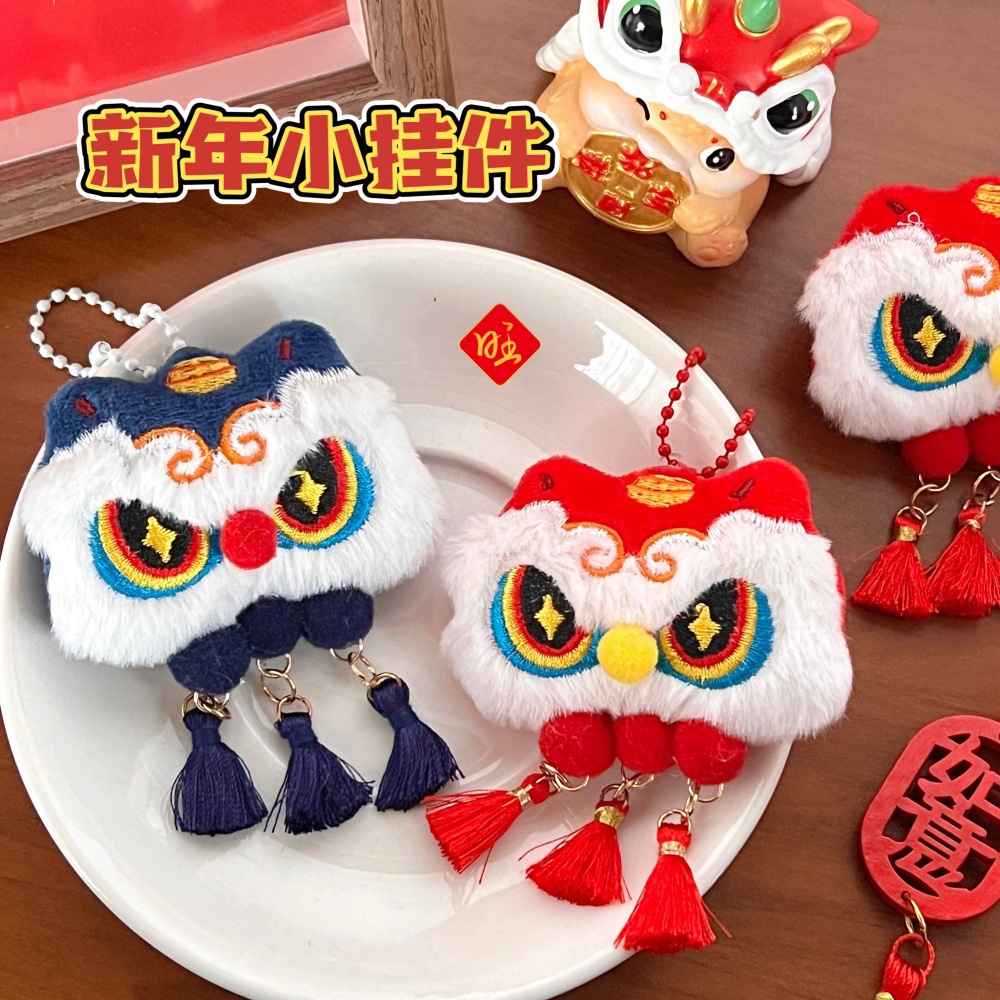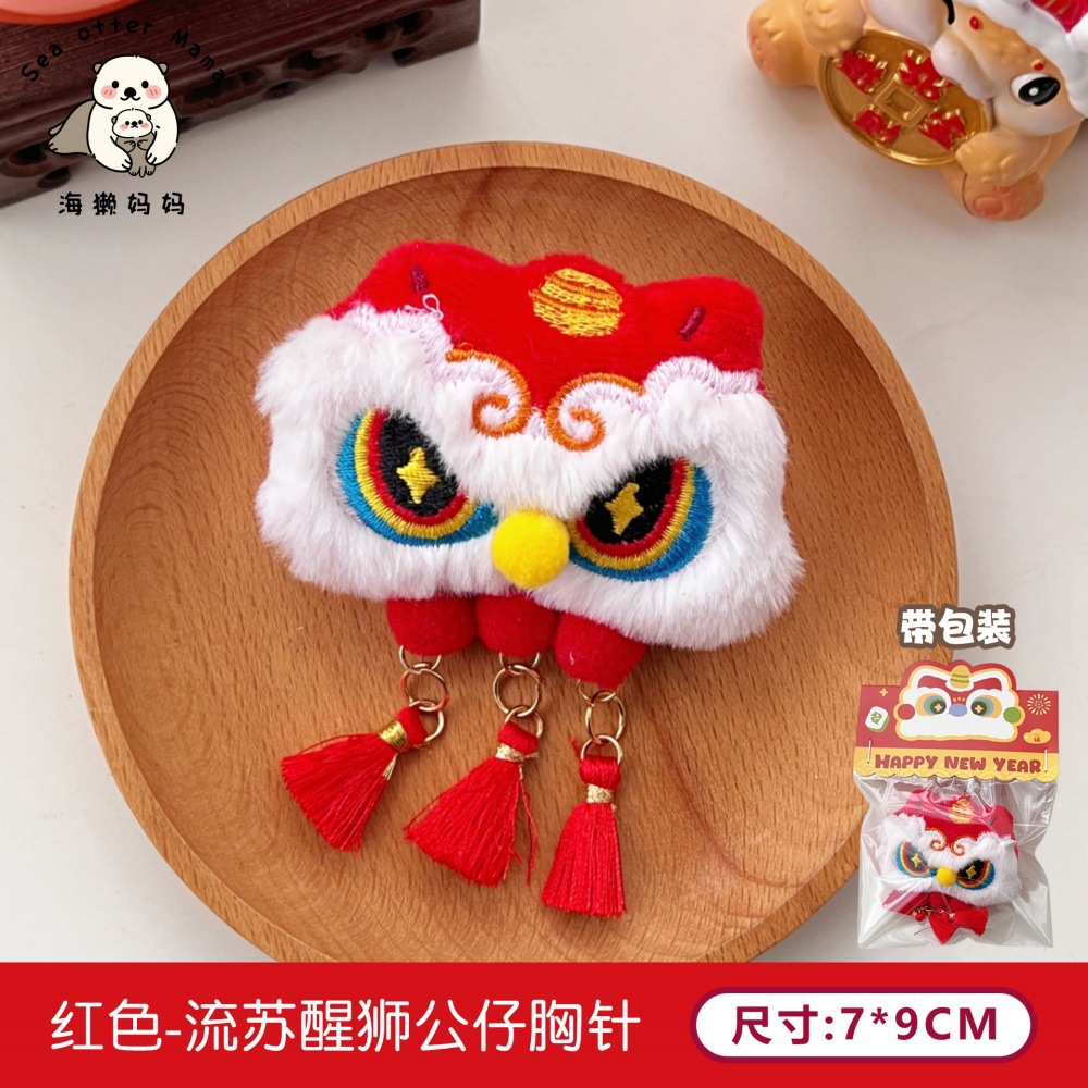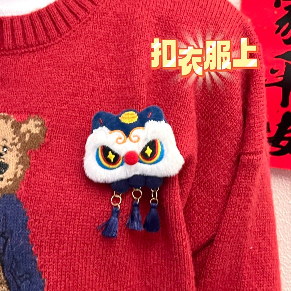 新年款可爱毛绒醒狮公仔挂件国风玩偶胸针百搭钥匙扣饰品装饰挂坠