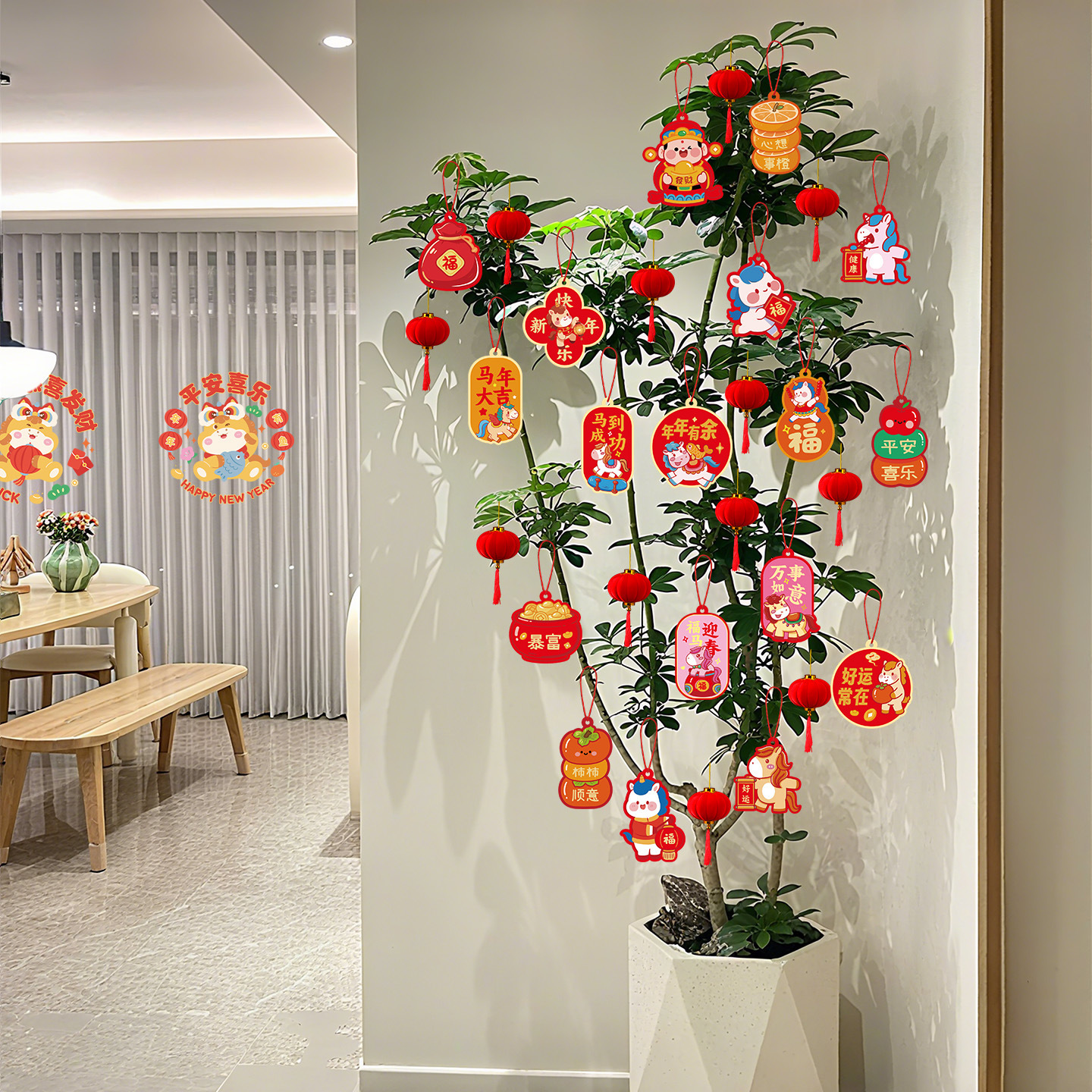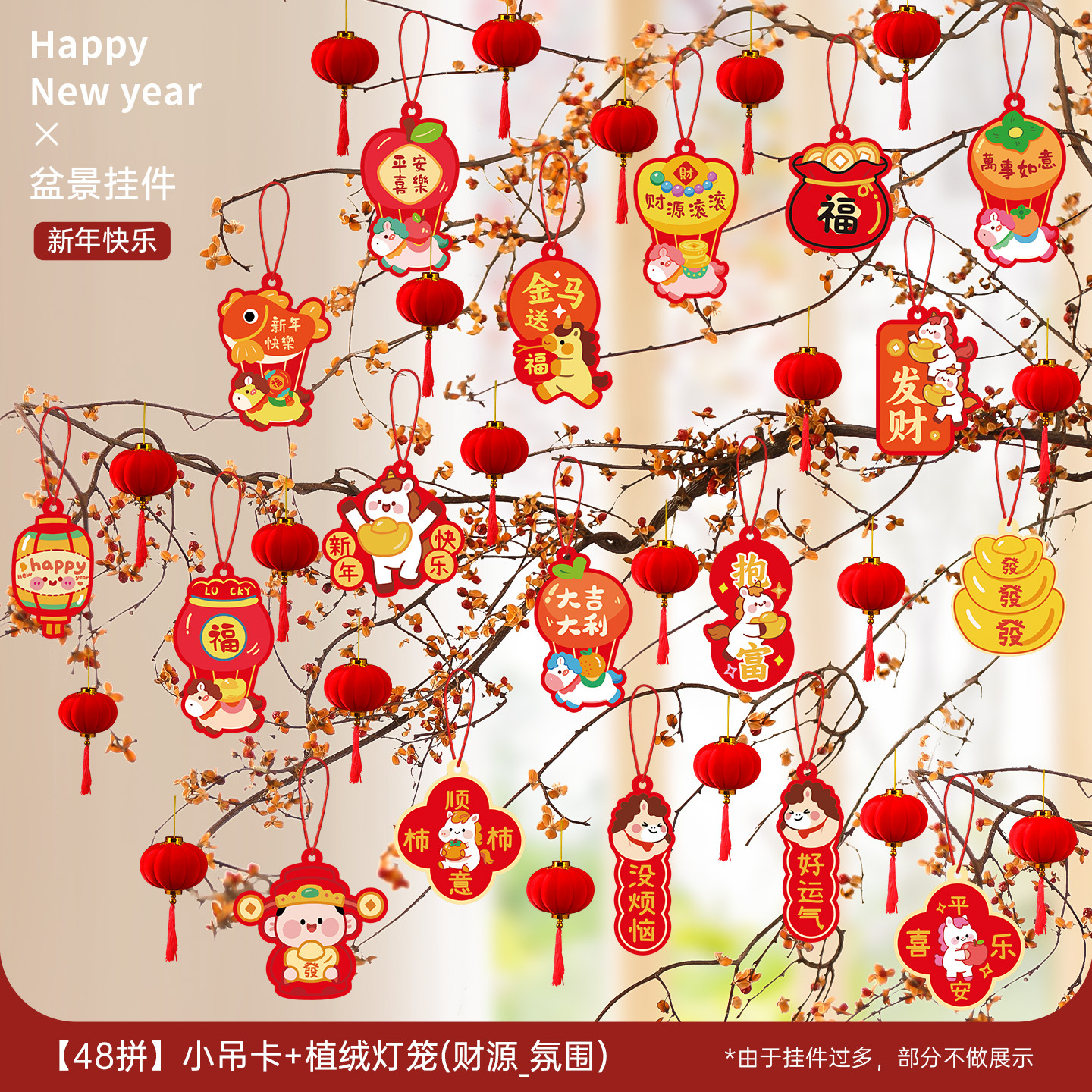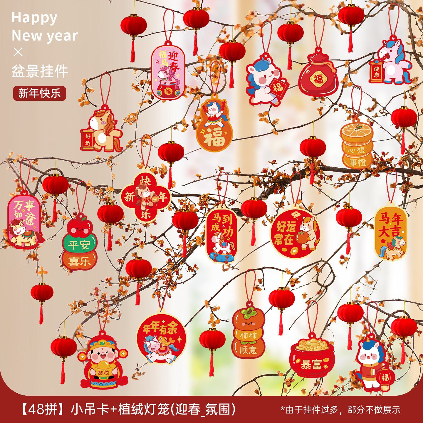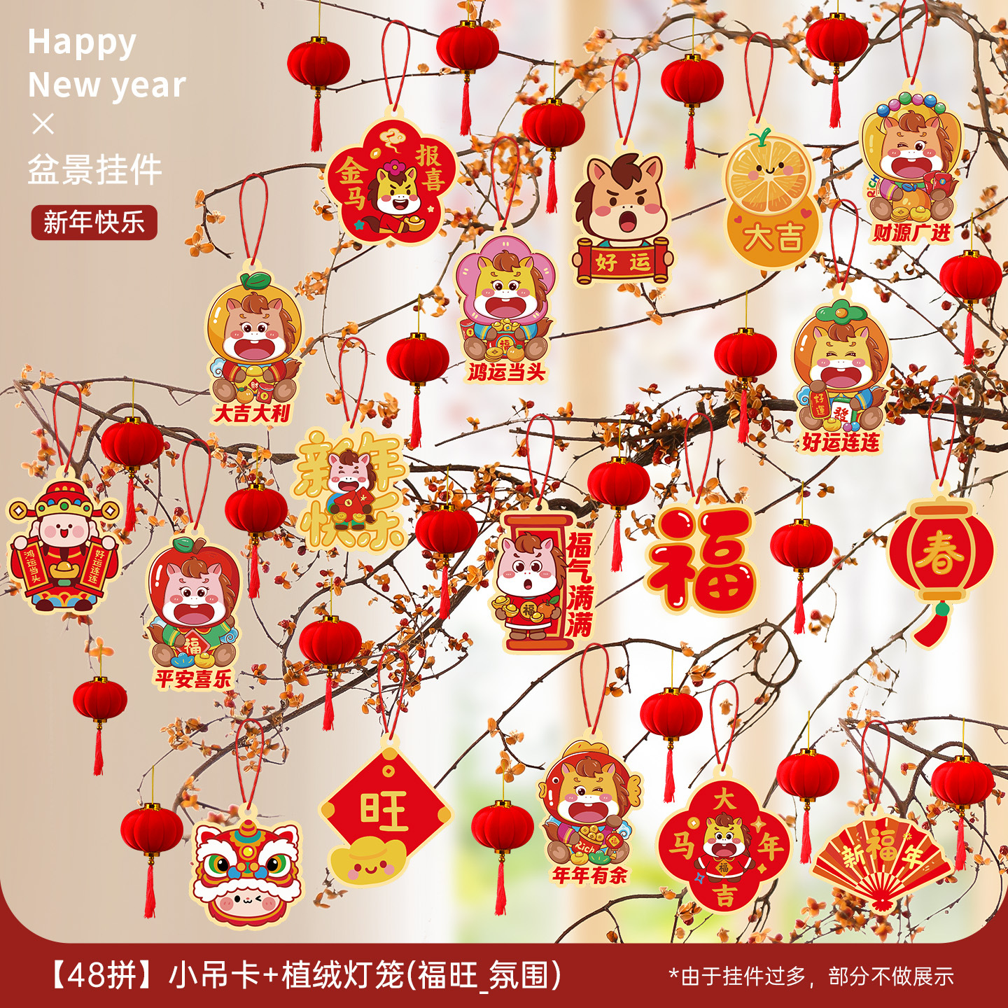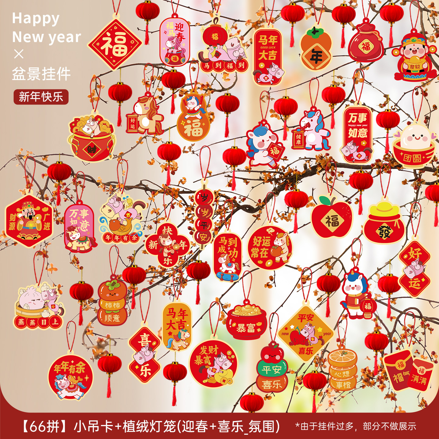 新年装饰品福字挂件2026马年春节过年布置室内盆栽绿植小灯笼挂饰