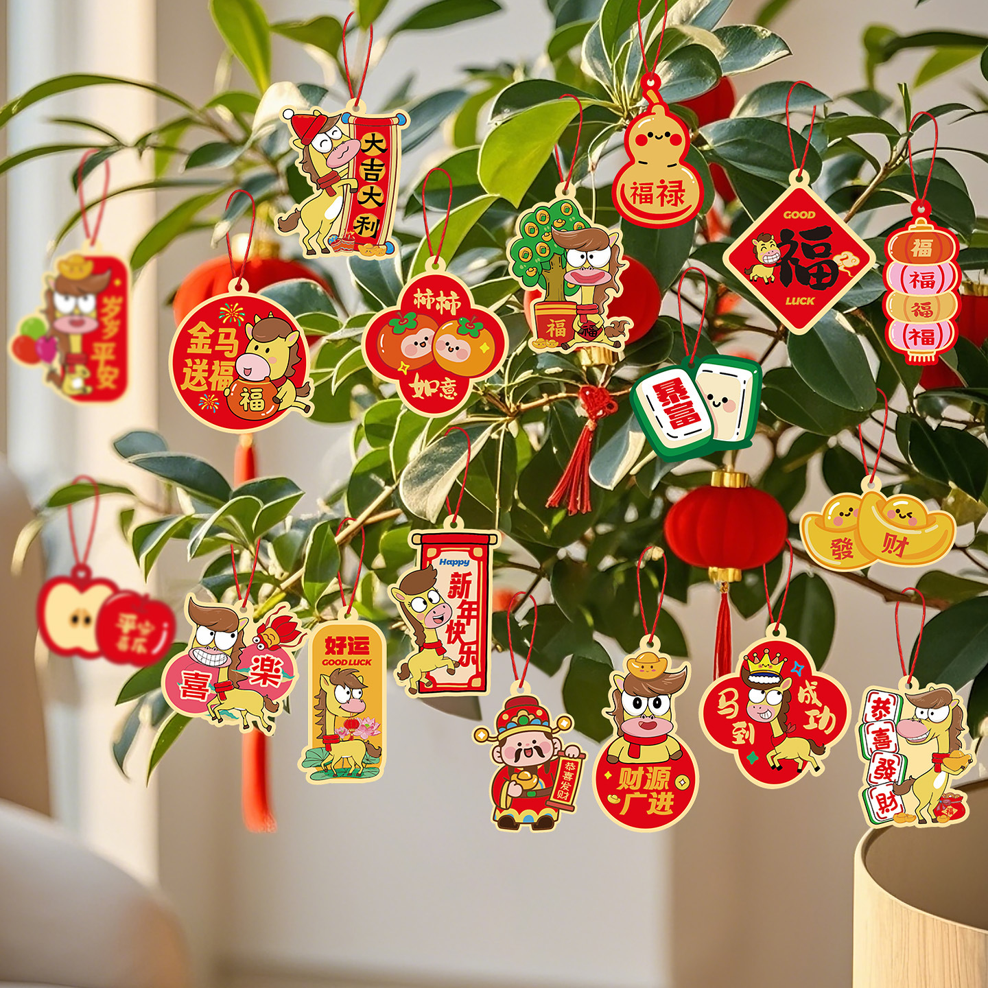 2026新款马年福字小挂件新年盆栽绿植装饰品春节过年场景氛围布置