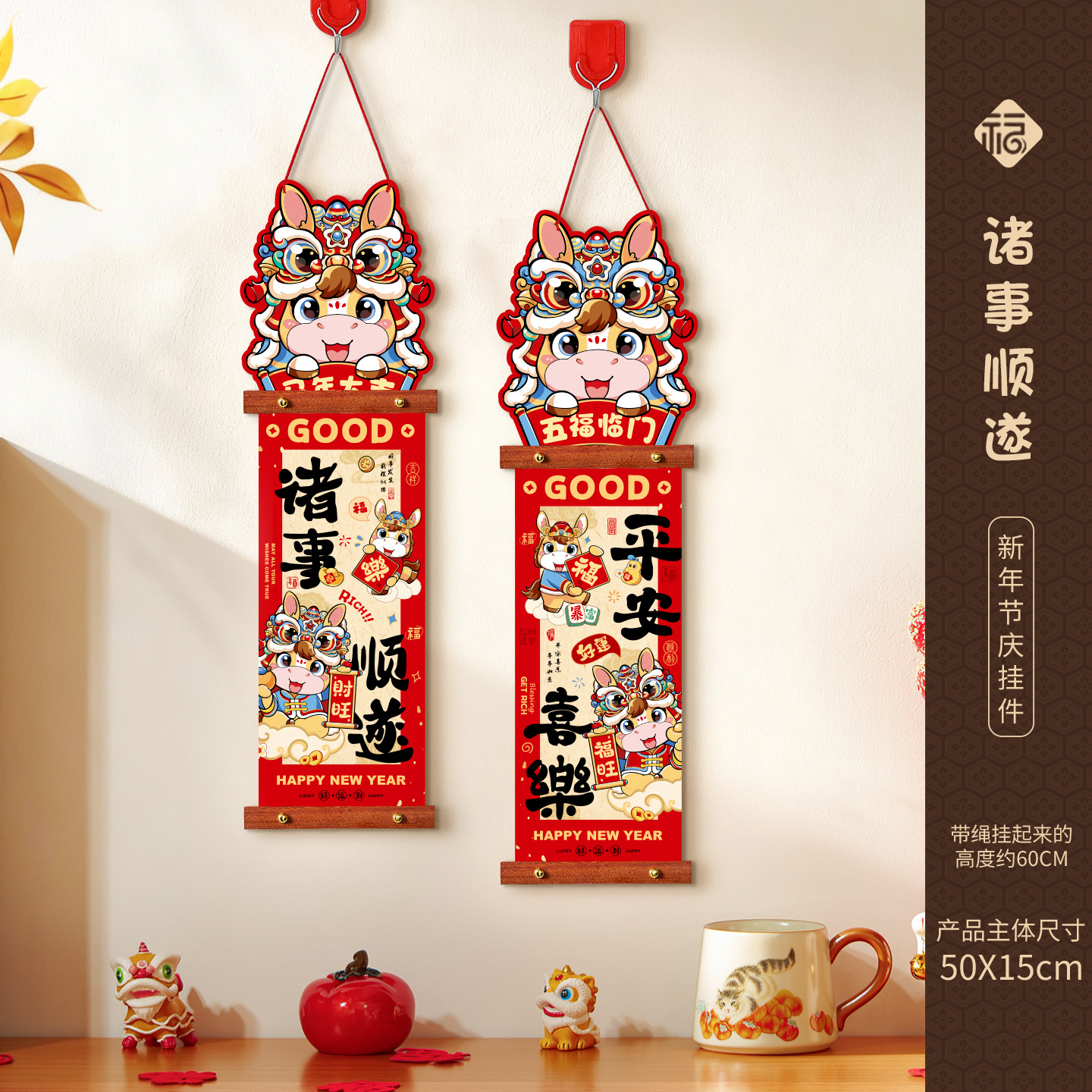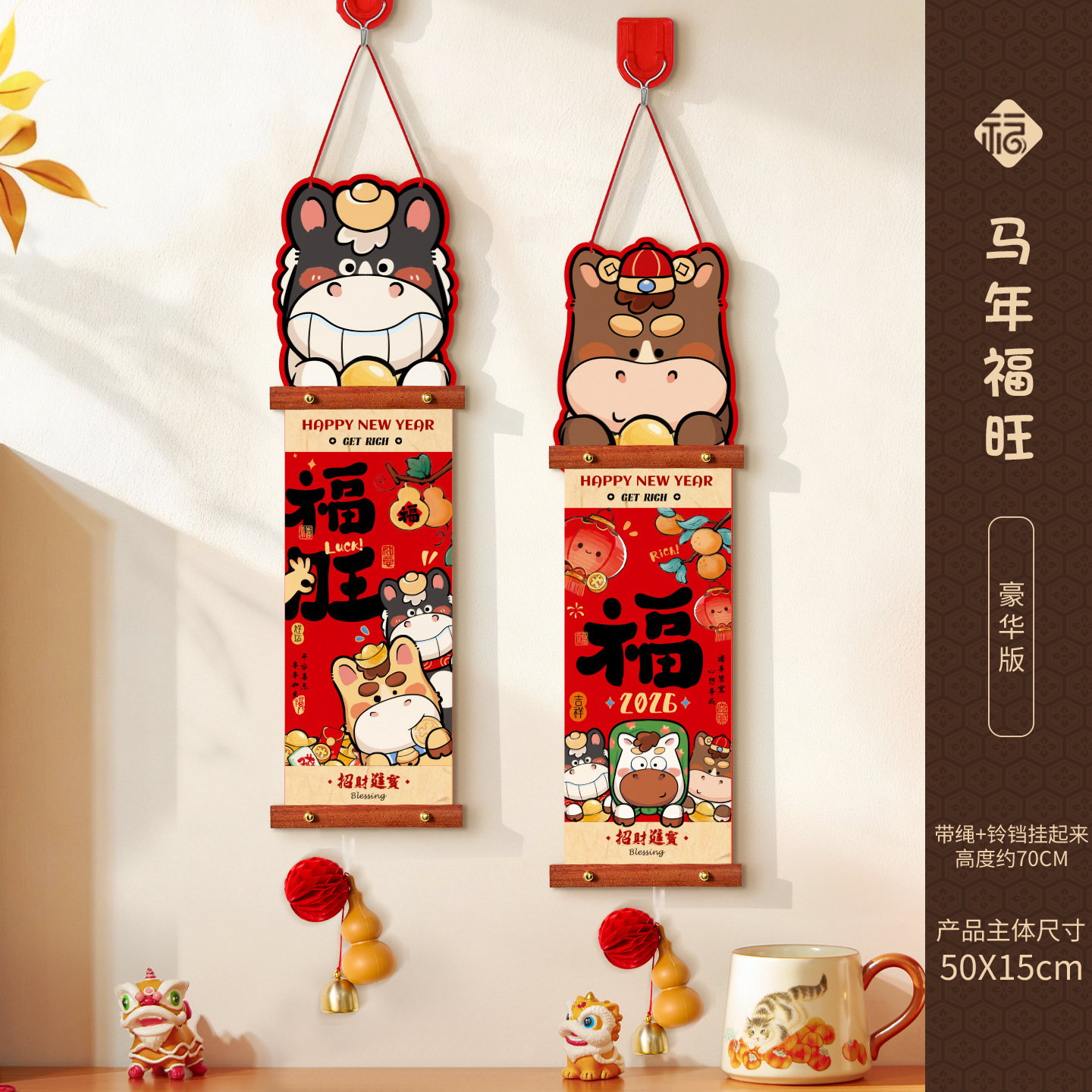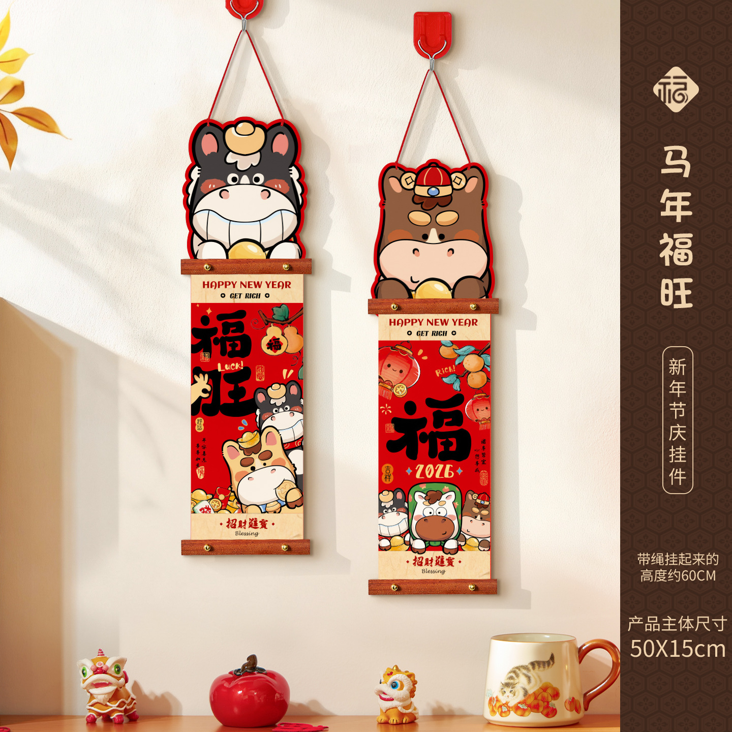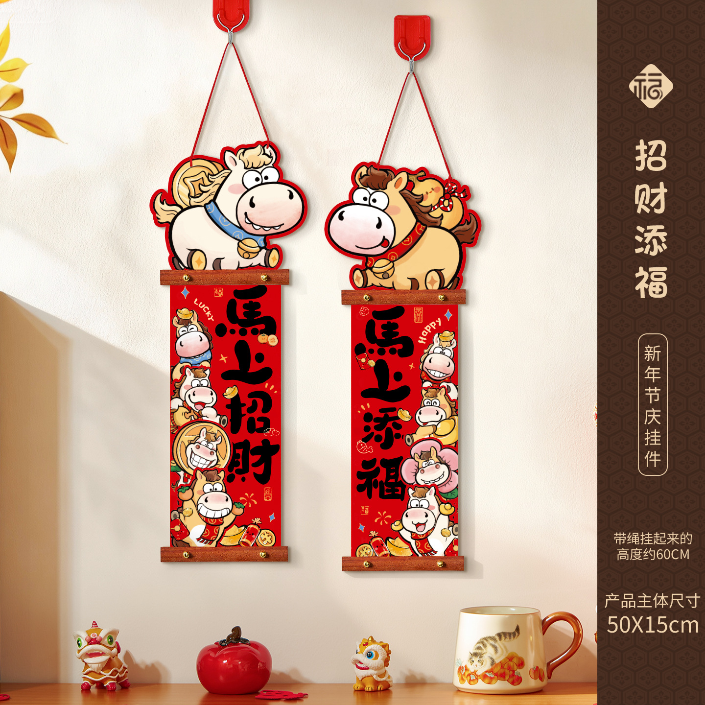 新年装饰挂件福字挂饰马年对联2026木质丝绒门挂过年喜庆氛围布置
