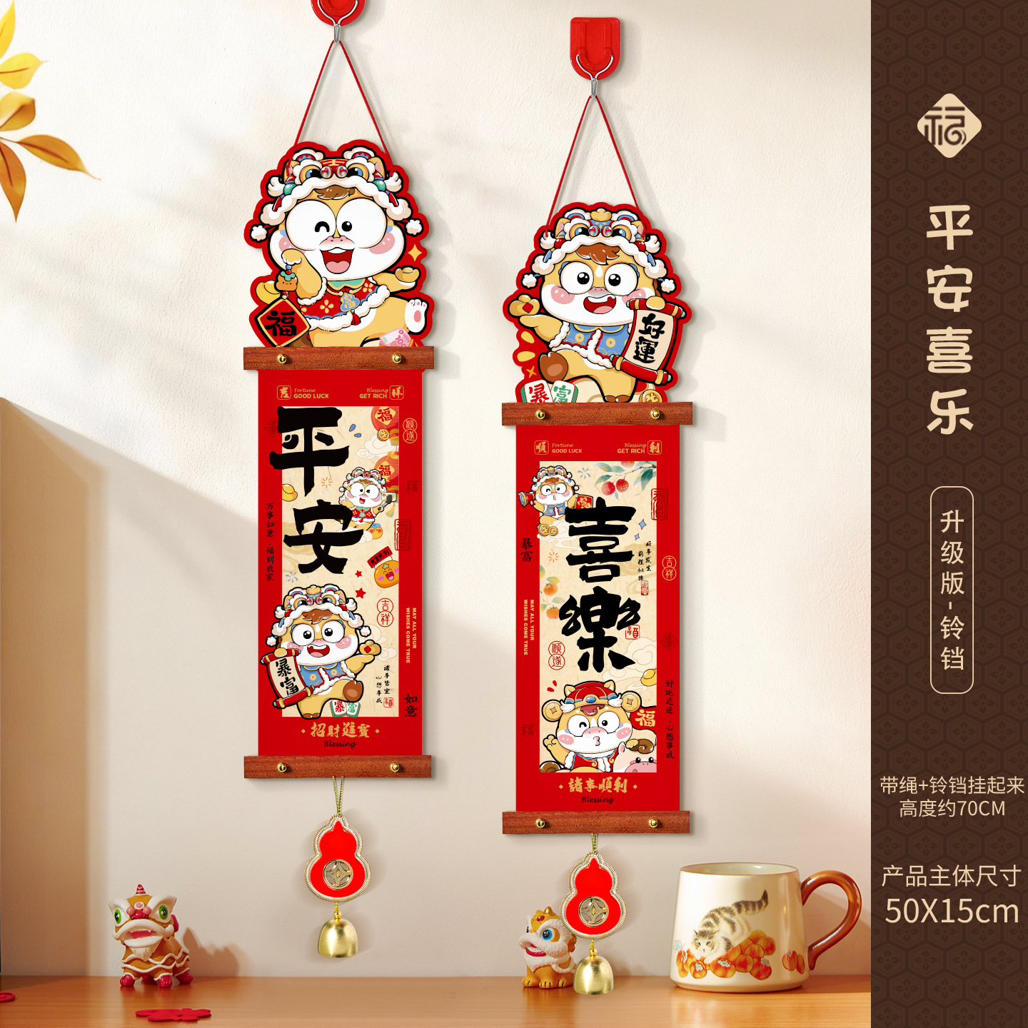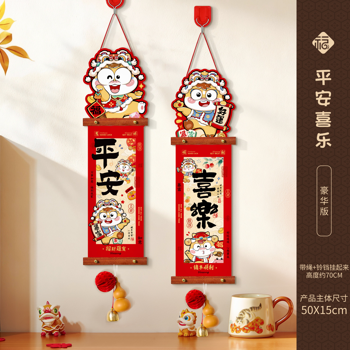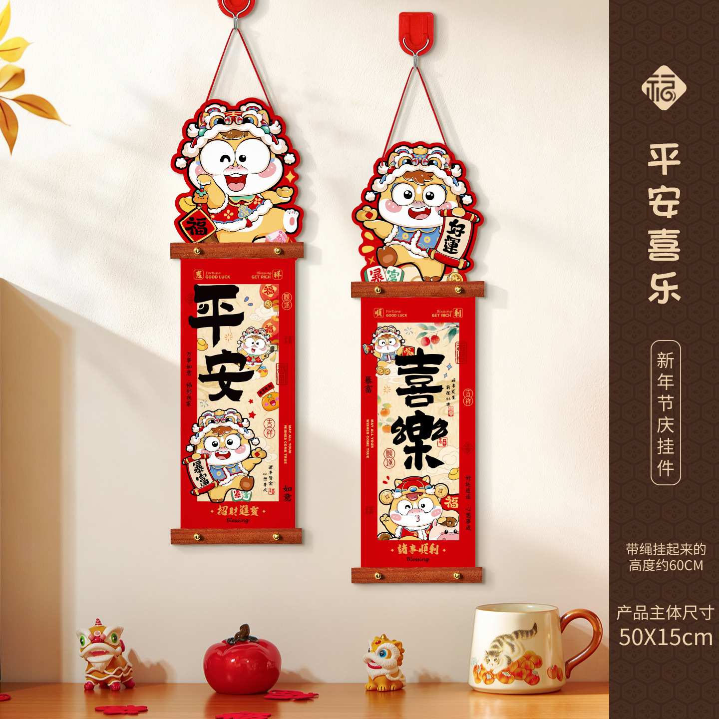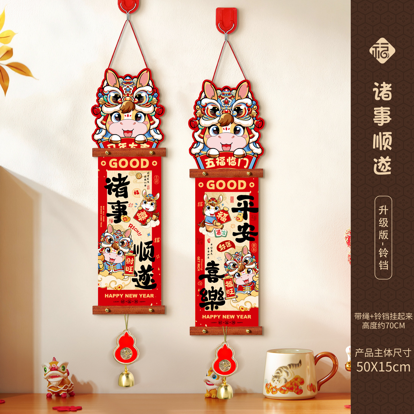 新年装饰挂件福字挂饰马年对联2026木质丝绒门挂过年喜庆氛围布置