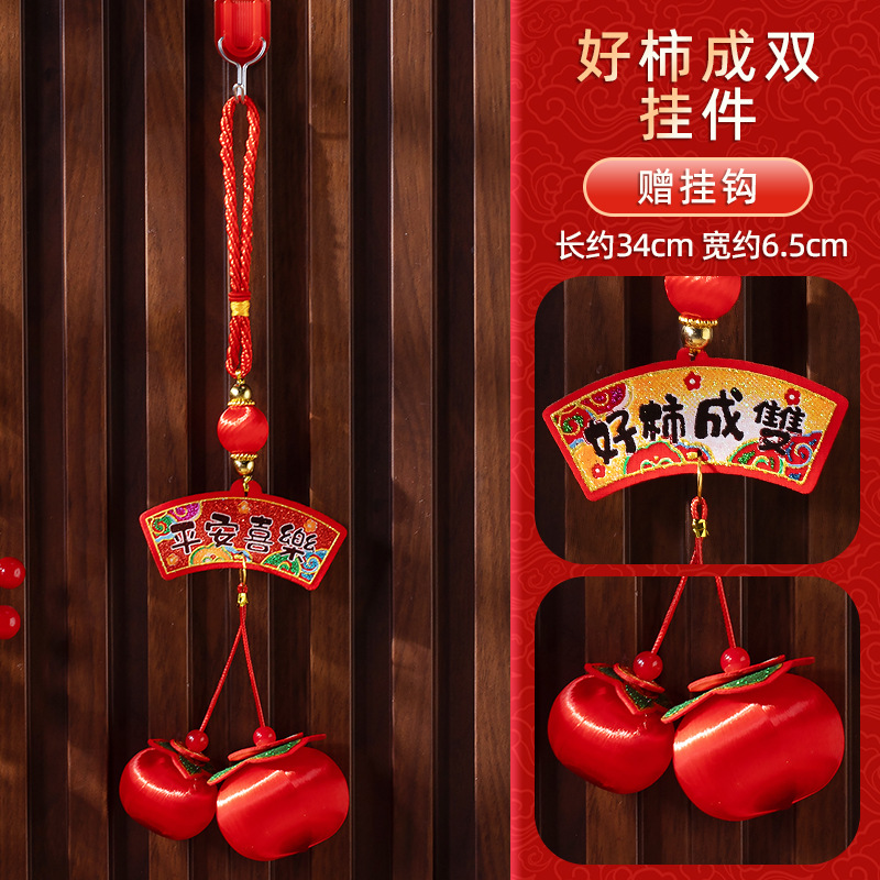 新年柿子挂件柿柿如意入户门把手装饰平安喜乐挂饰春节氛围布置品