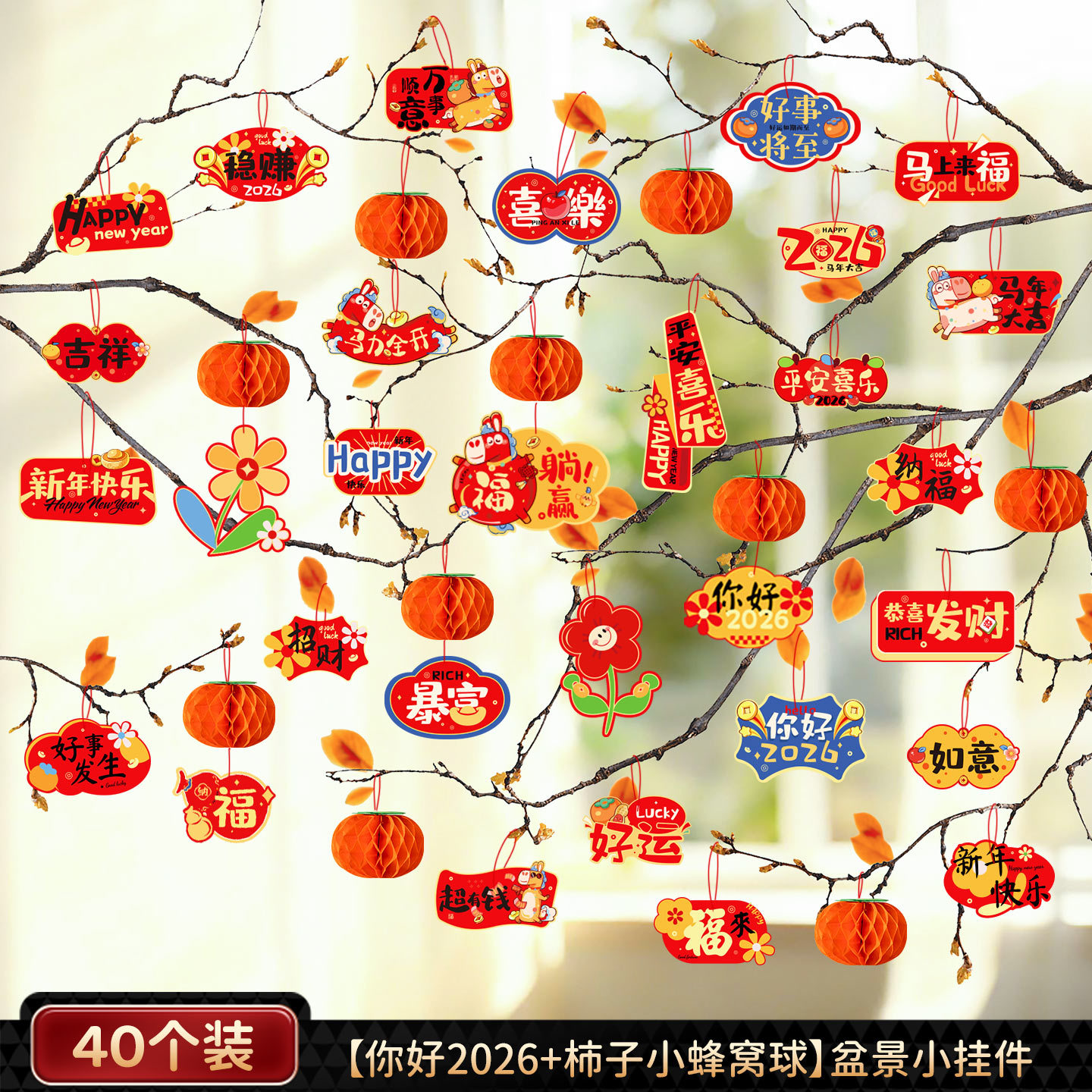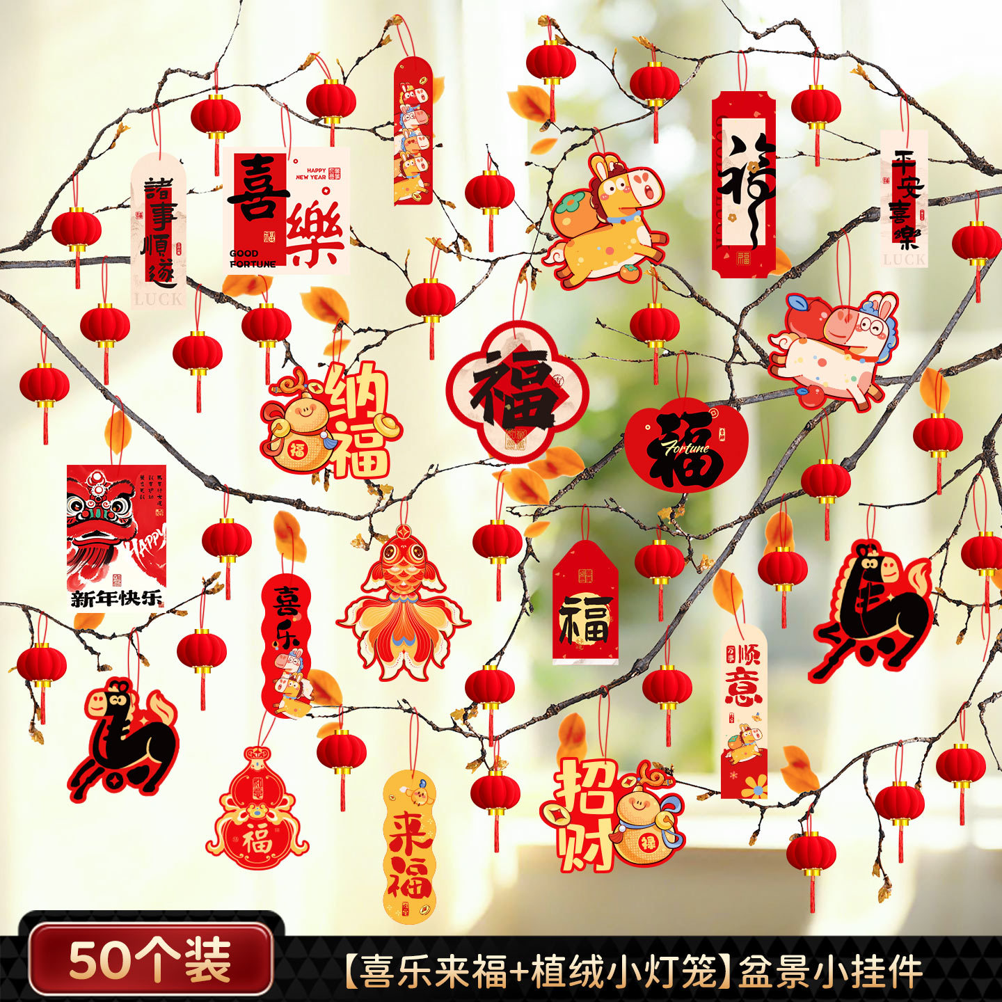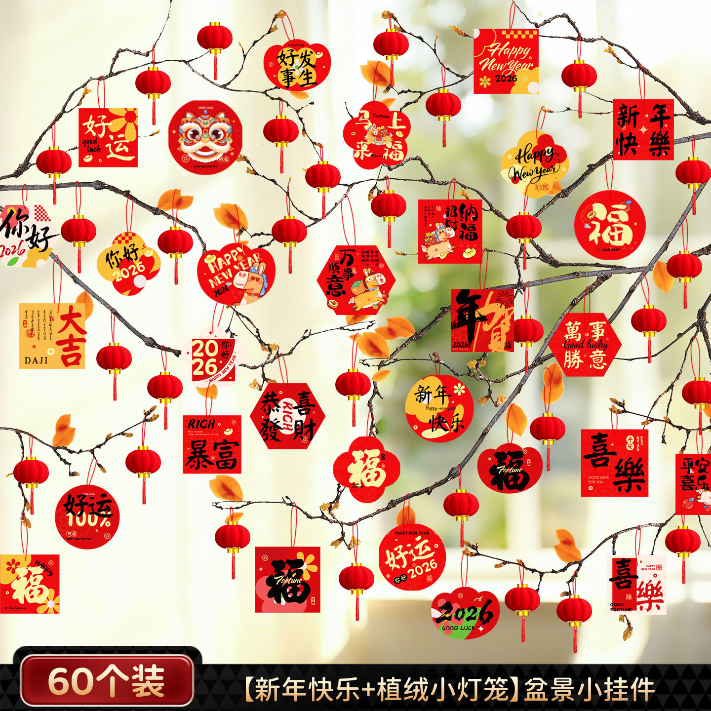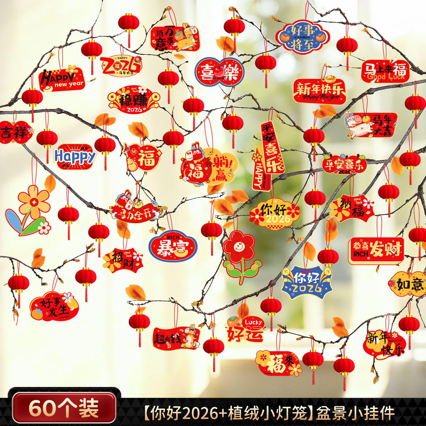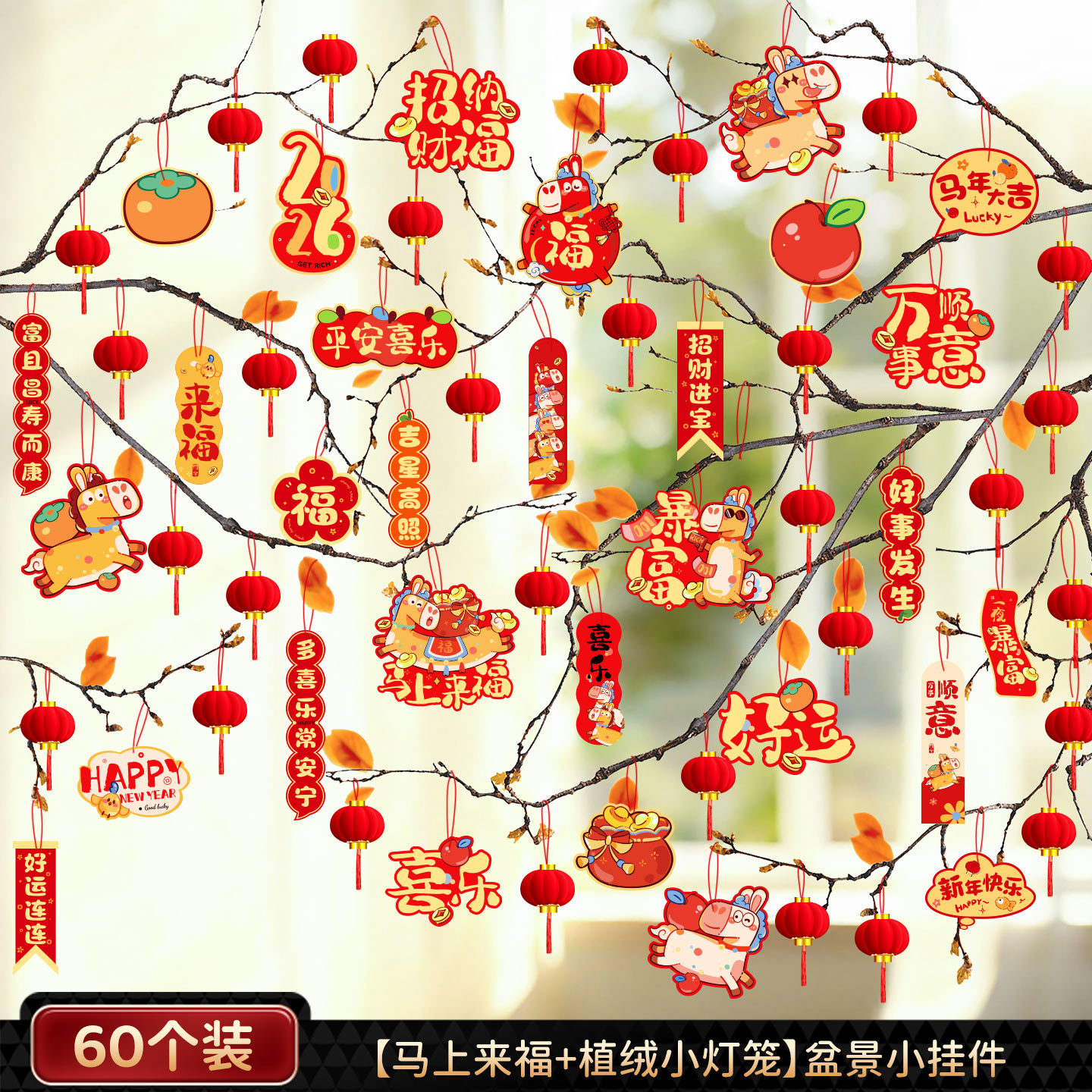 2026新年家用盆景小挂件春节过年春节布置马年装饰树上小灯笼挂饰