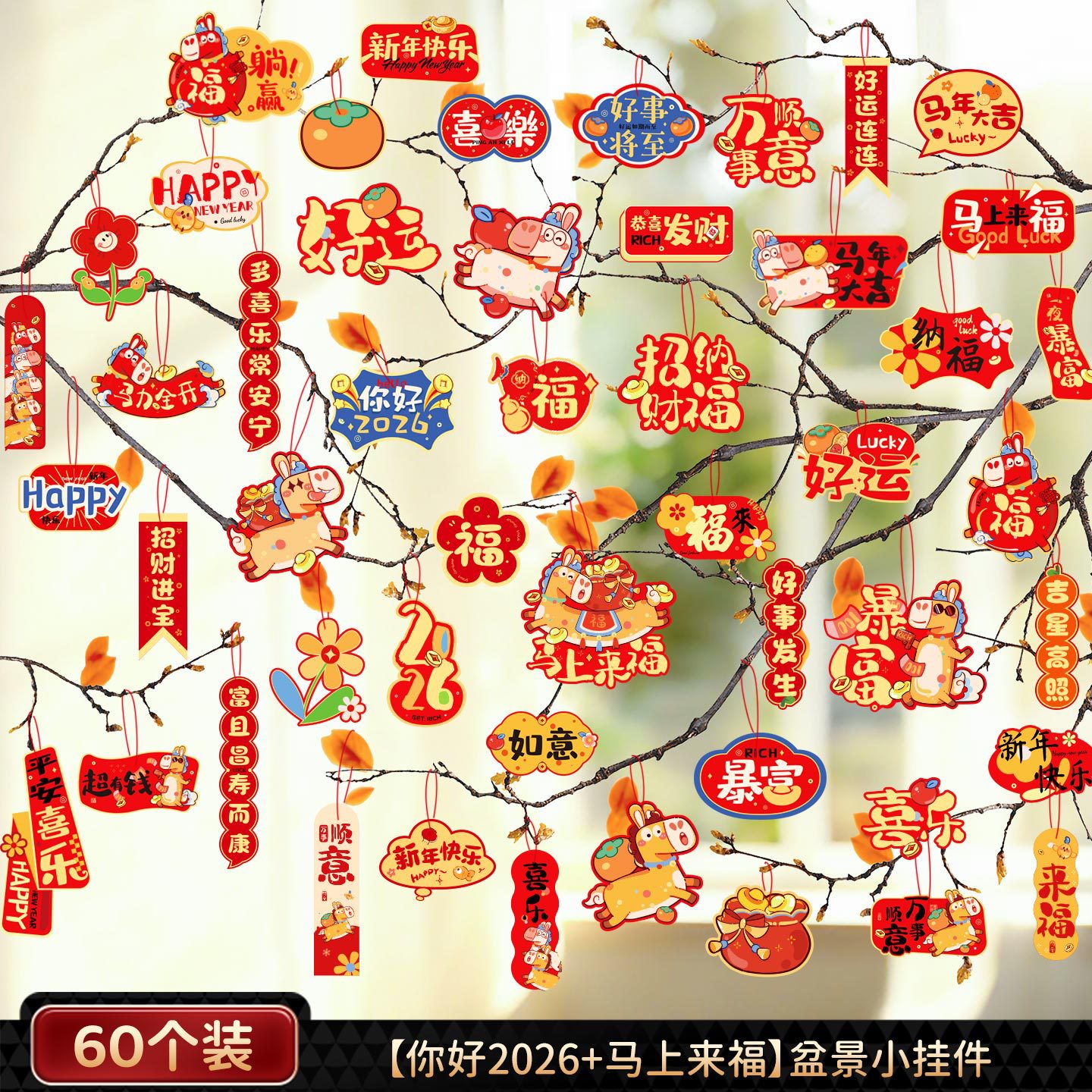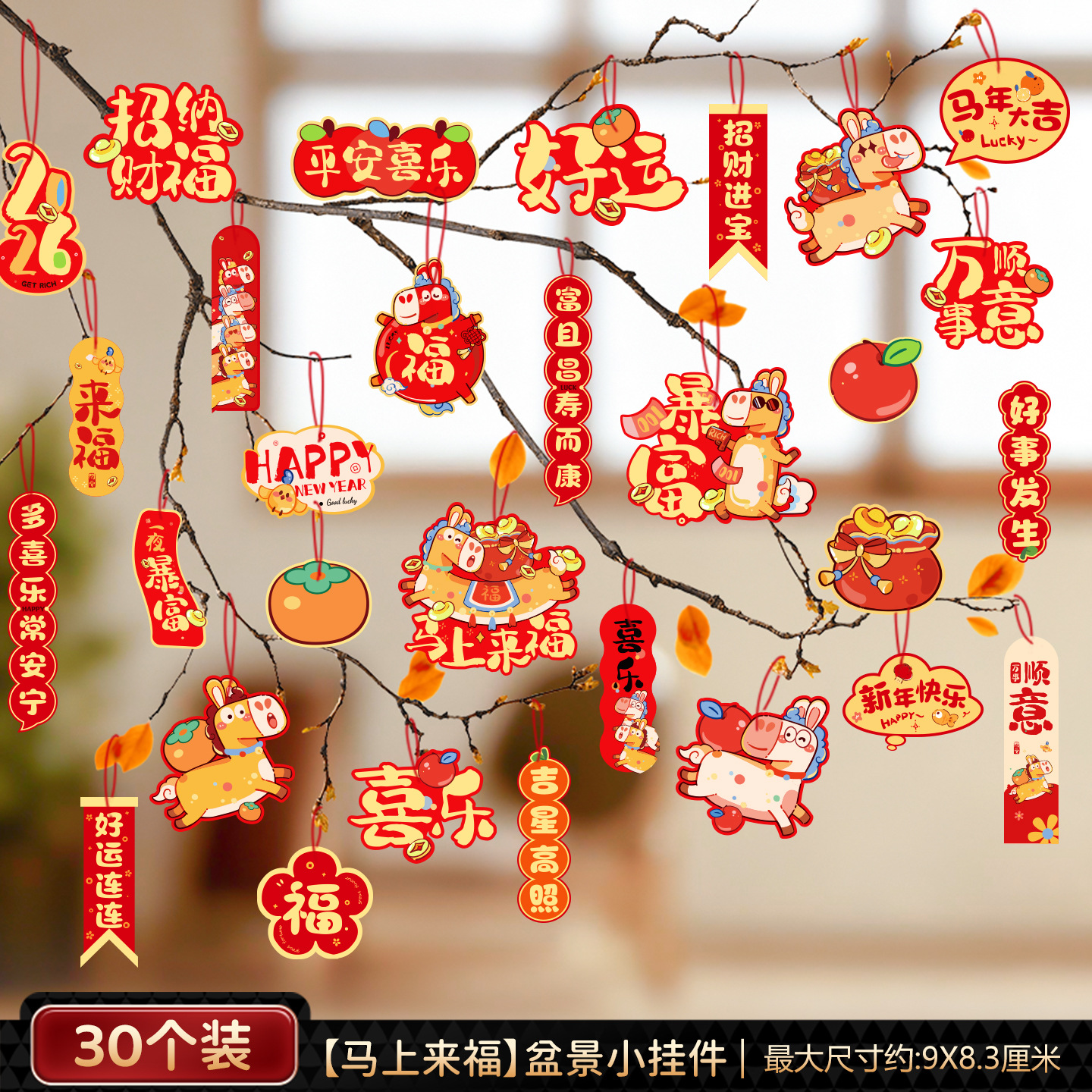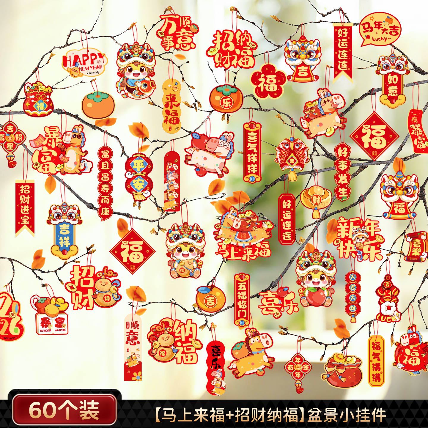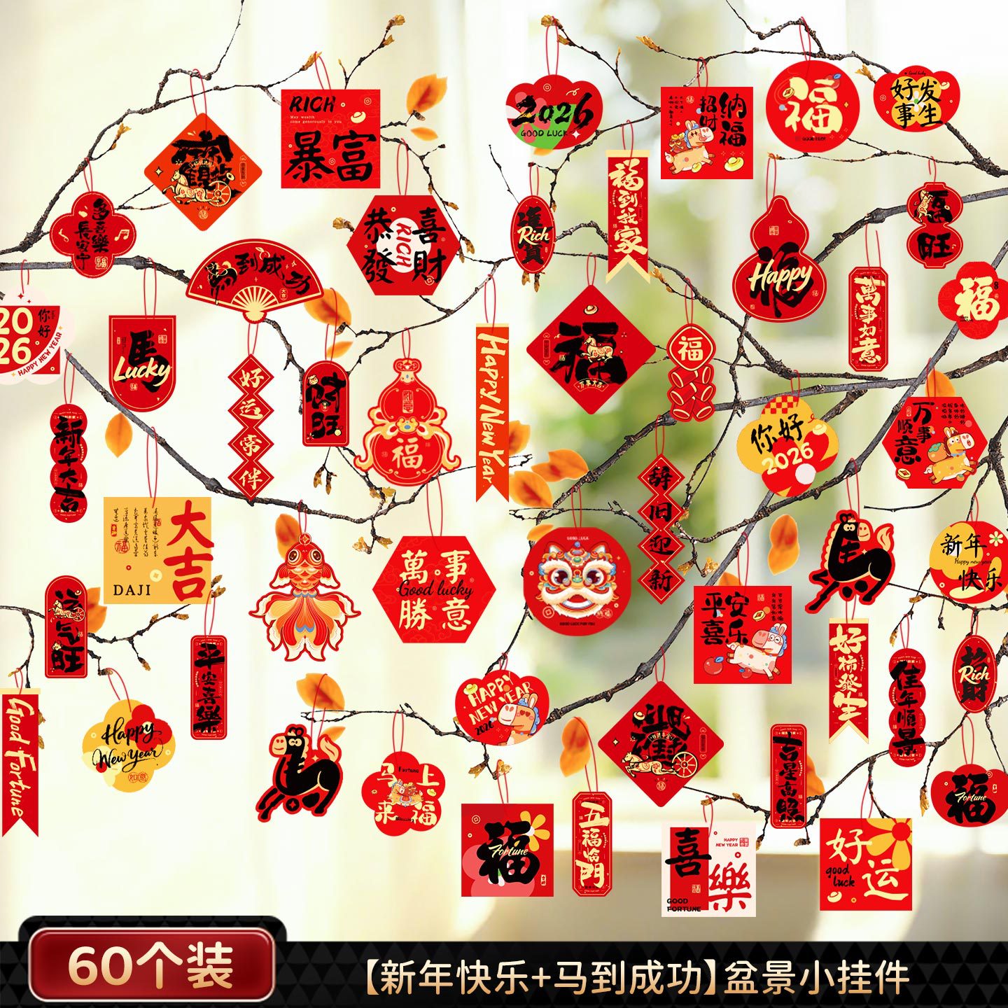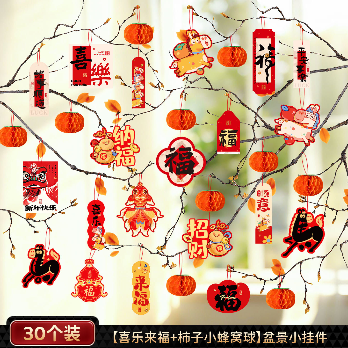 2026新年家用盆景小挂件春节过年春节布置马年装饰树上小灯笼挂饰