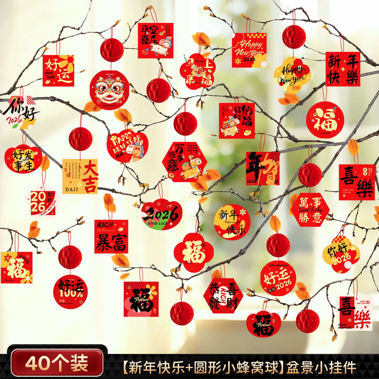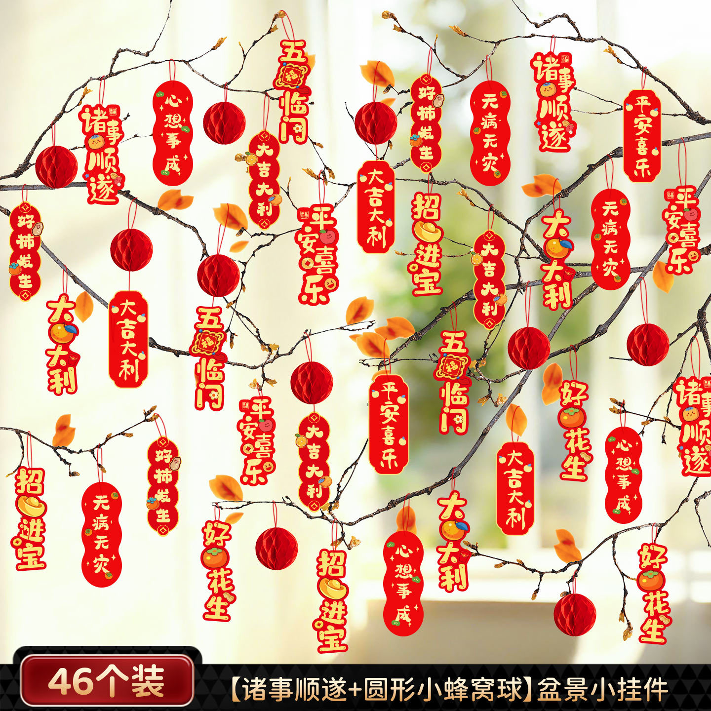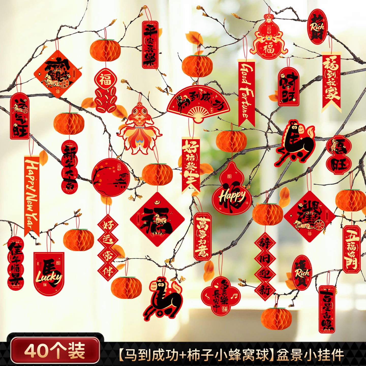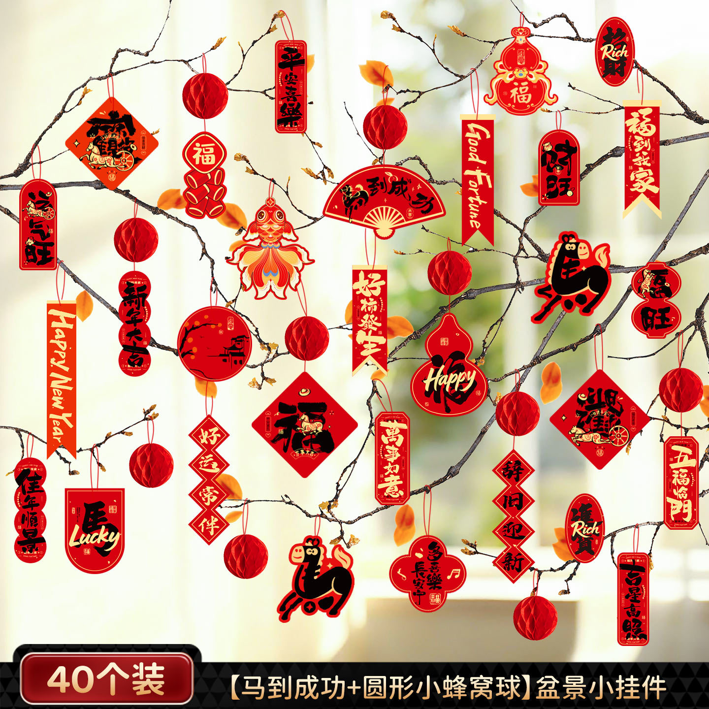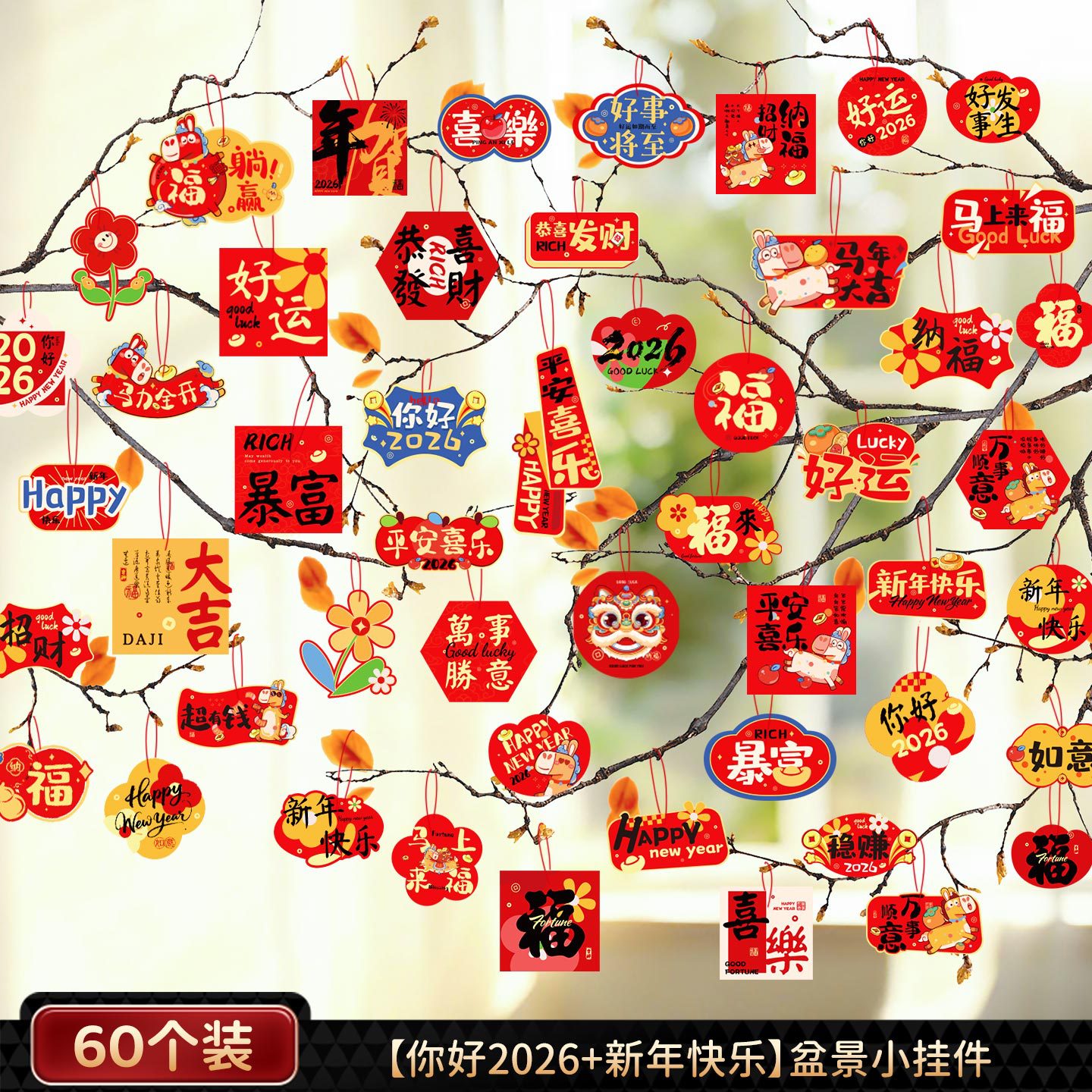 2026新年家用盆景小挂件春节过年春节布置马年装饰树上小灯笼挂饰
