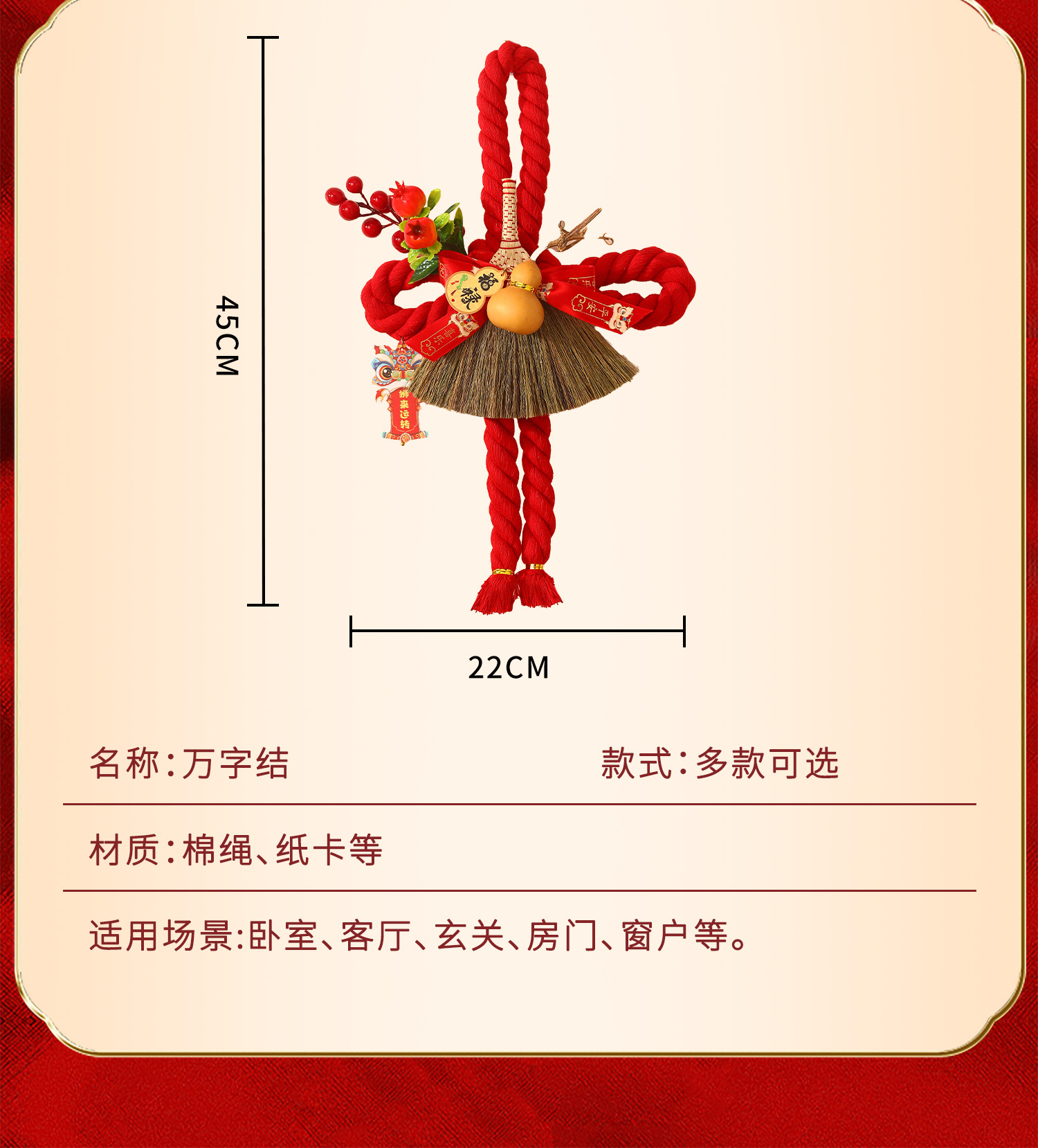 新年万字结挂件2026新款春节室内场景布置装饰过年入户门把手挂饰