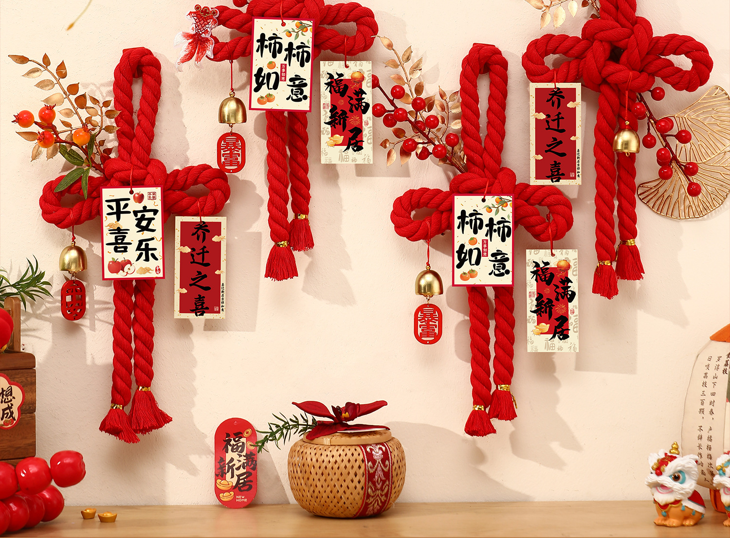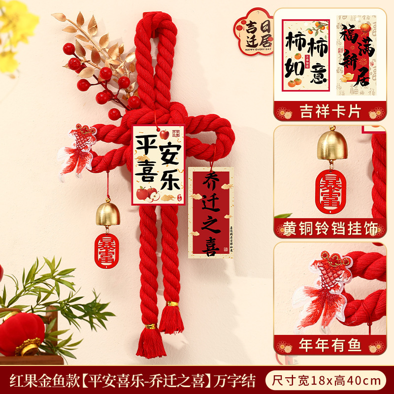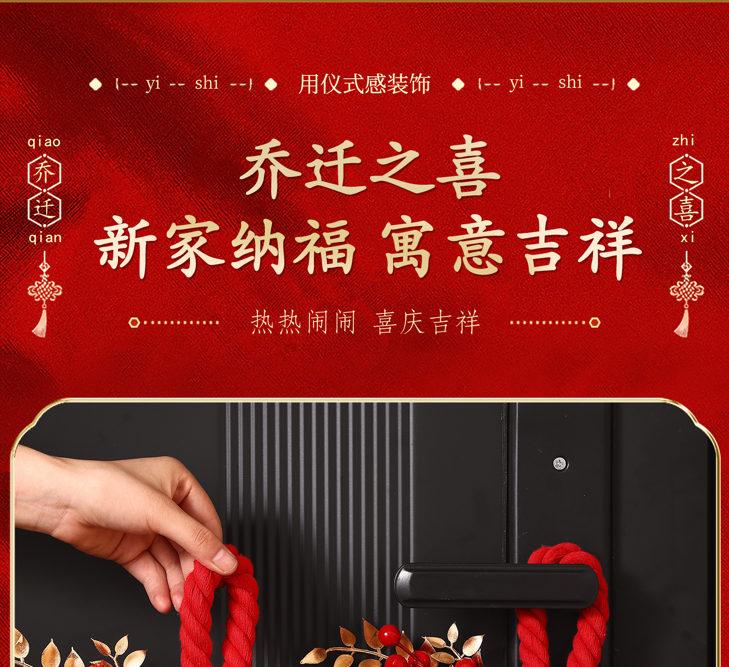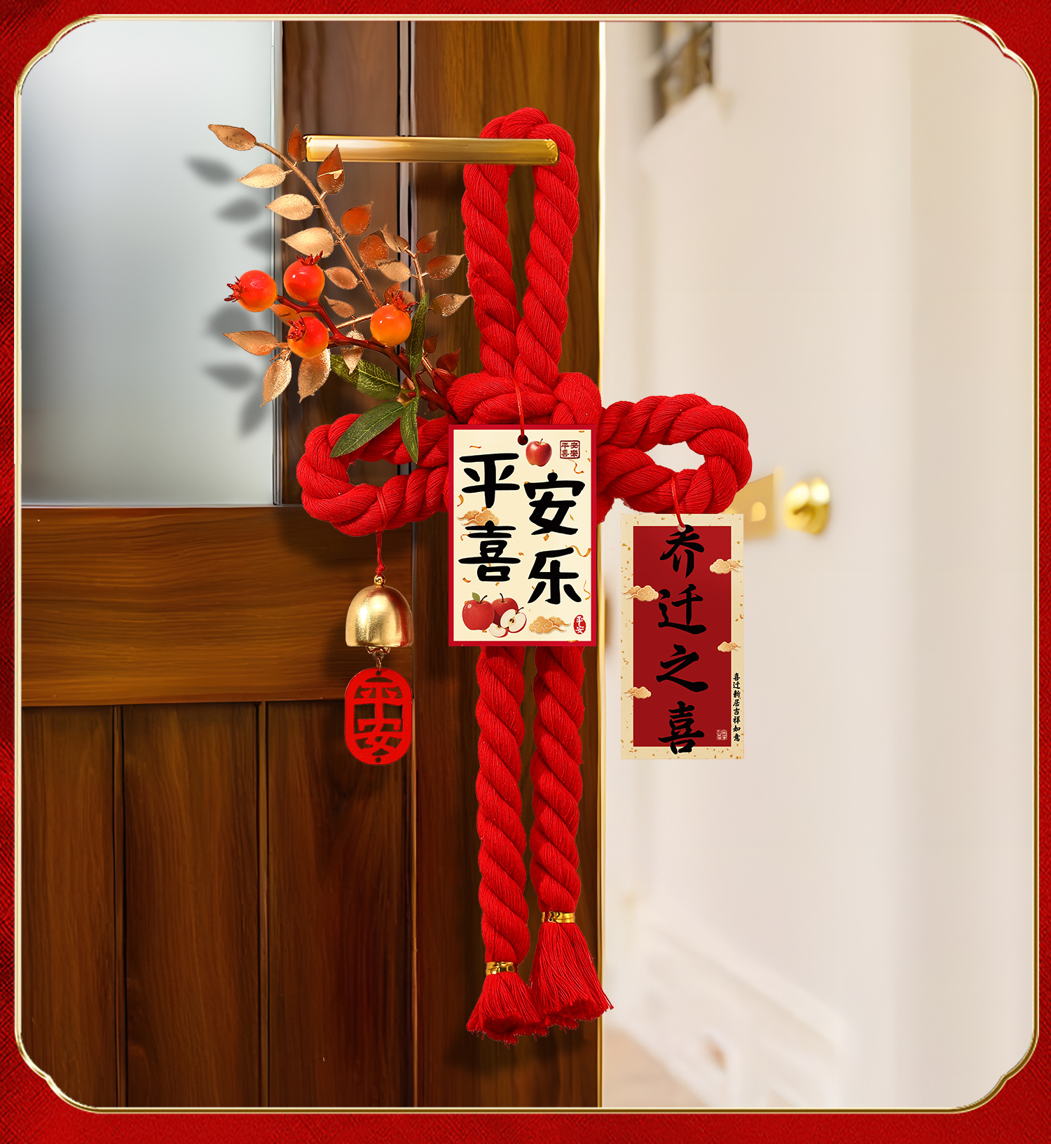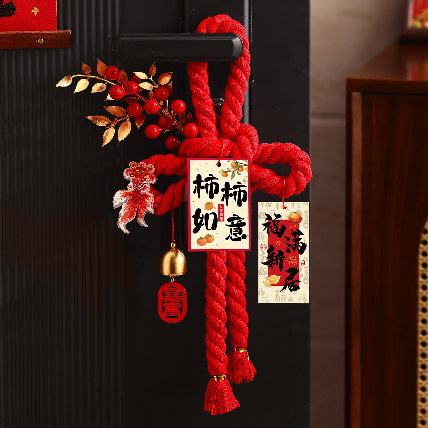 乔迁之喜装饰新居布置搬家入宅仪式用品入户门把手挂件福字万字结