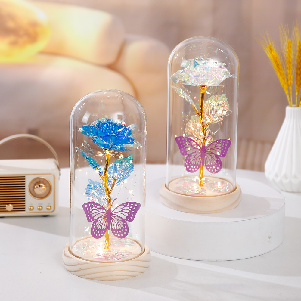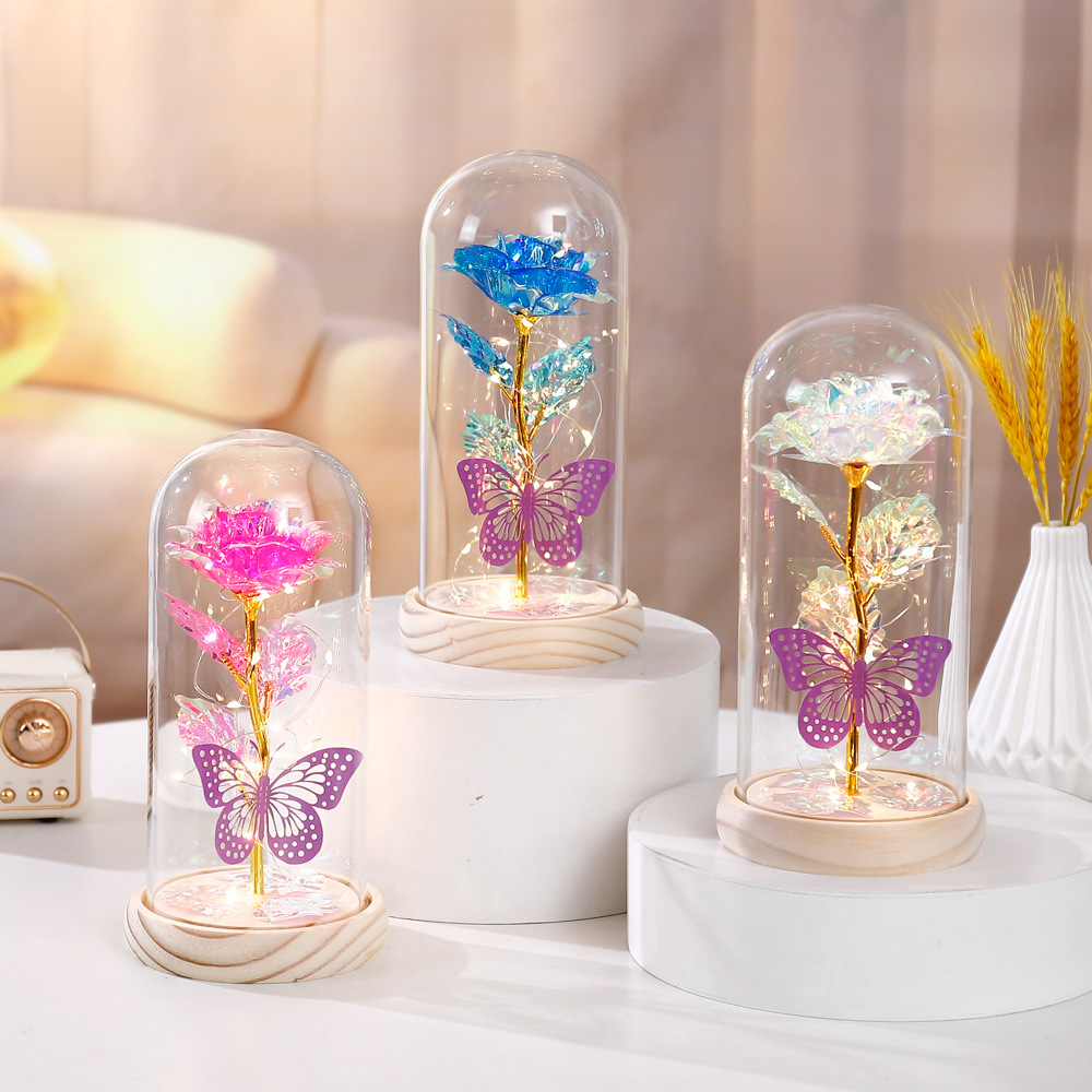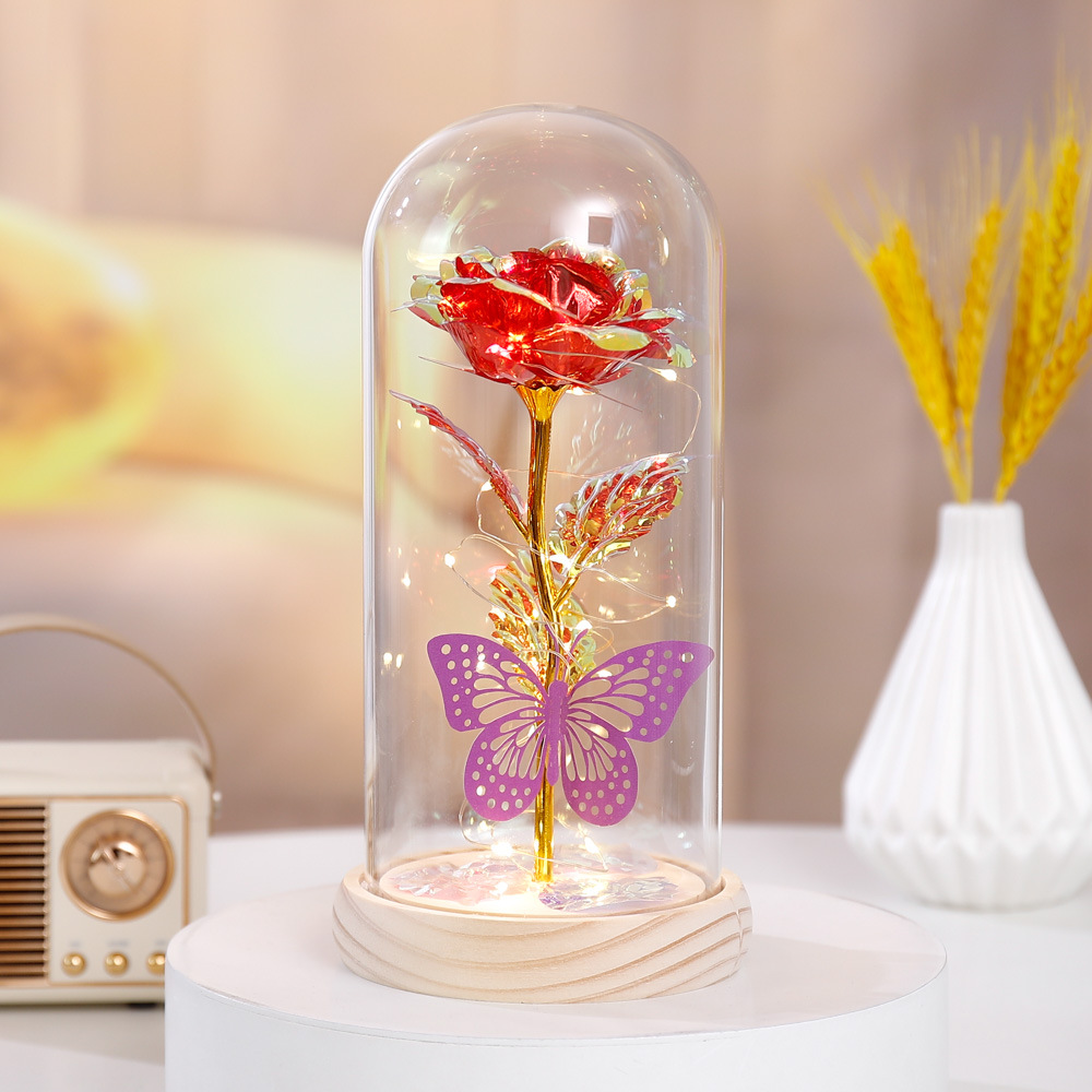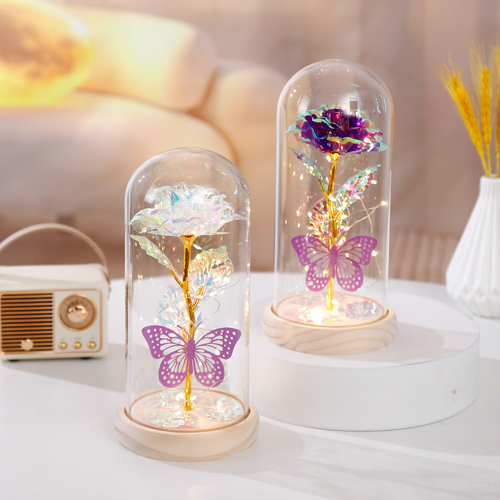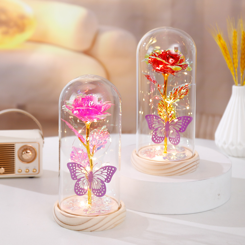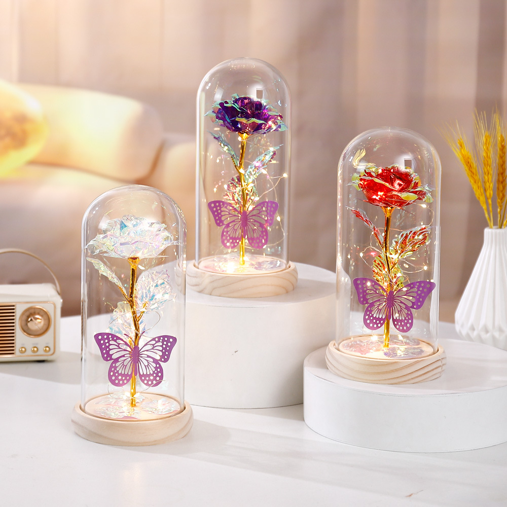 跨境永生花玻璃罩玫瑰花灯妇女节母亲节礼物送女朋友生日摆件装饰