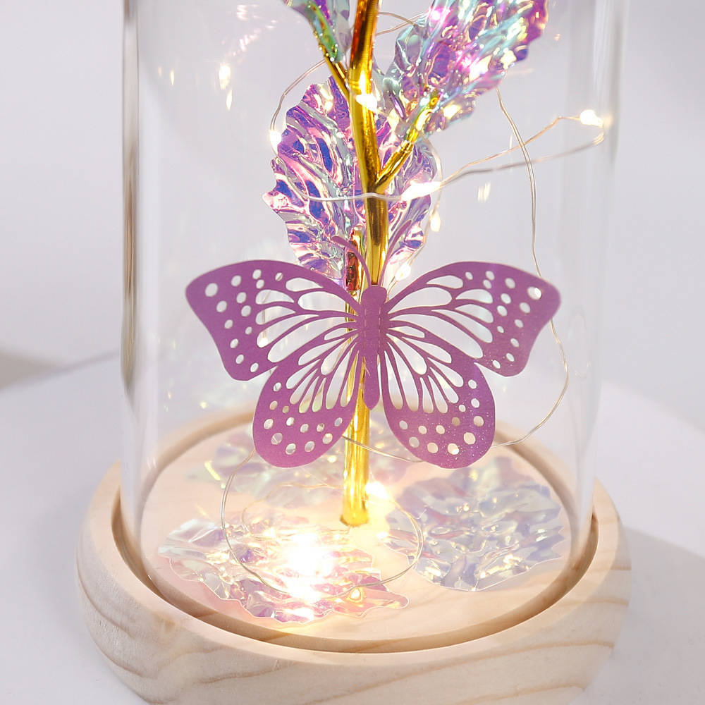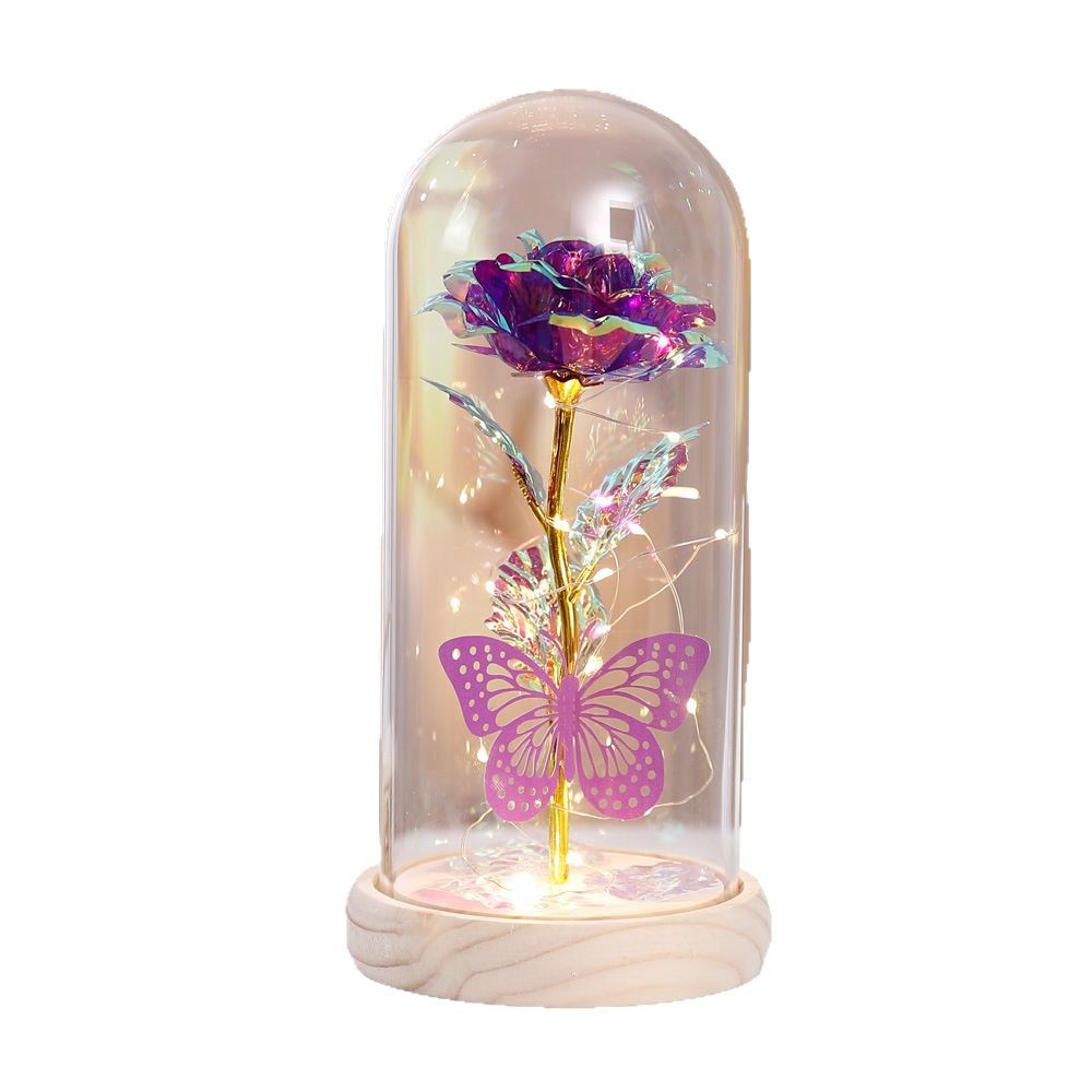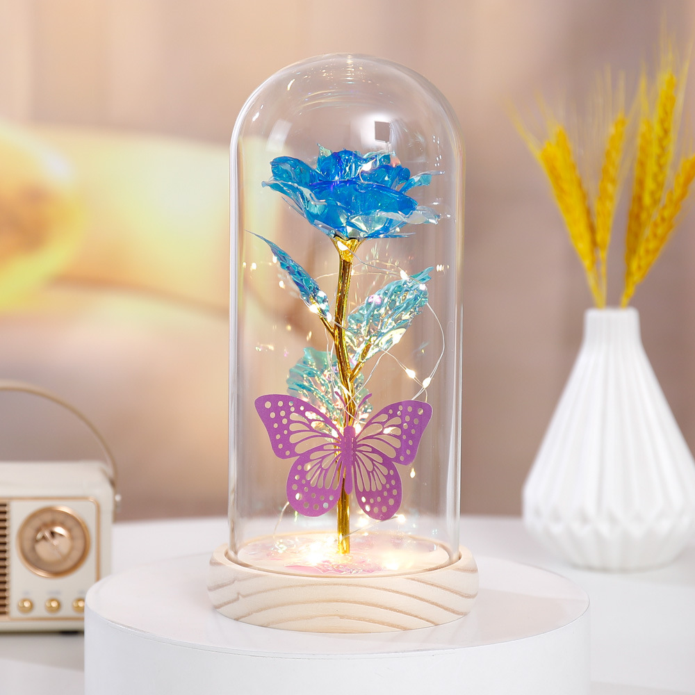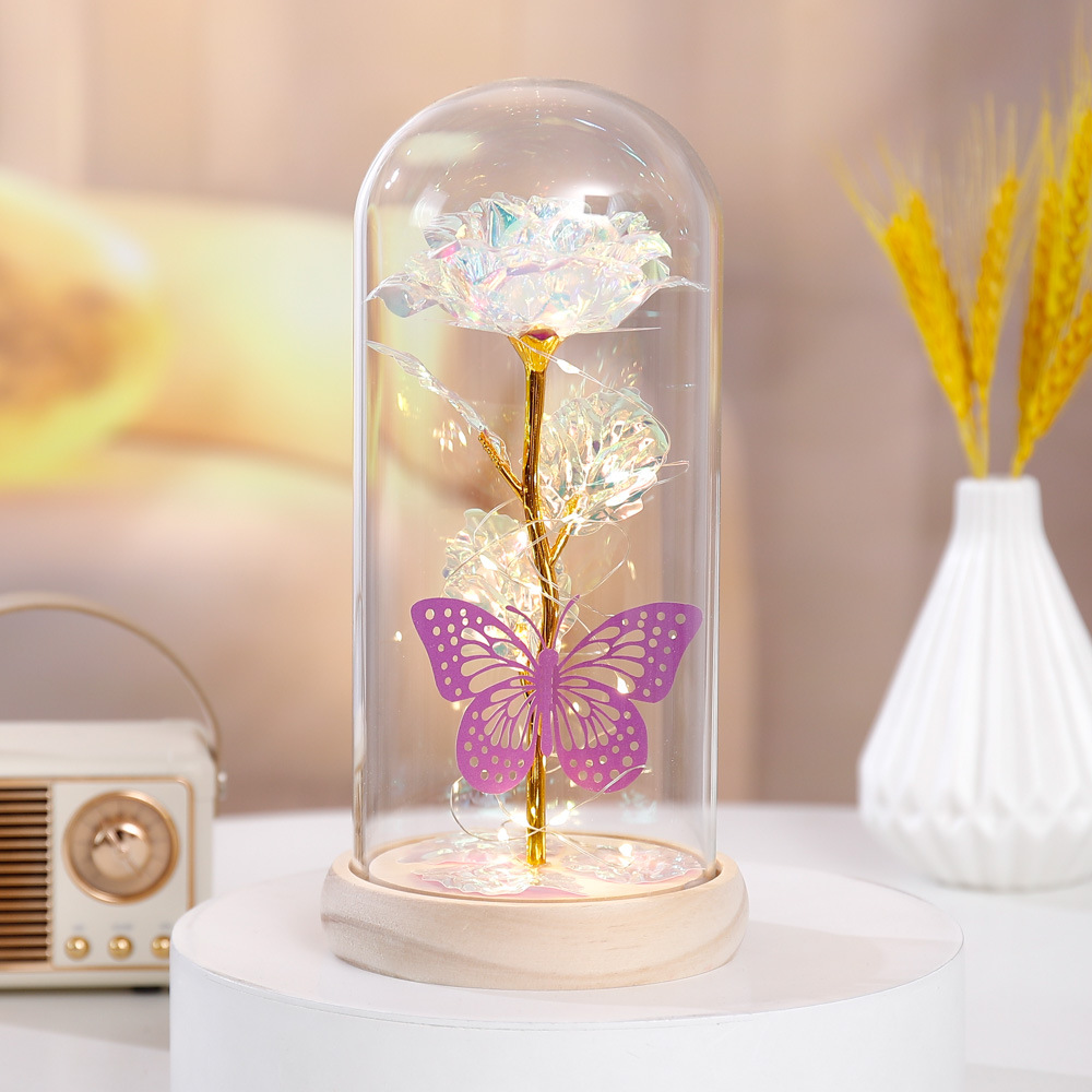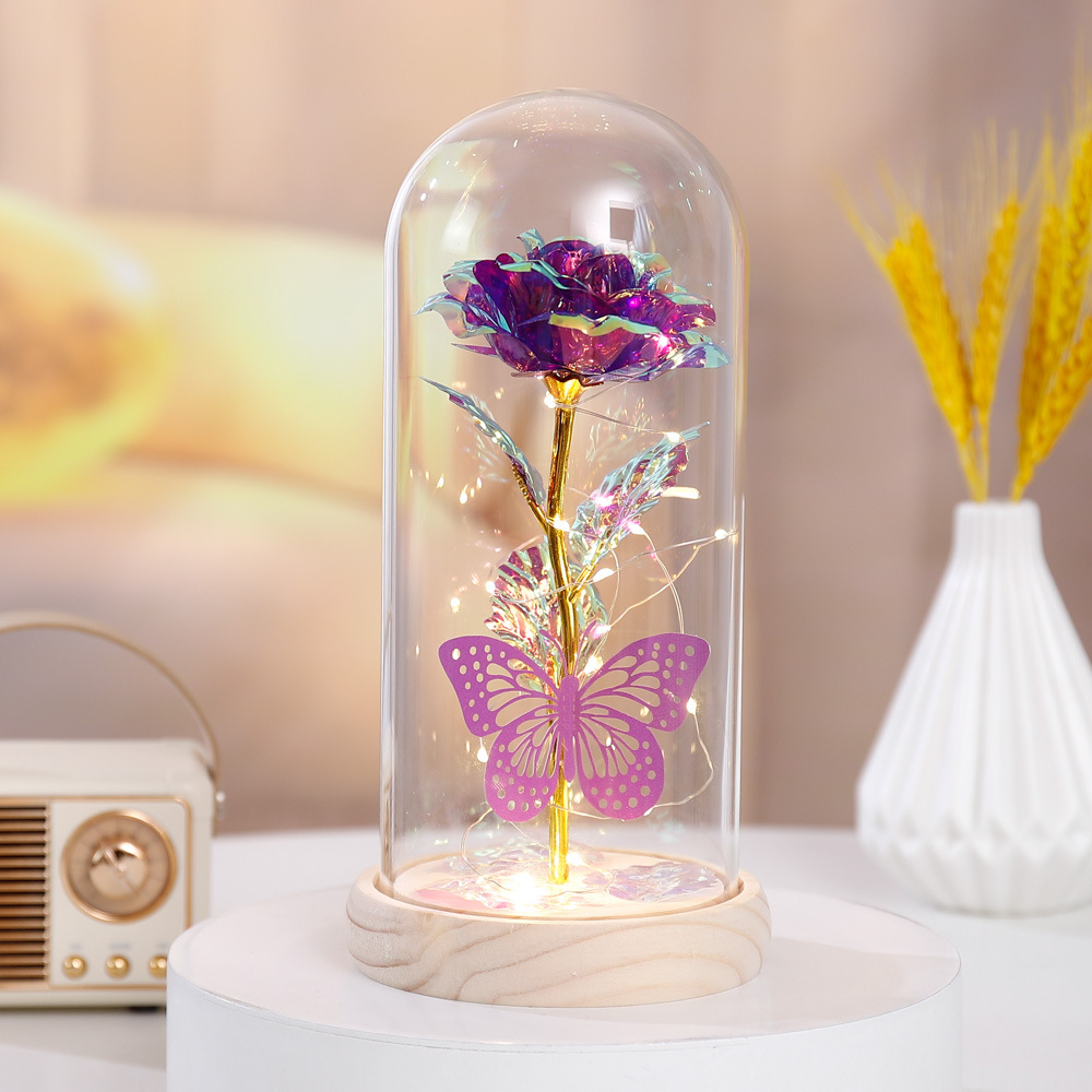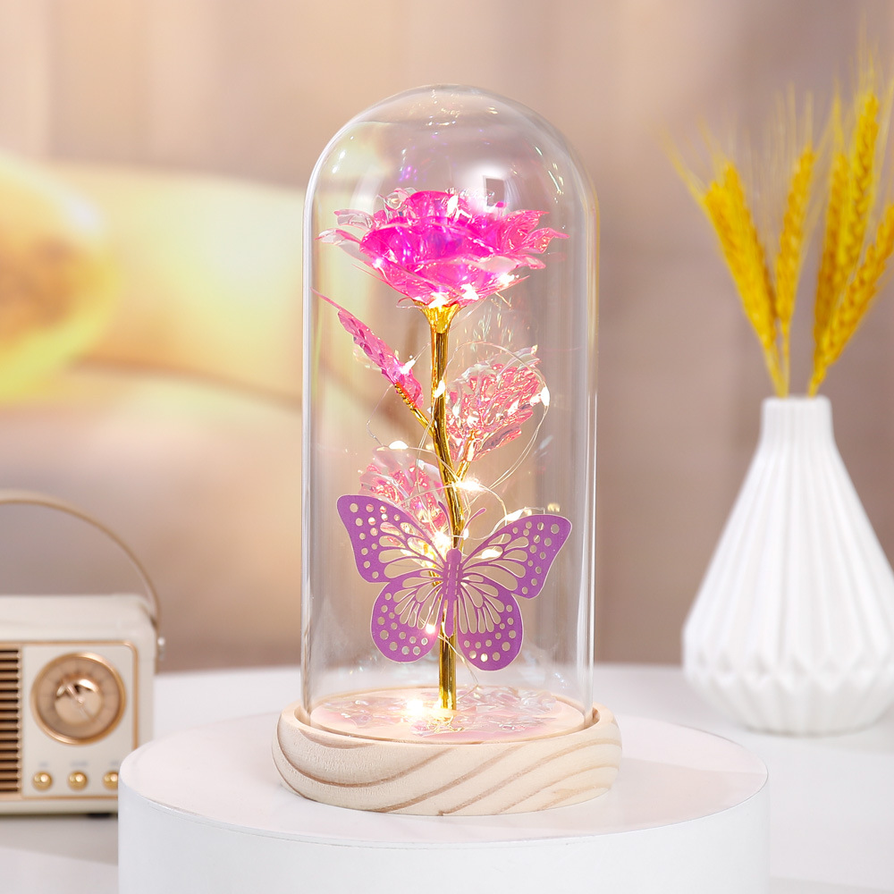 跨境永生花玻璃罩玫瑰花灯妇女节母亲节礼物送女朋友生日摆件装饰