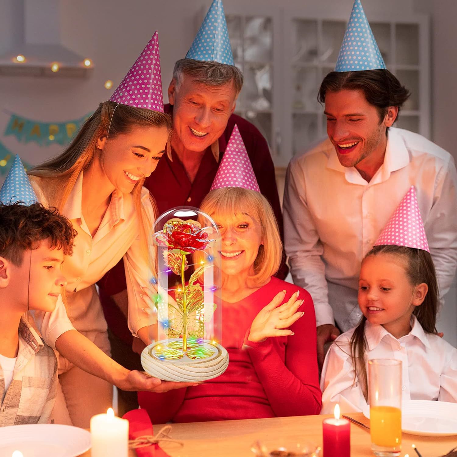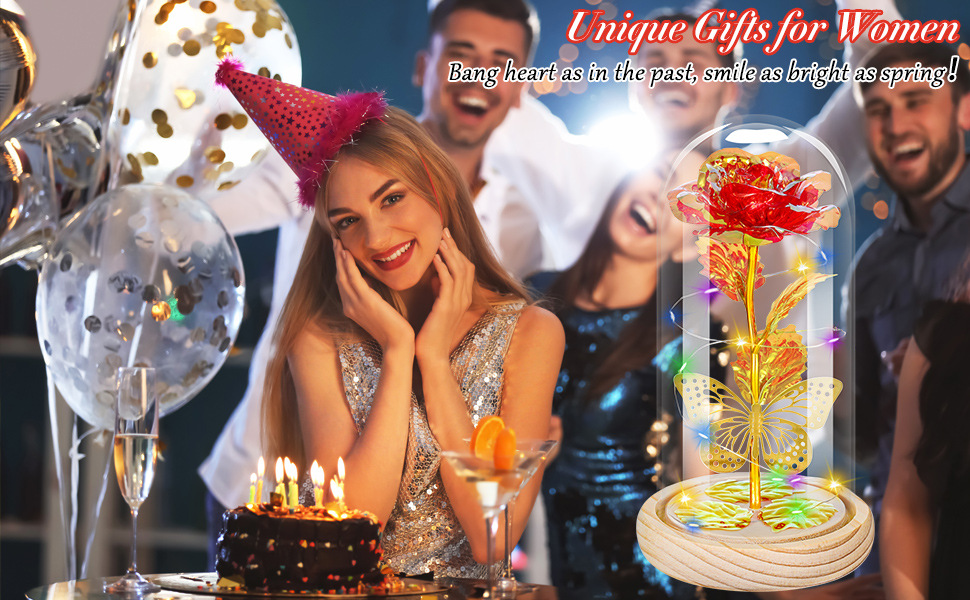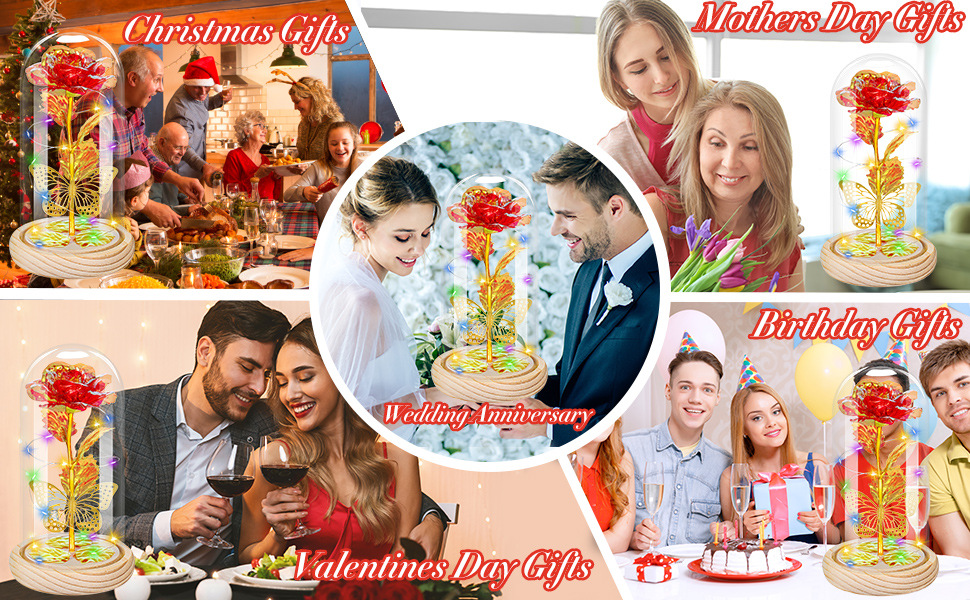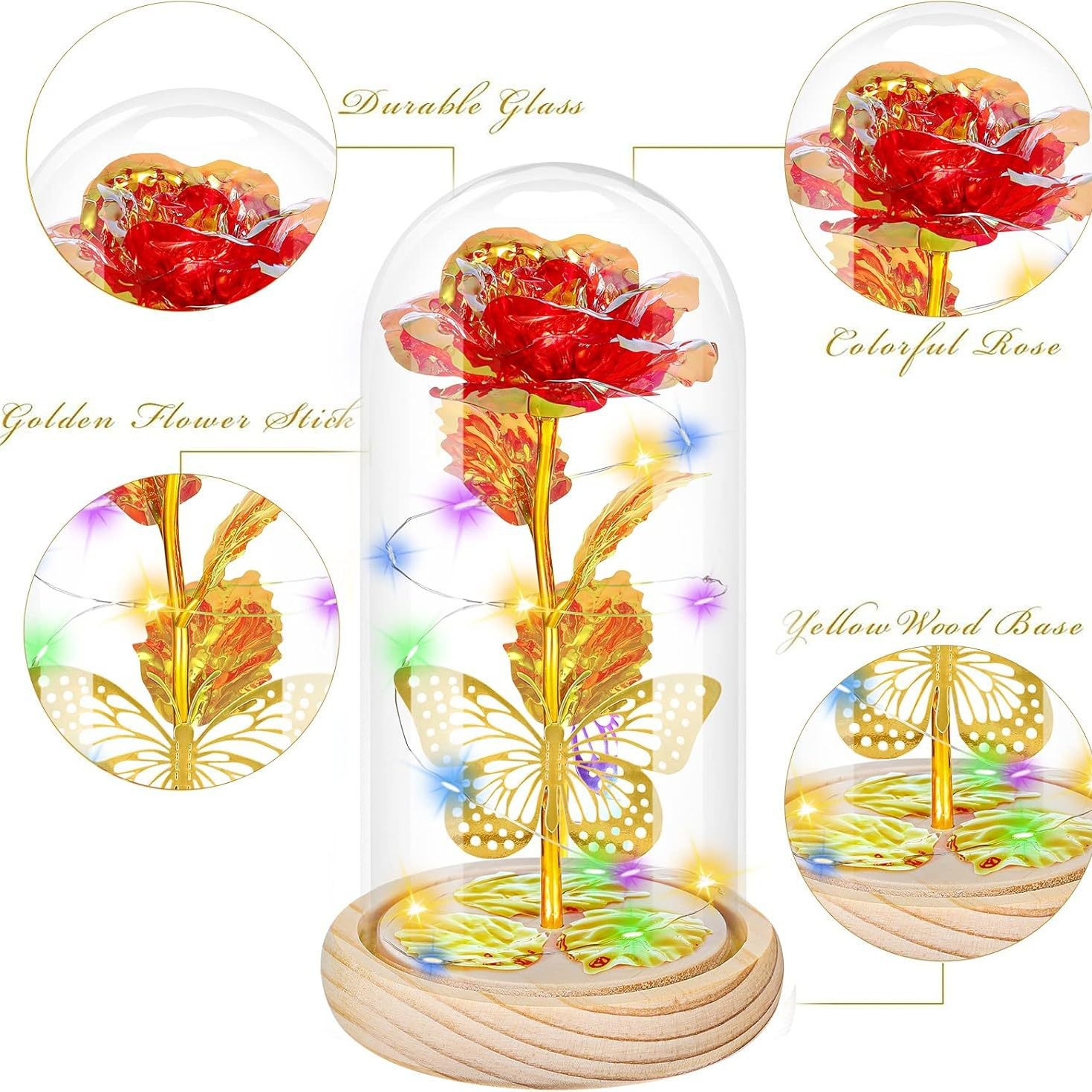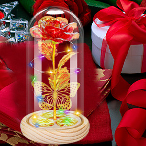 跨境玻璃灯罩气氛玫瑰花灯情人节礼物送生日金箔花摆件永生花夜灯