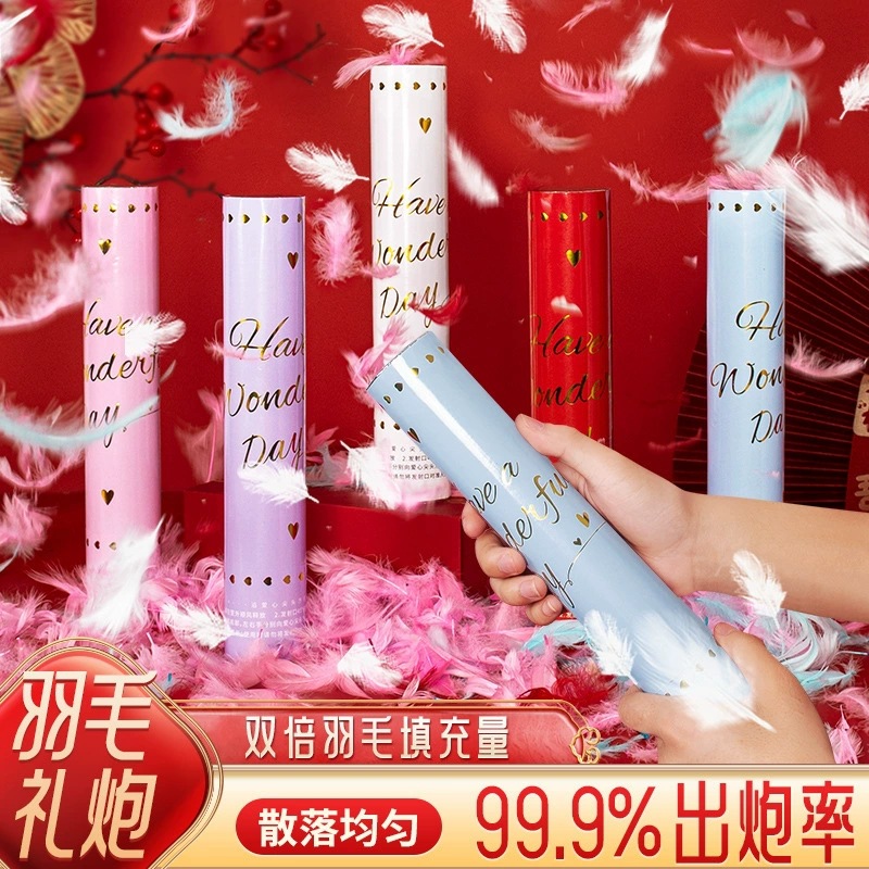 羽毛礼炮新年礼花筒跨年聚会直播手持礼炮结婚用品喷花筒氛围开业