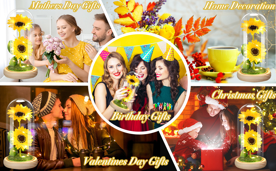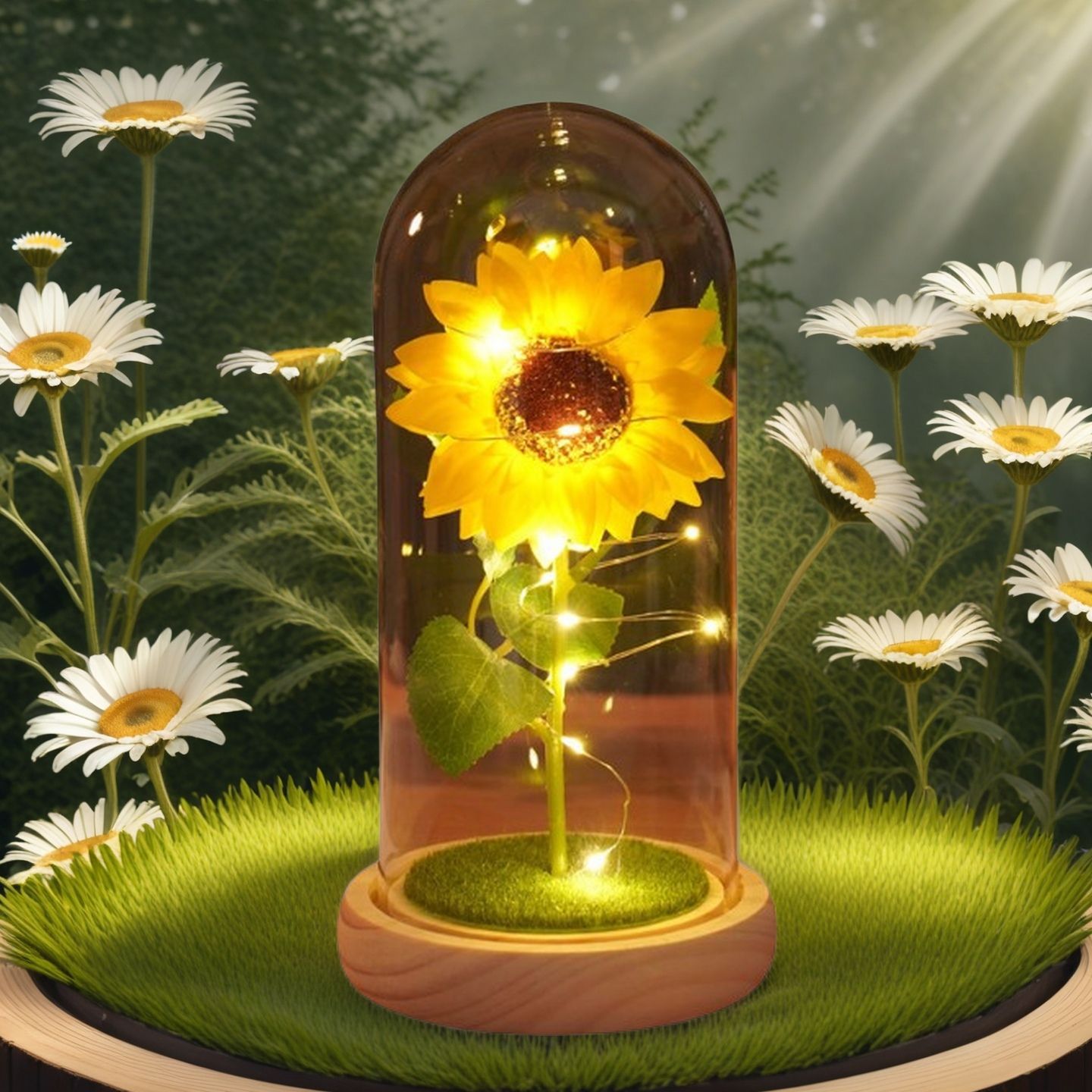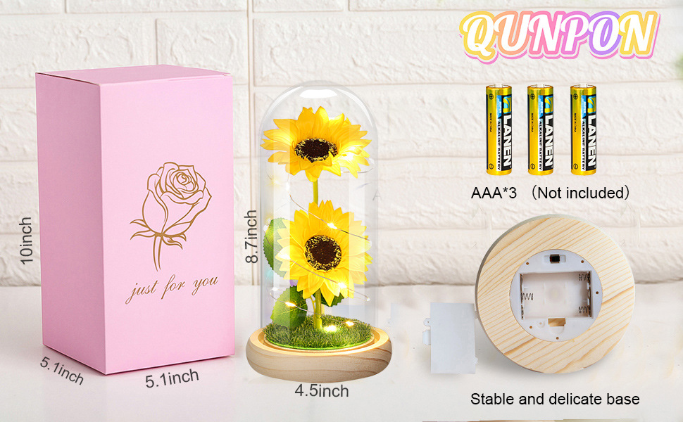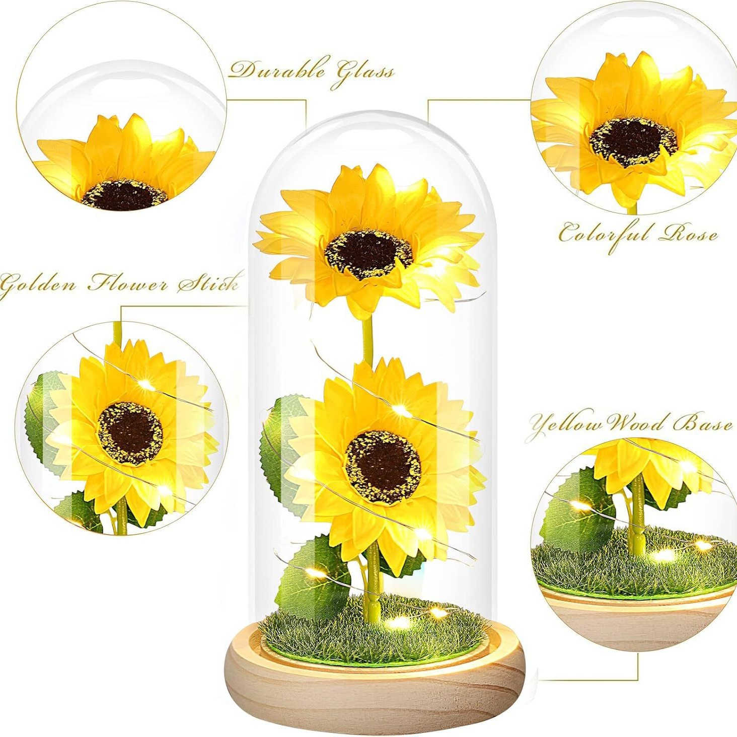 跨境永生花玻璃罩创意情人节礼物创意向日葵新款太阳花小夜灯摆件