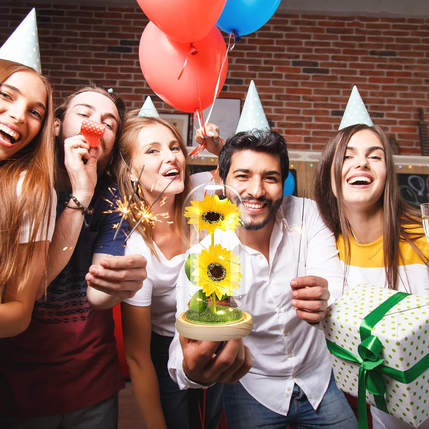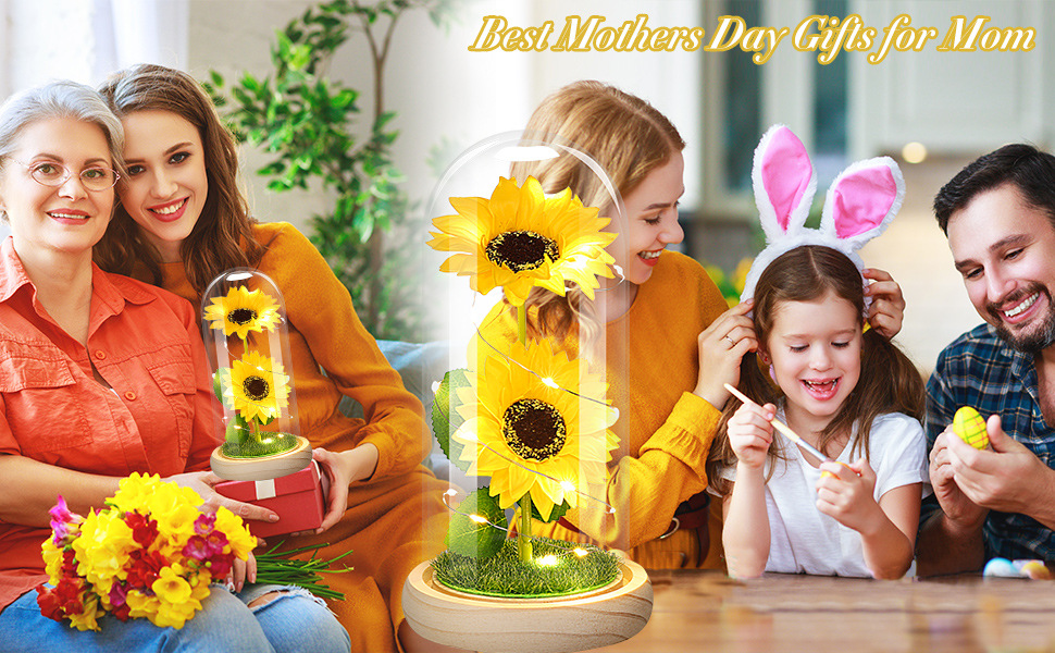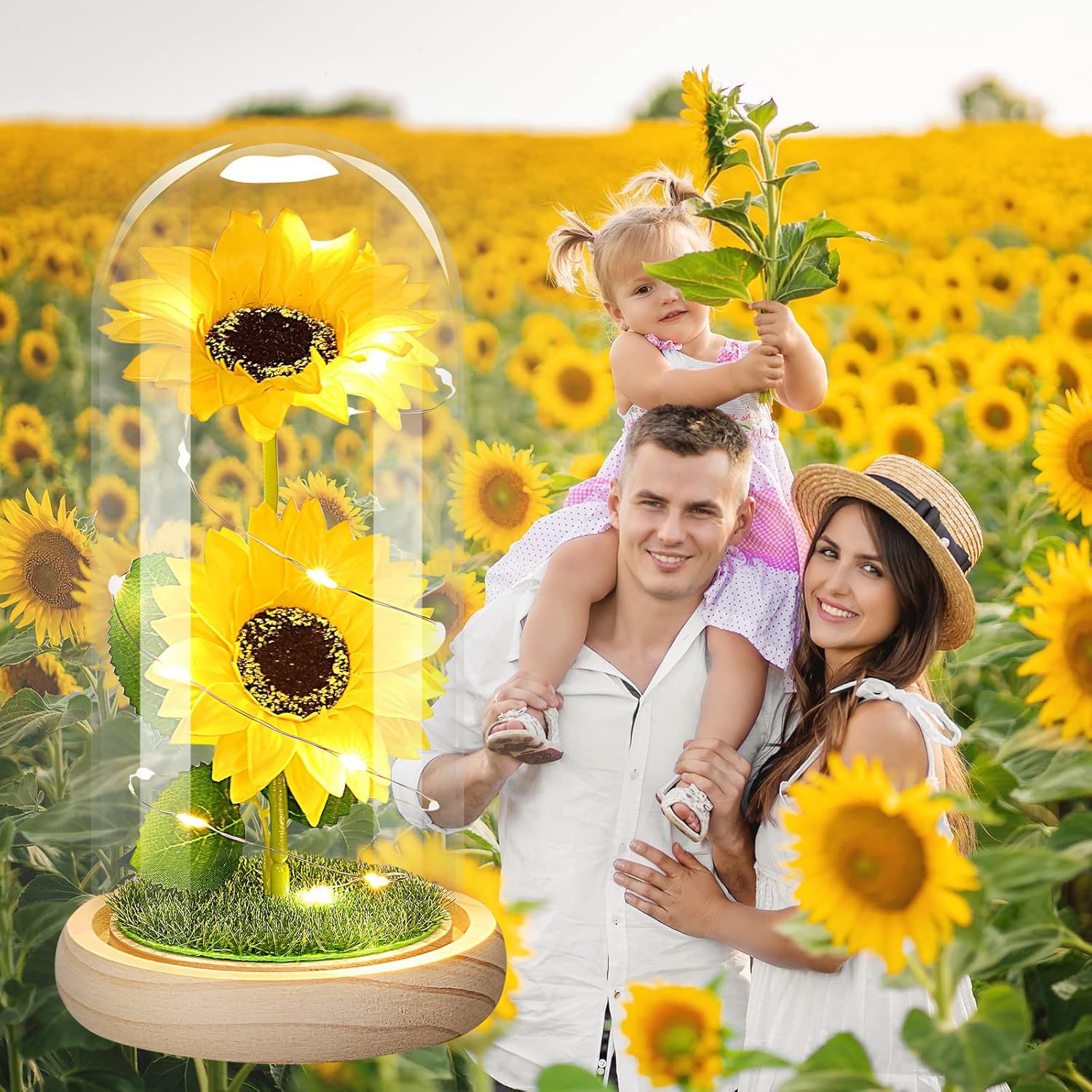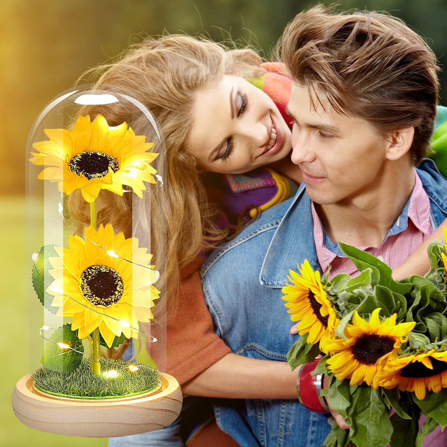 跨境永生花玻璃罩创意情人节礼物创意向日葵新款太阳花小夜灯摆件