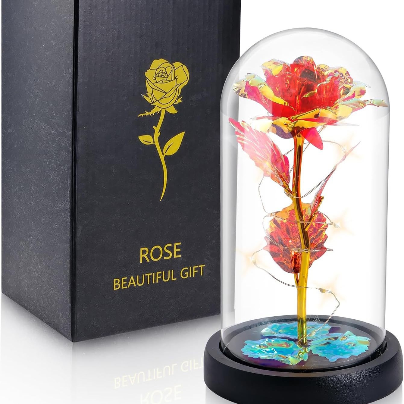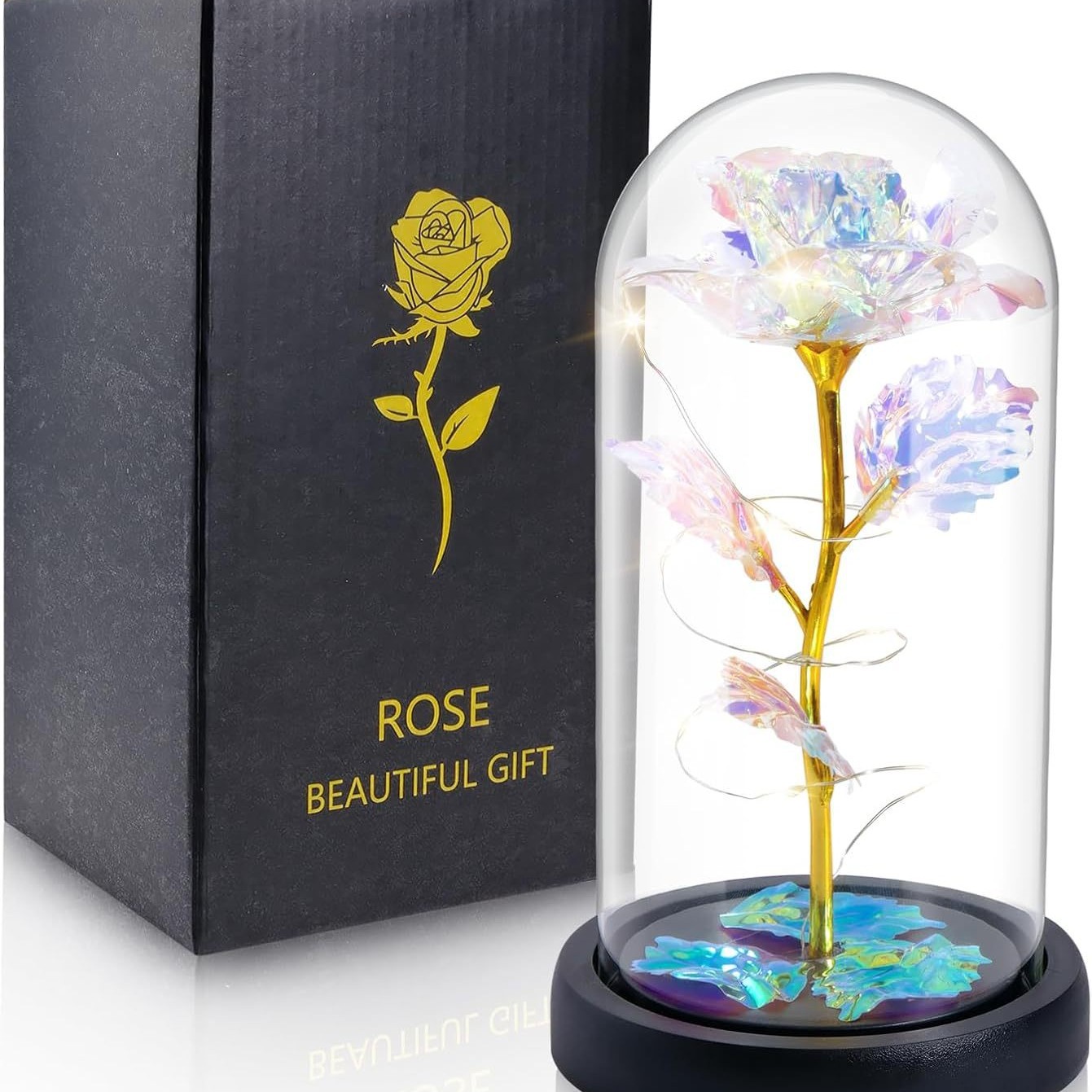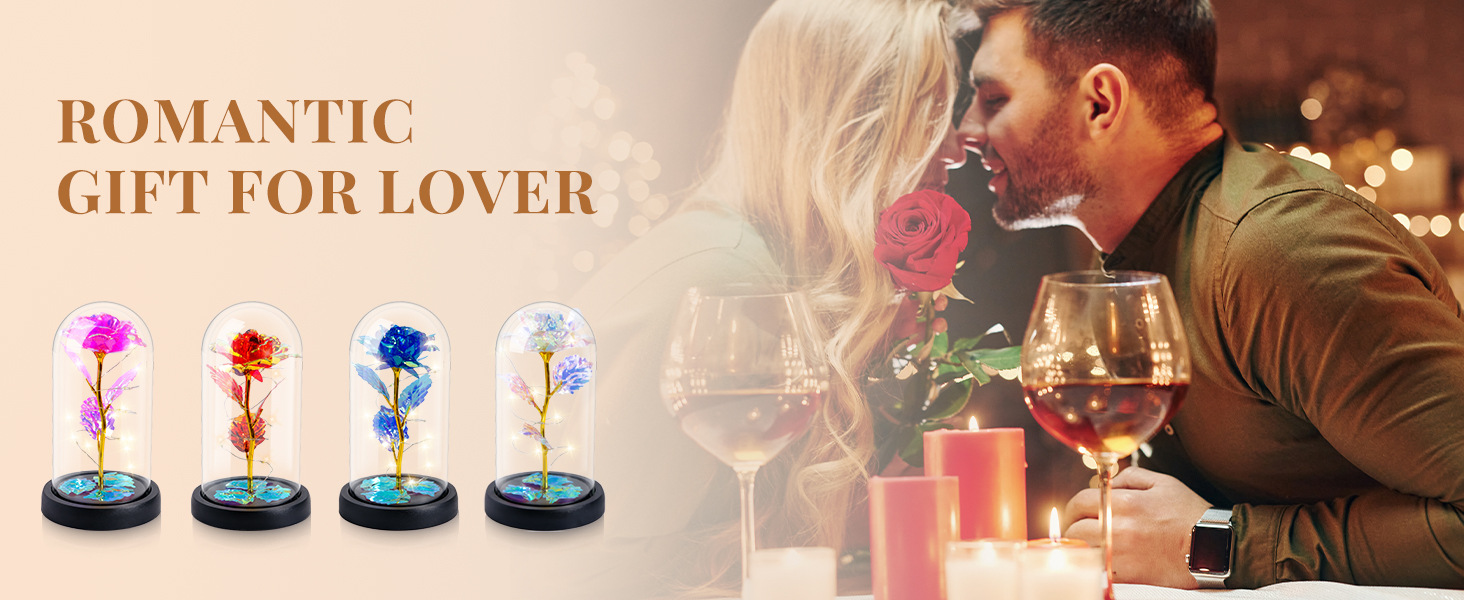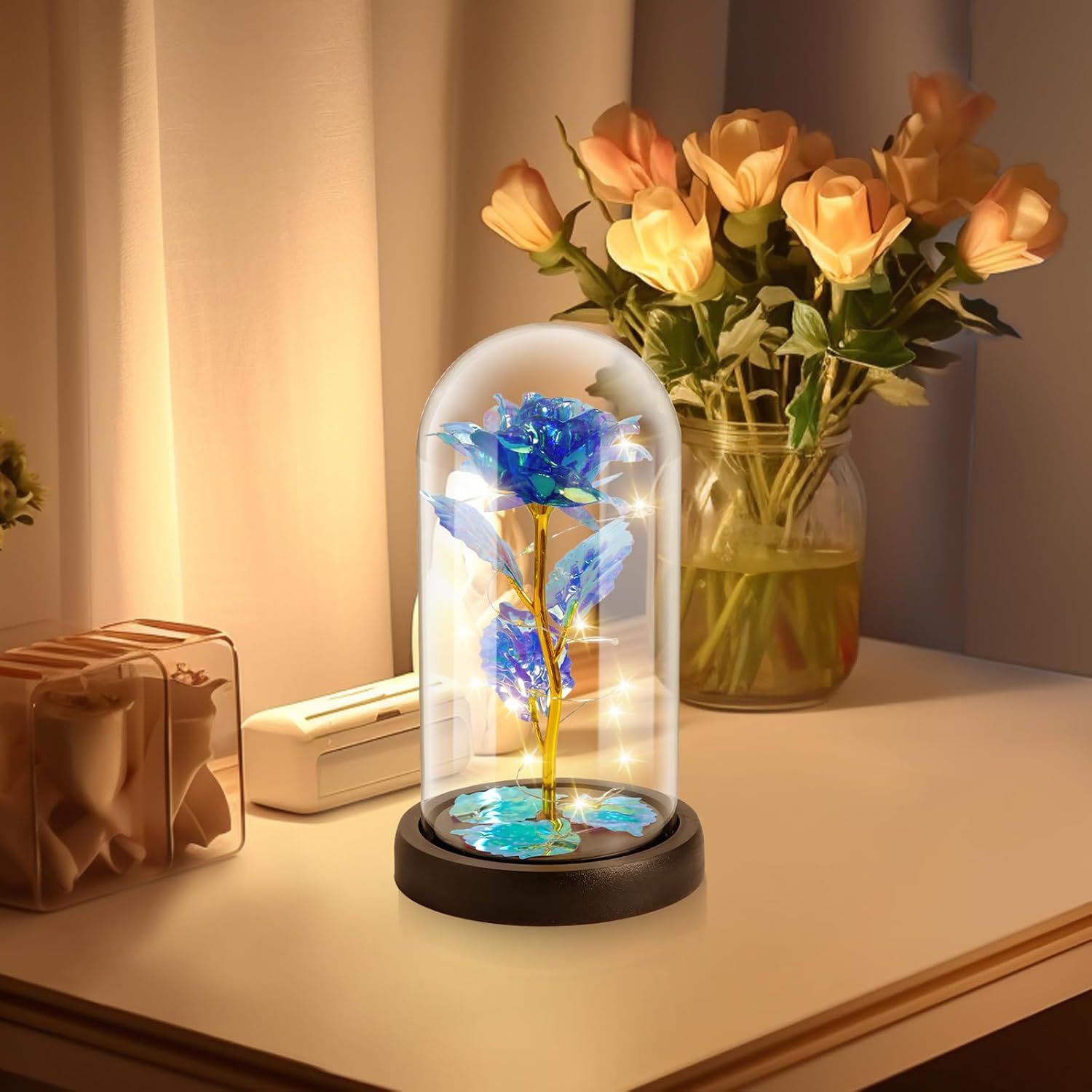 亚马逊永生花玫瑰花玻璃罩带灯妇女节母亲节生日礼物送女朋友摆件