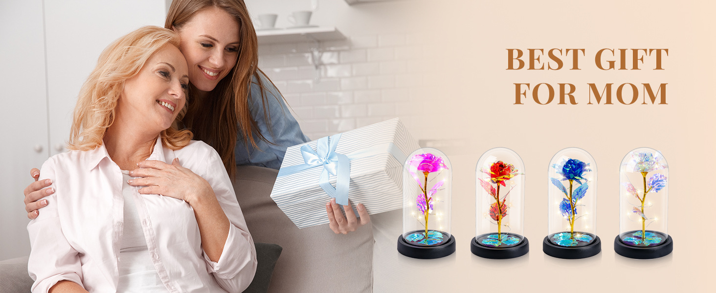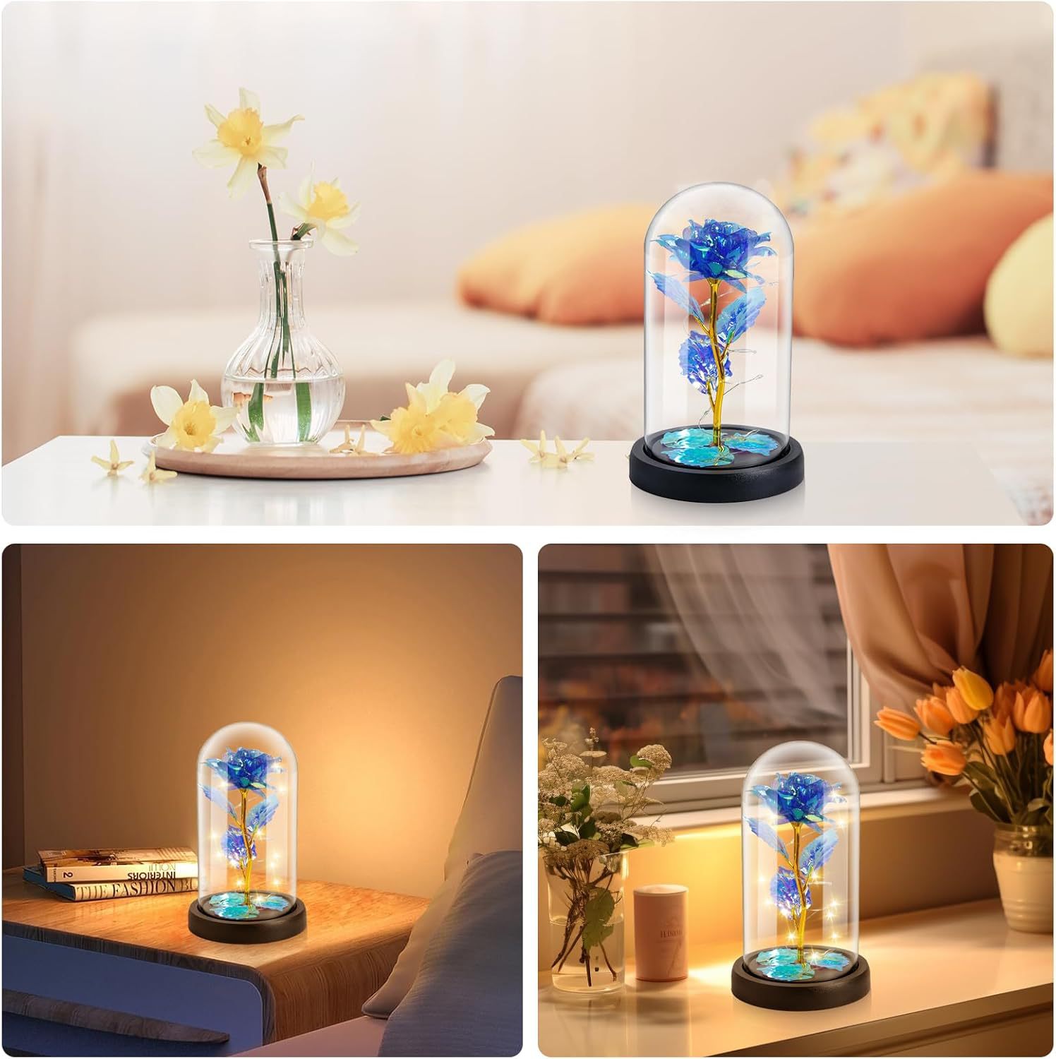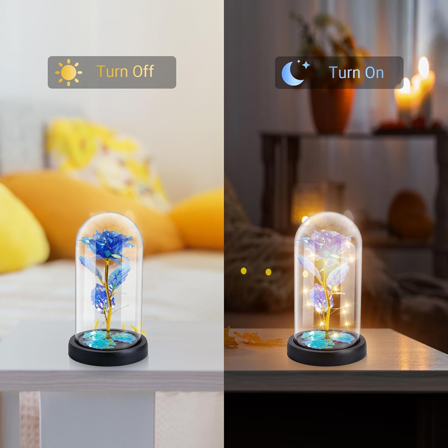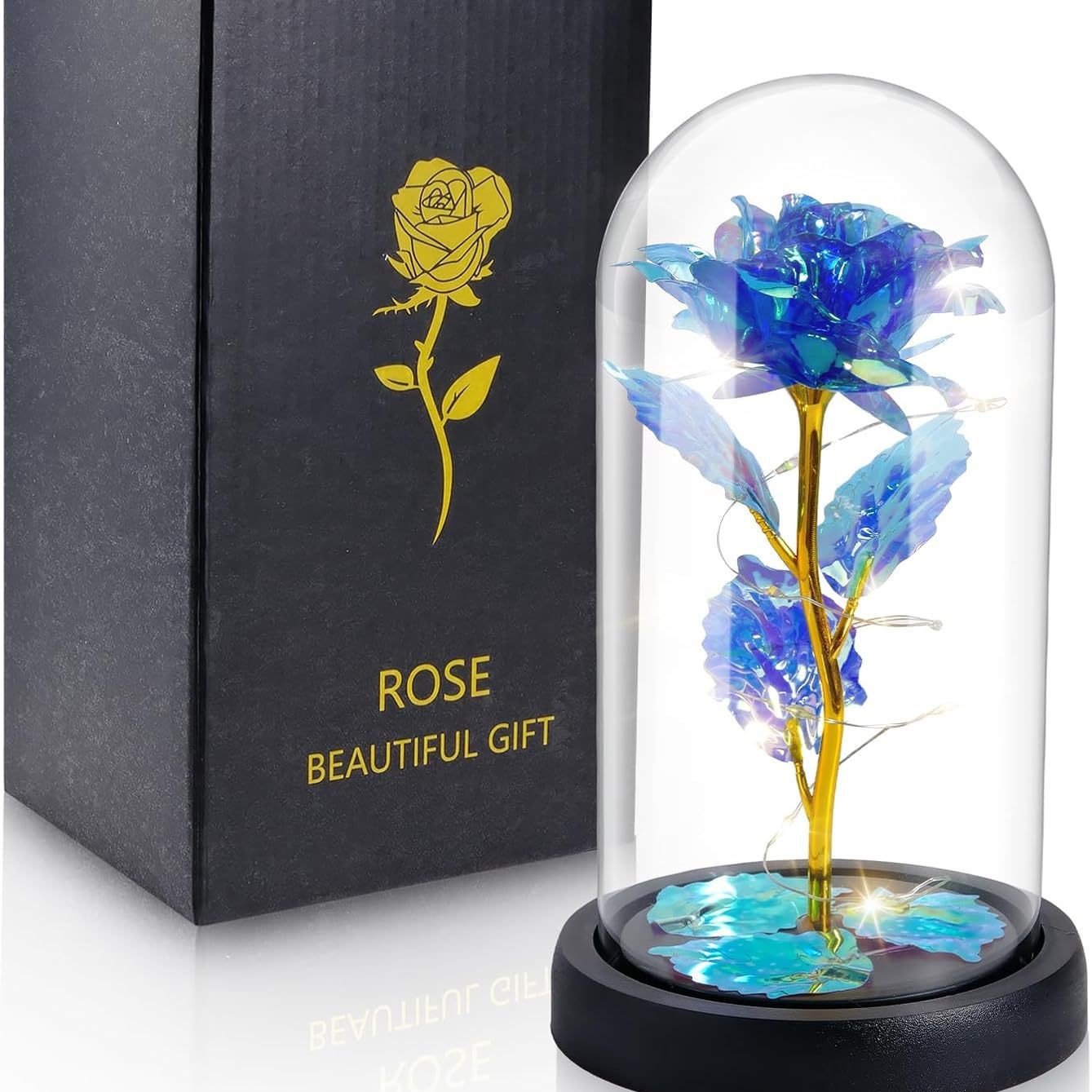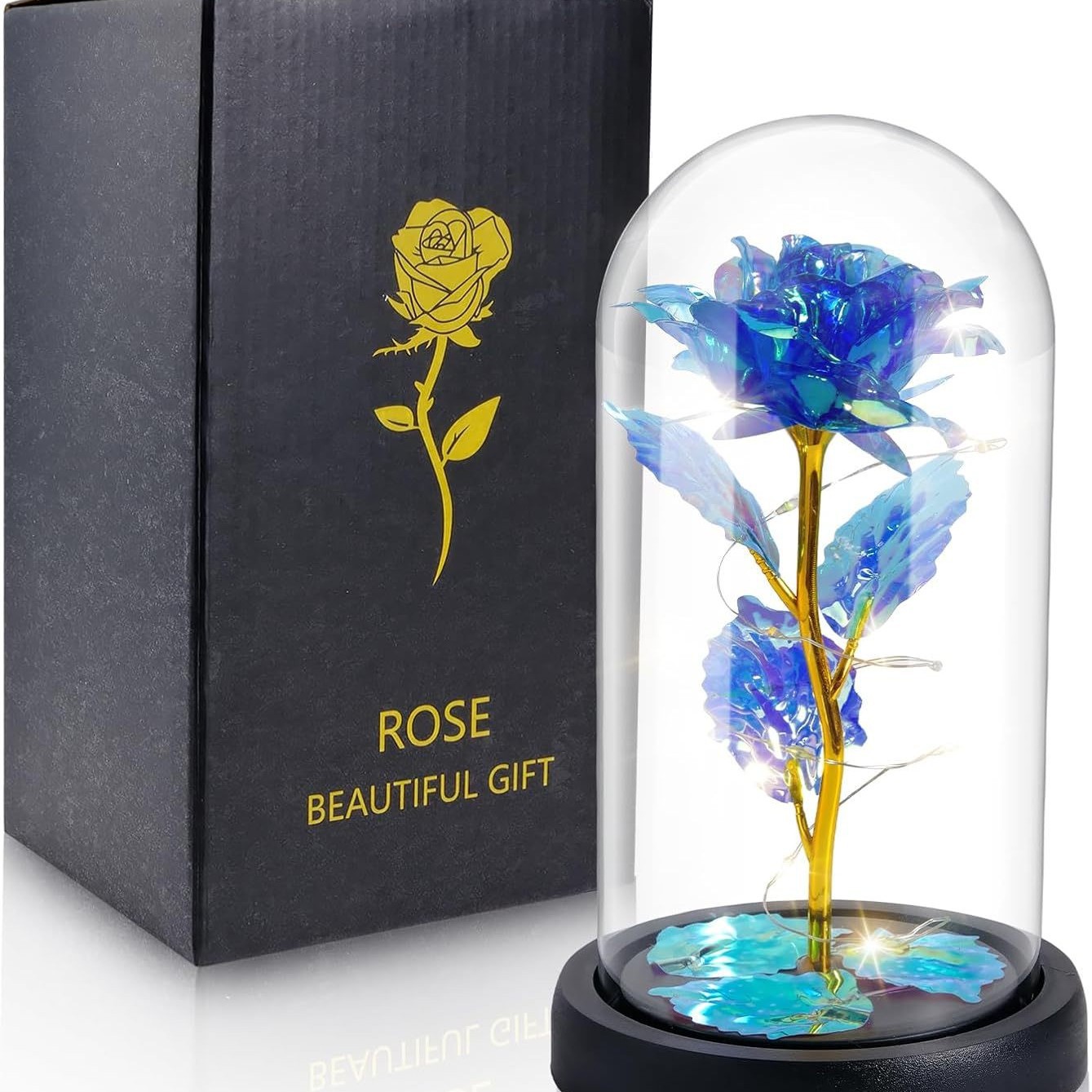 亚马逊永生花玫瑰花玻璃罩带灯妇女节母亲节生日礼物送女朋友摆件
