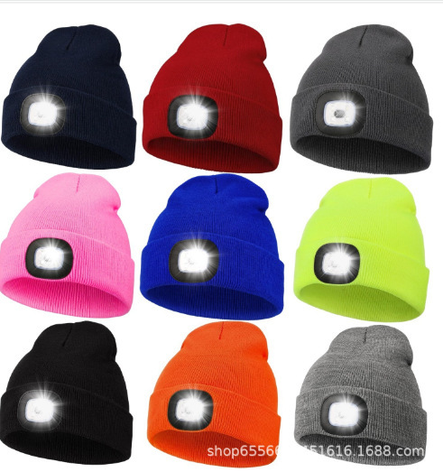 亚马逊爆款LED保暖照明针织帽夜行帽钓鱼帽发光led针织帽户外