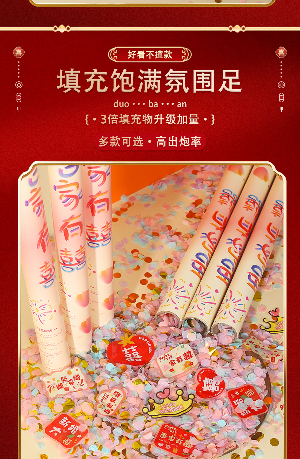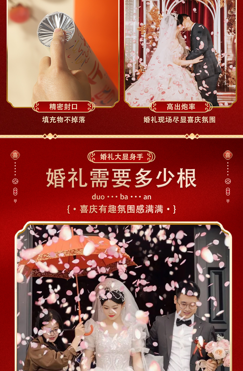 结婚礼炮手持礼花筒粉色花瓣雨婚庆用品大全手拧彩花喷筒婚礼彩带