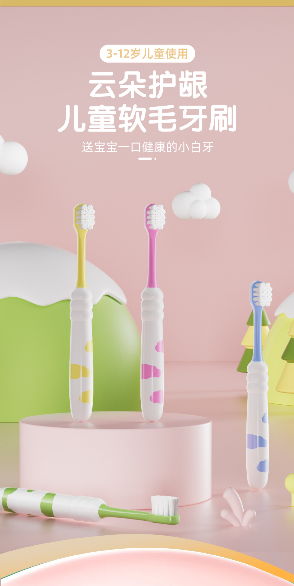 可诺儿童牙刷细软毛卡通护龈家用3-12岁宝宝十支桶装扬州牙刷批发