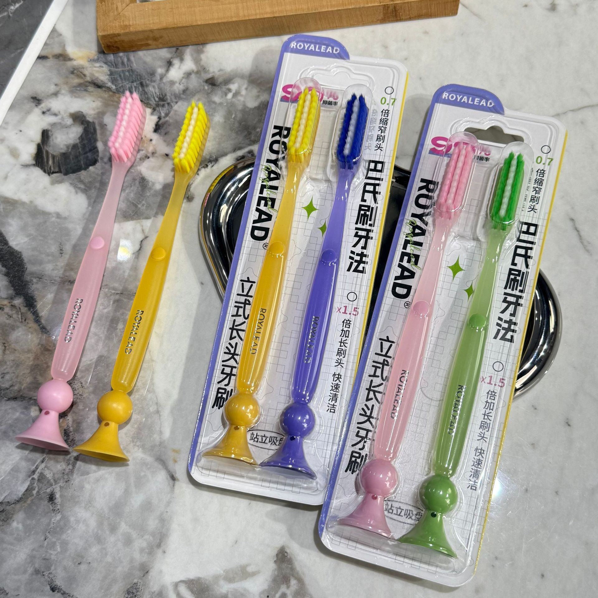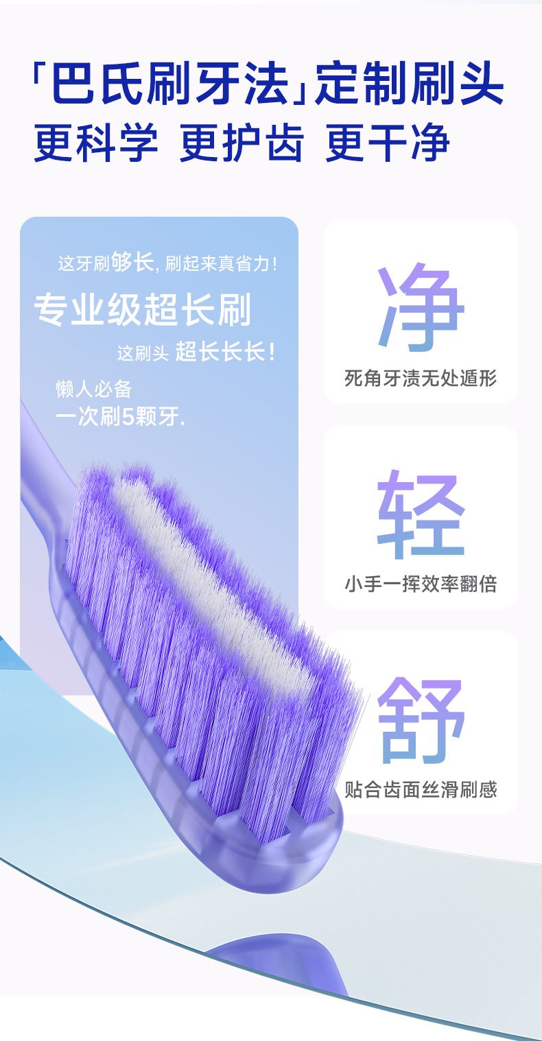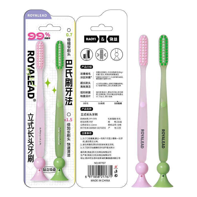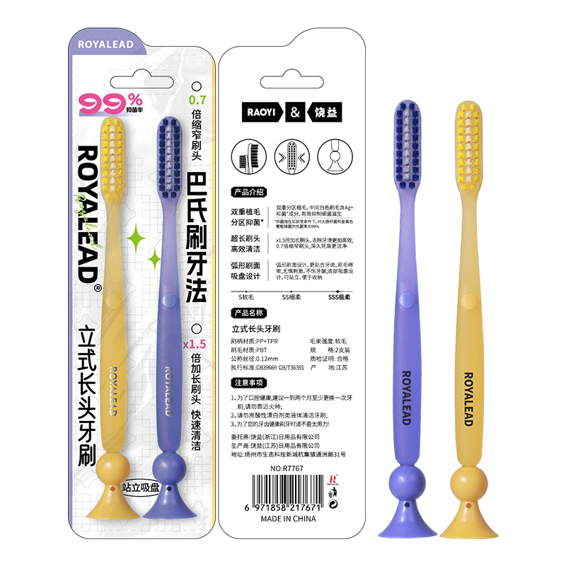 新款成人长头牙刷2支装可站立 家用大头懒人软毛牙刷厂家现货批发