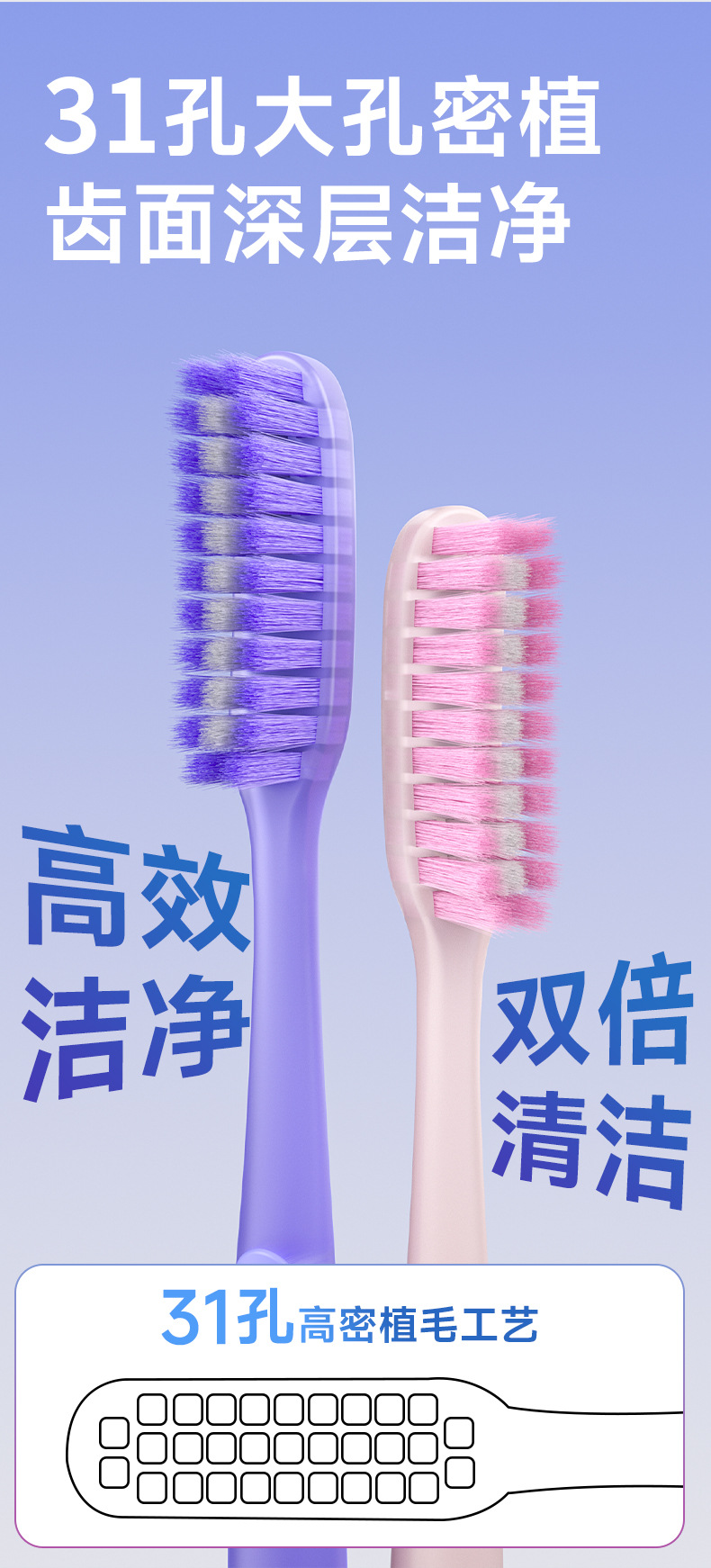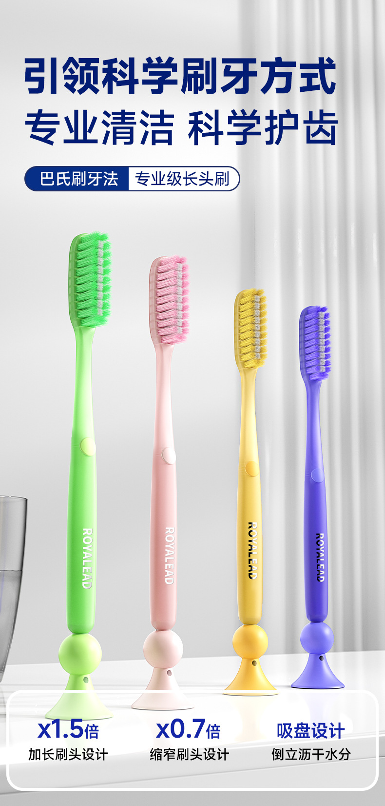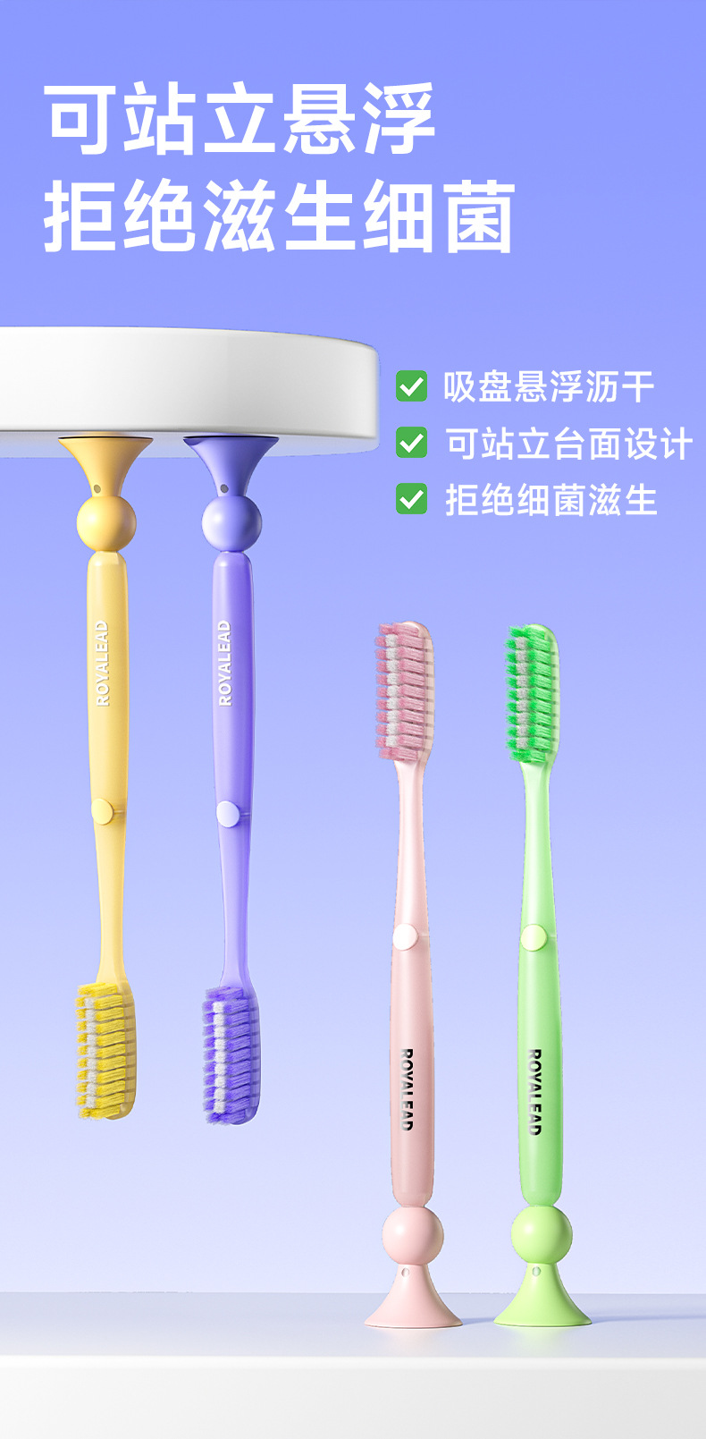 新款成人长头牙刷2支装可站立 家用大头懒人软毛牙刷厂家现货批发