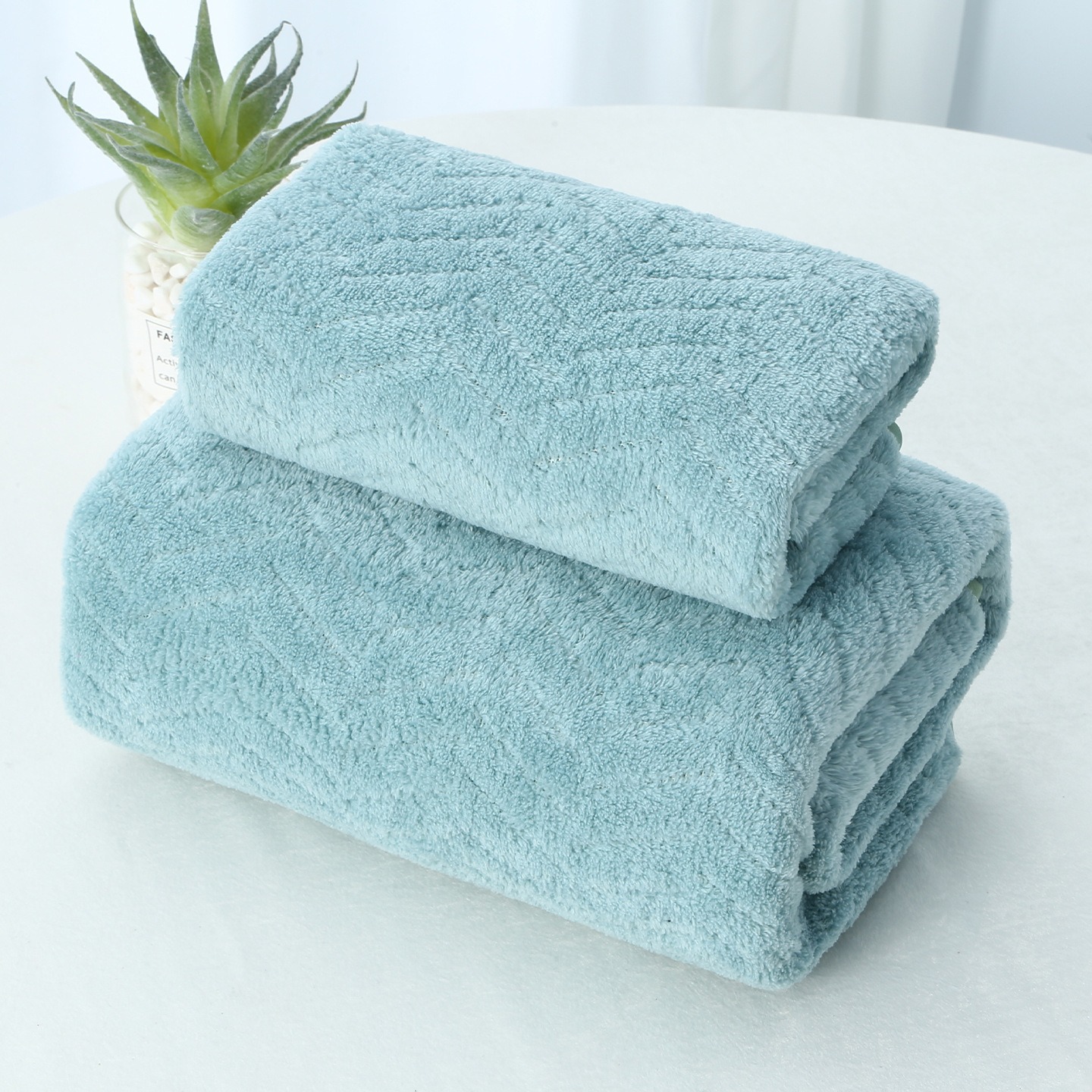 跨境定制素色麦穗毛巾浴巾亚马逊专供家用加厚吸水珊瑚绒洗脸巾