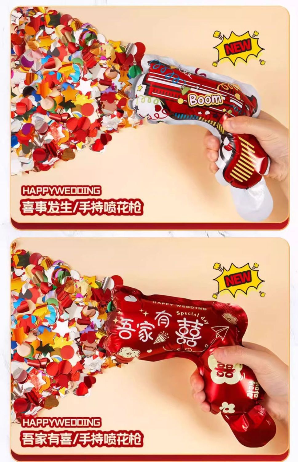 手持充气礼花枪拍照道具喷花枪婚庆用品创意接亲氛围感结婚礼炮