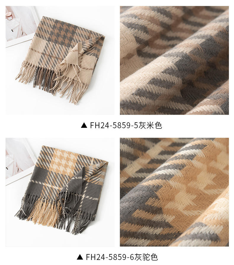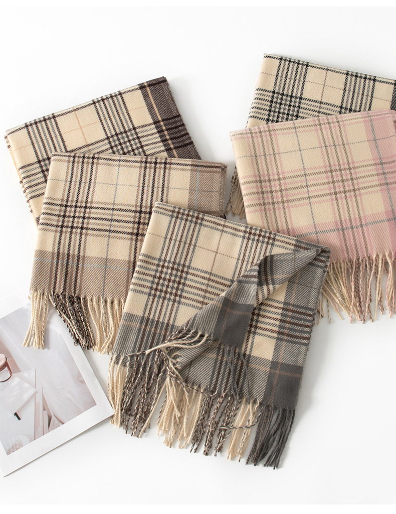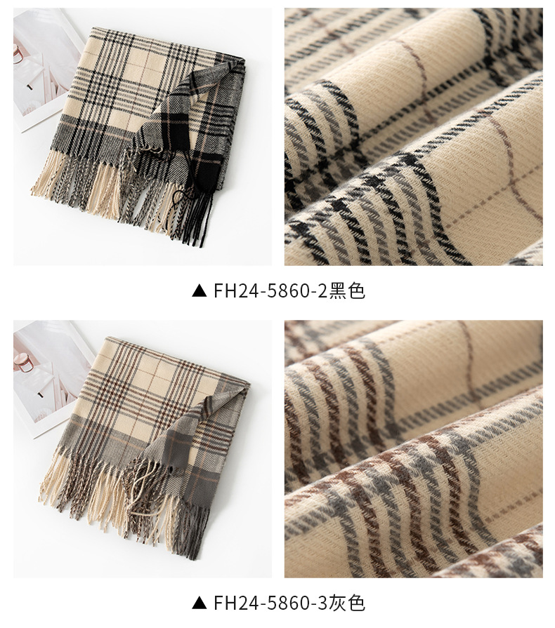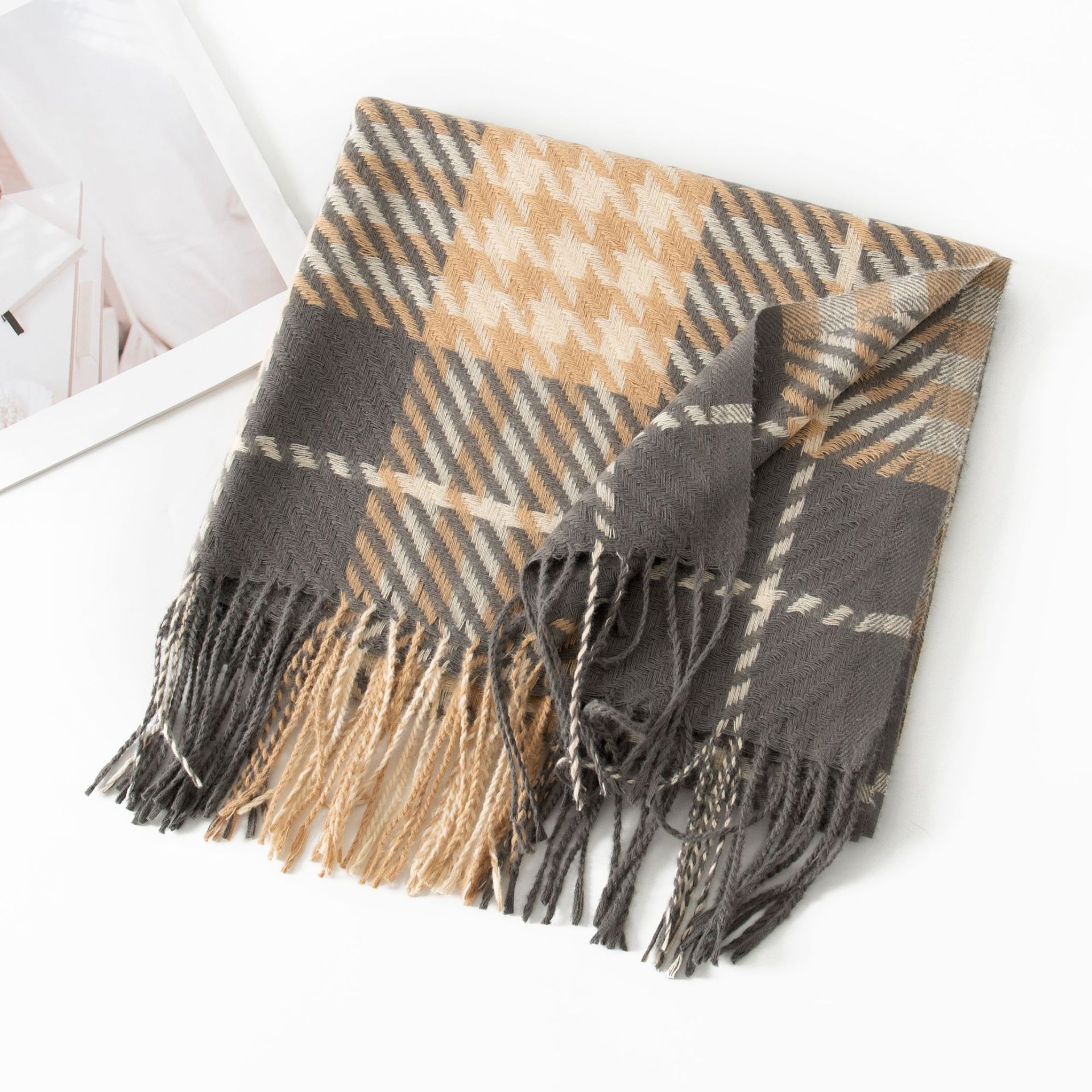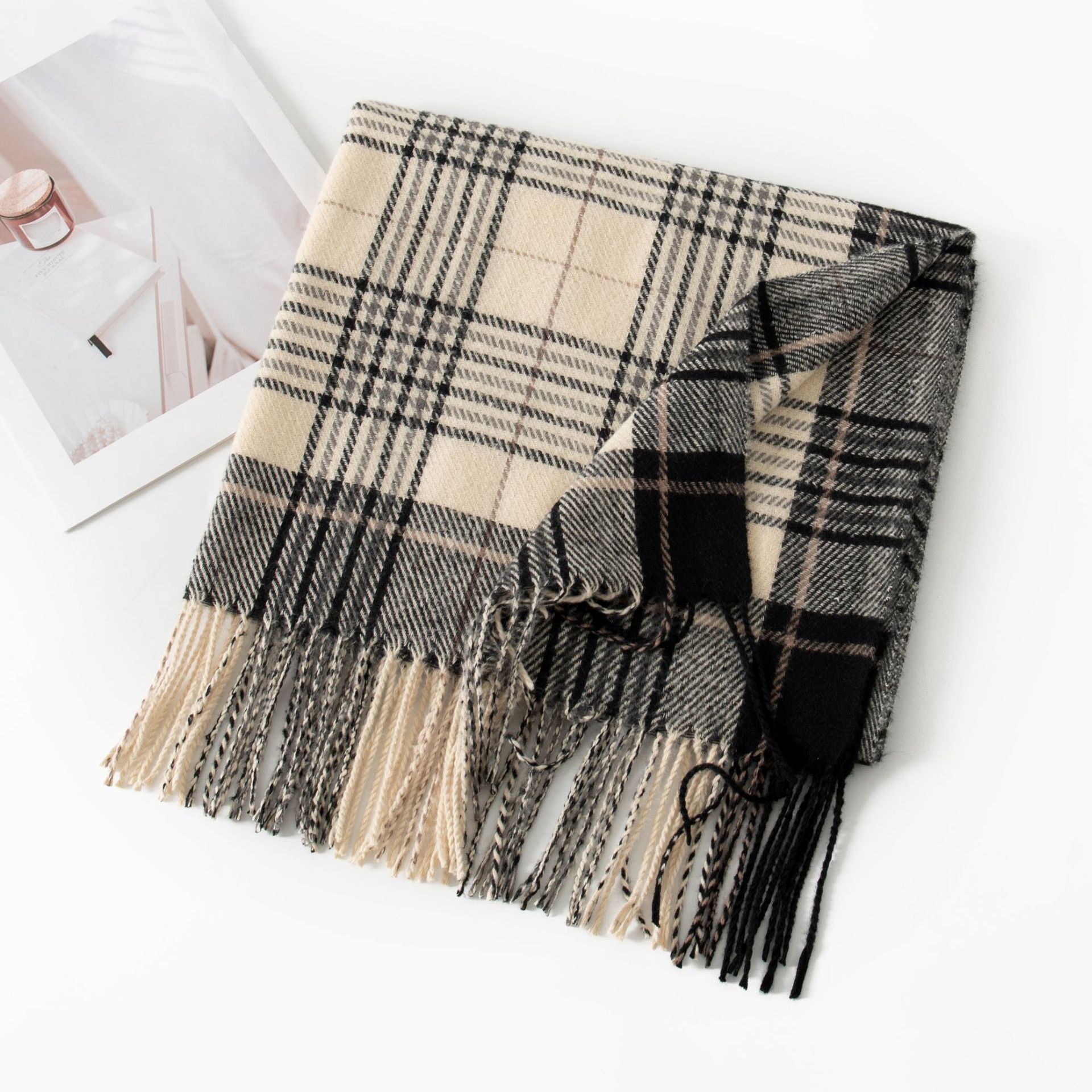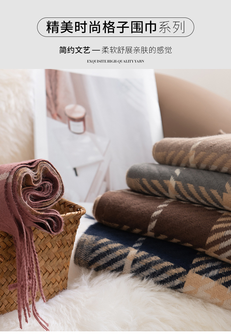 跨境新款韩版仿羊绒围巾高级感百搭格纹披肩情侣长款冬季保暖围脖