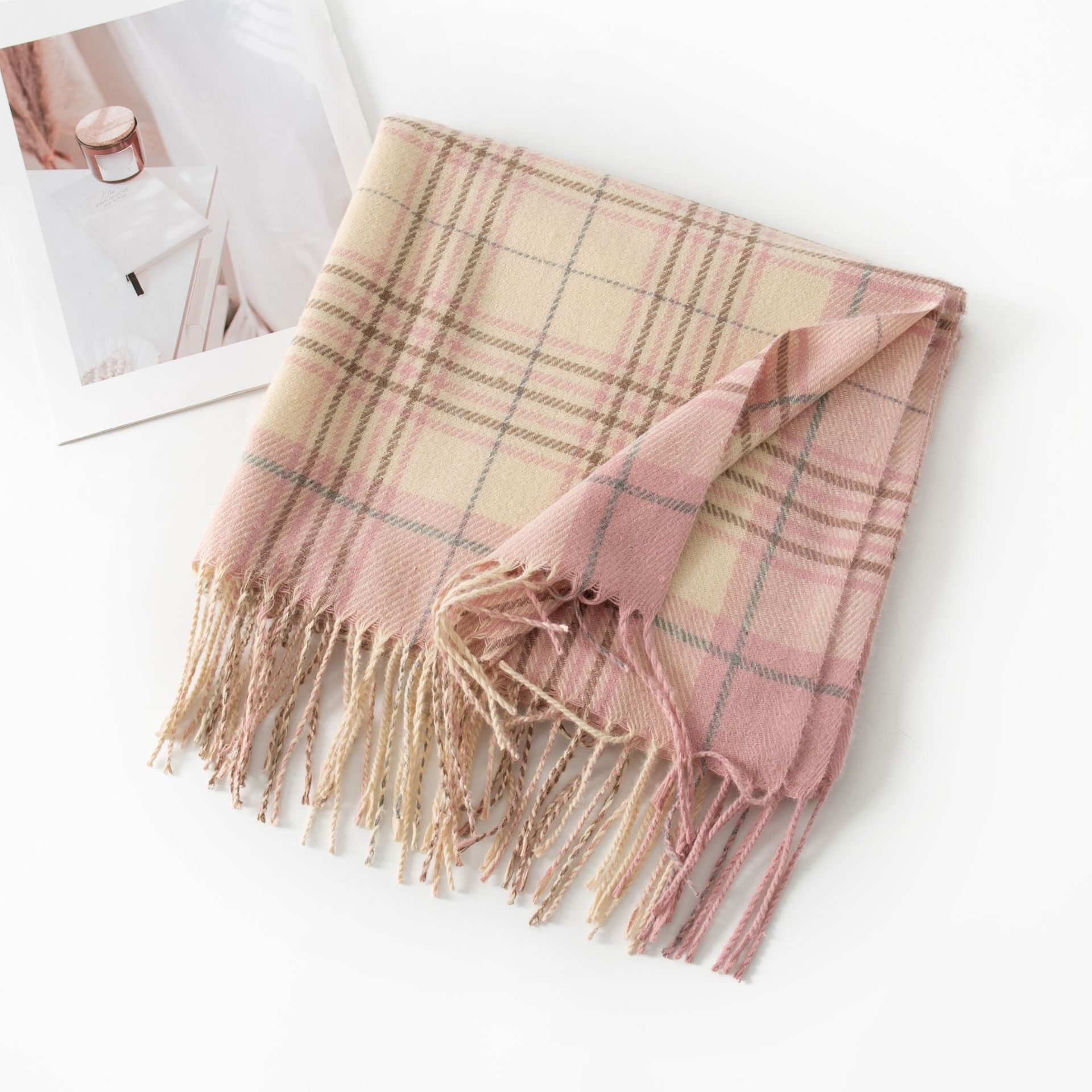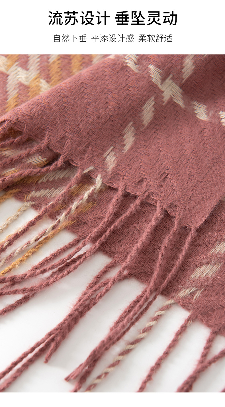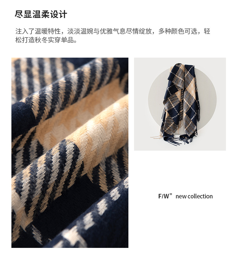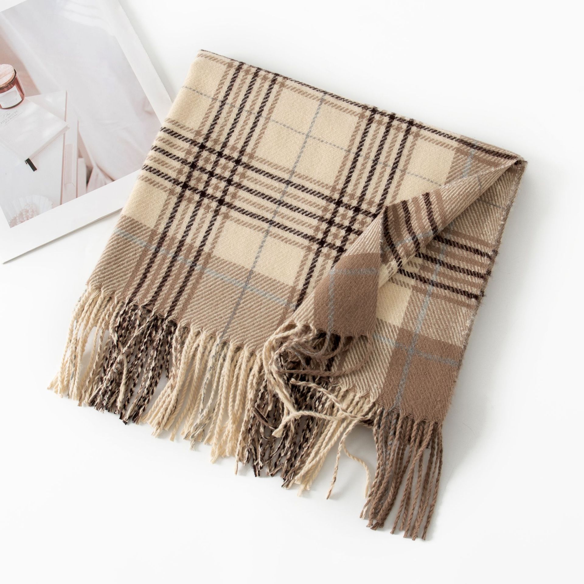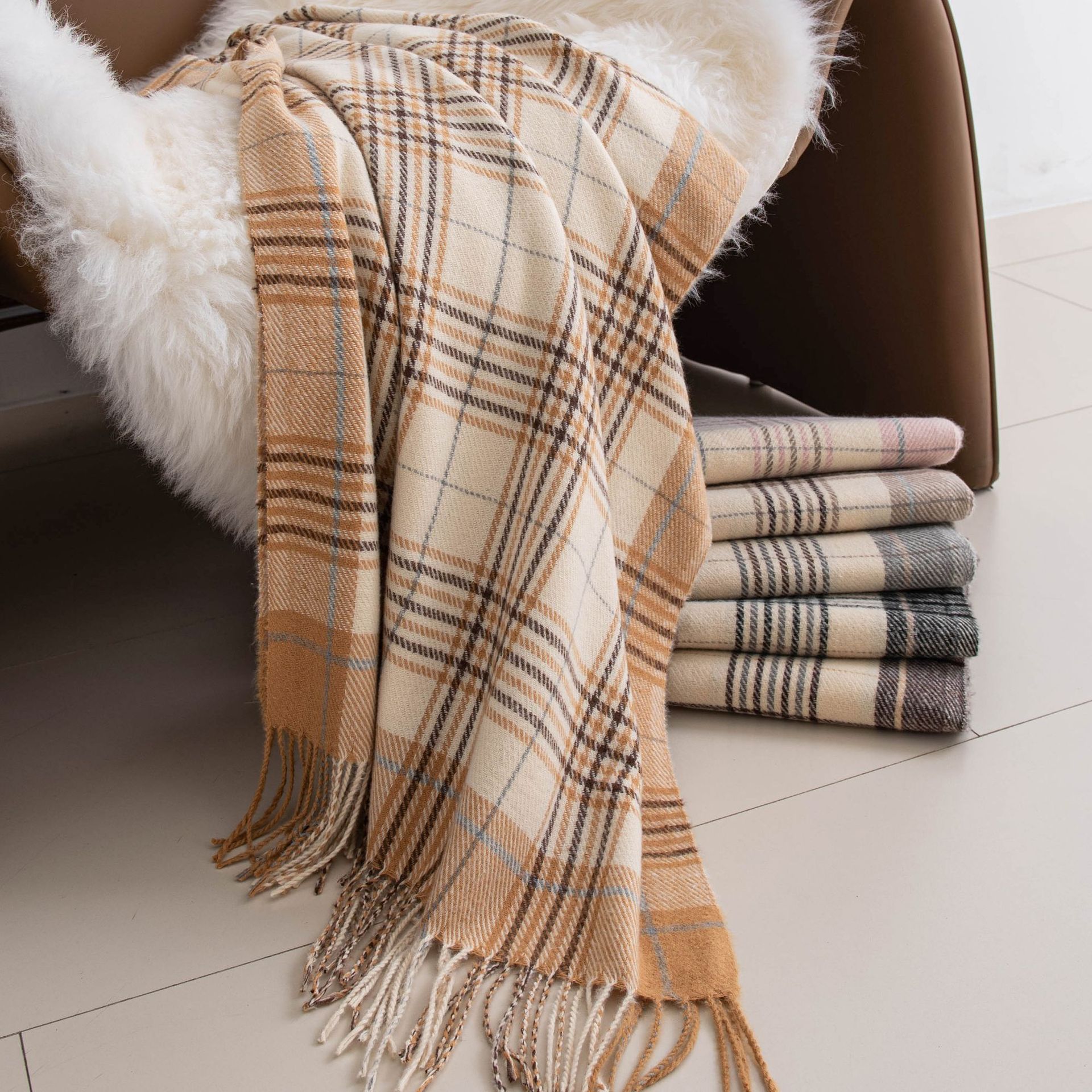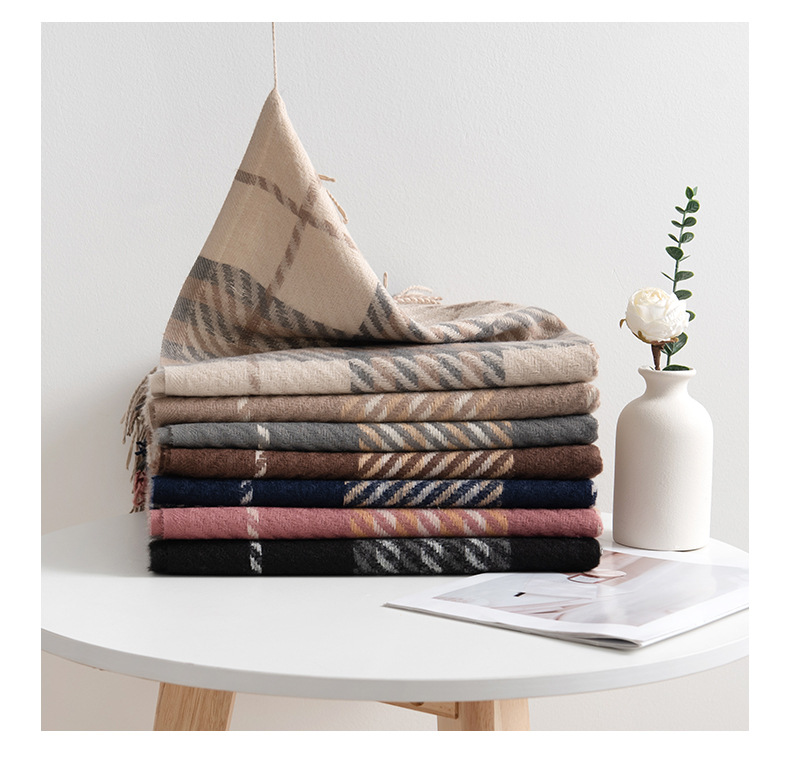 跨境新款韩版仿羊绒围巾高级感百搭格纹披肩情侣长款冬季保暖围脖