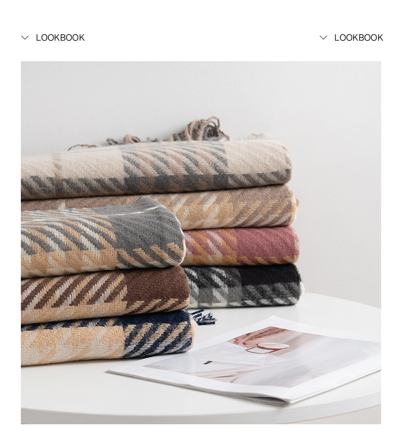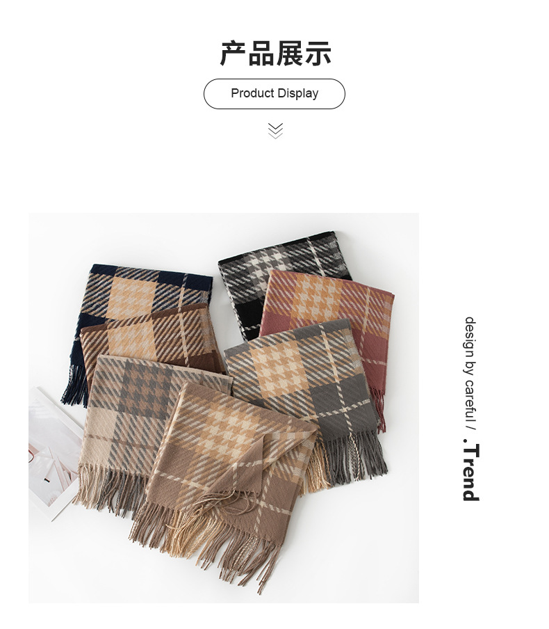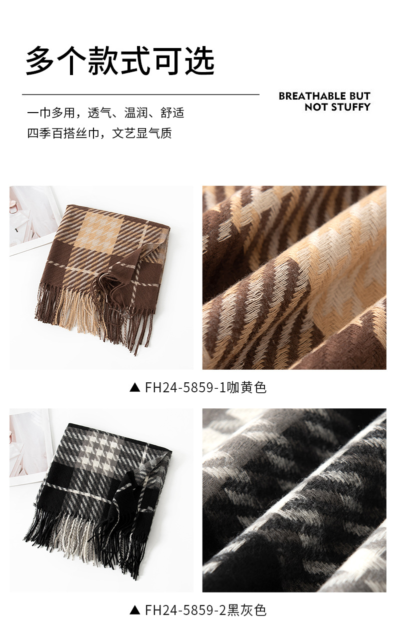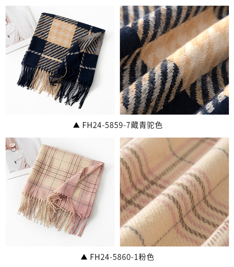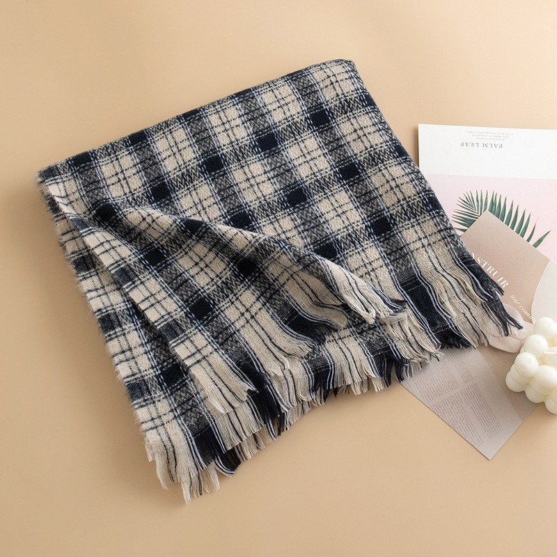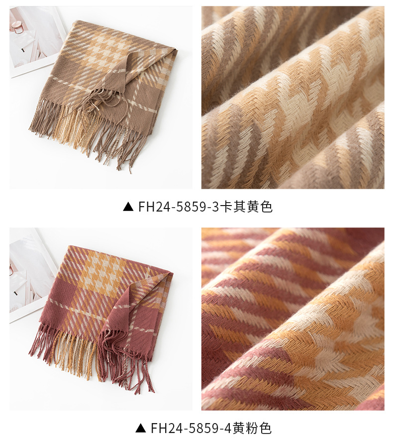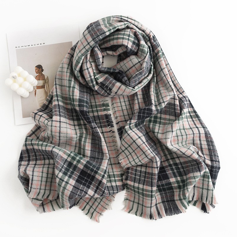 跨境新款韩版仿羊绒围巾高级感百搭格纹披肩情侣长款冬季保暖围脖