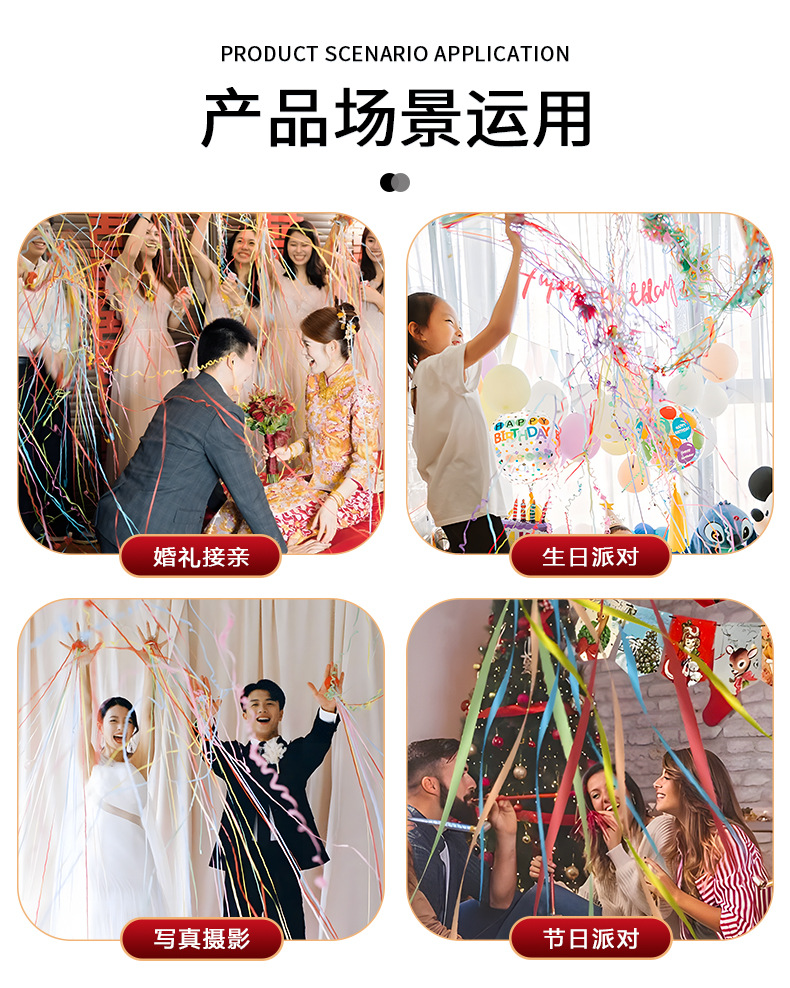 手抛彩带拉花彩条拉炮礼炮婚礼气氛道具丝带生日喷筒手持结婚礼花