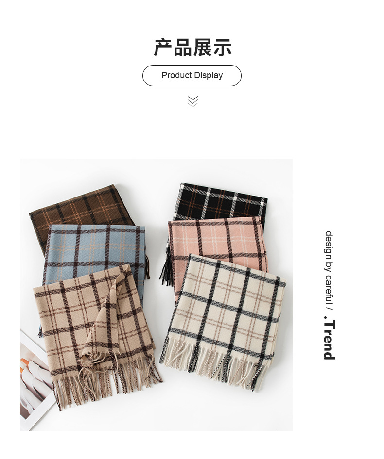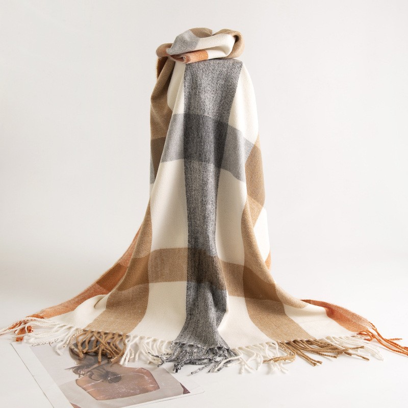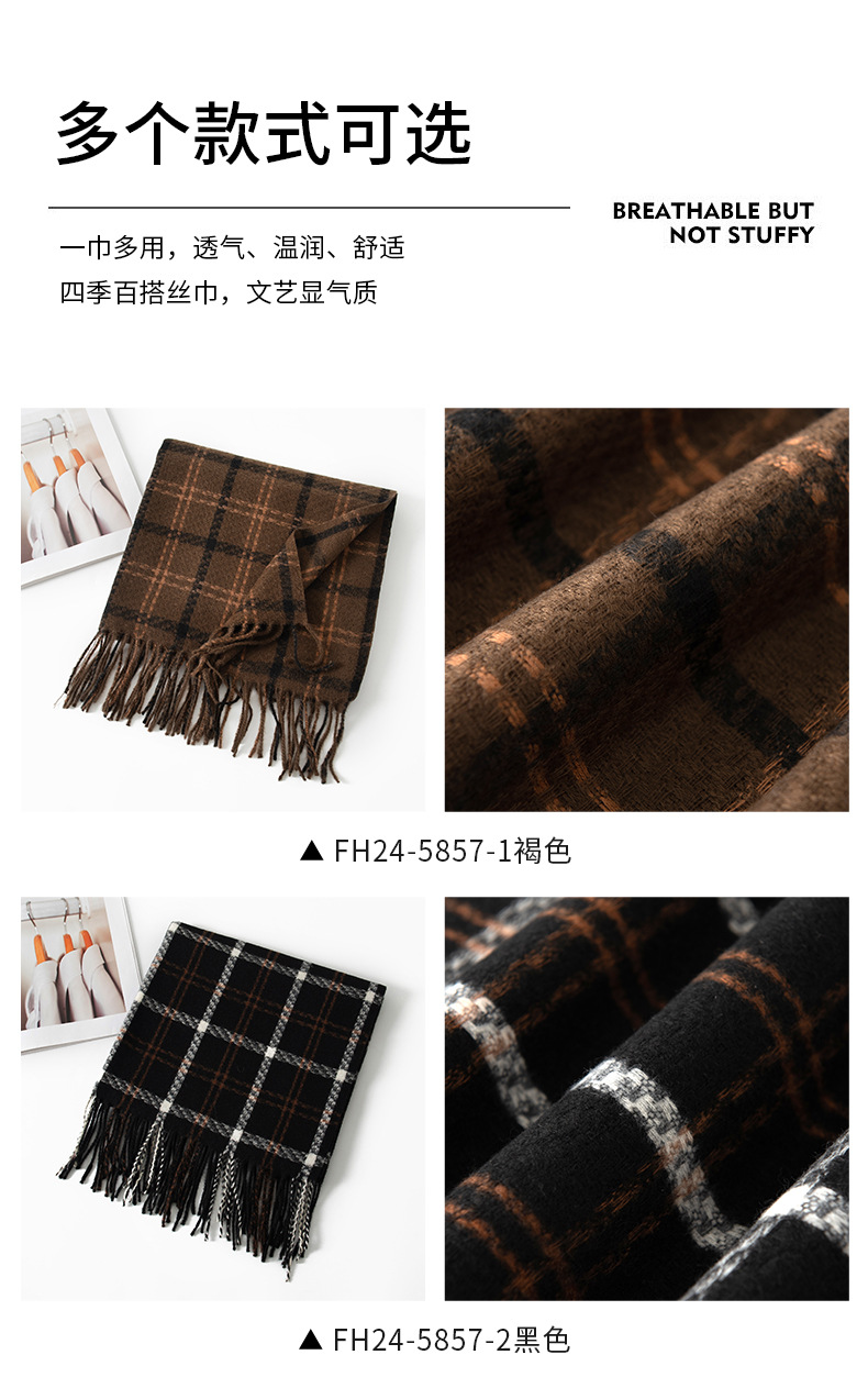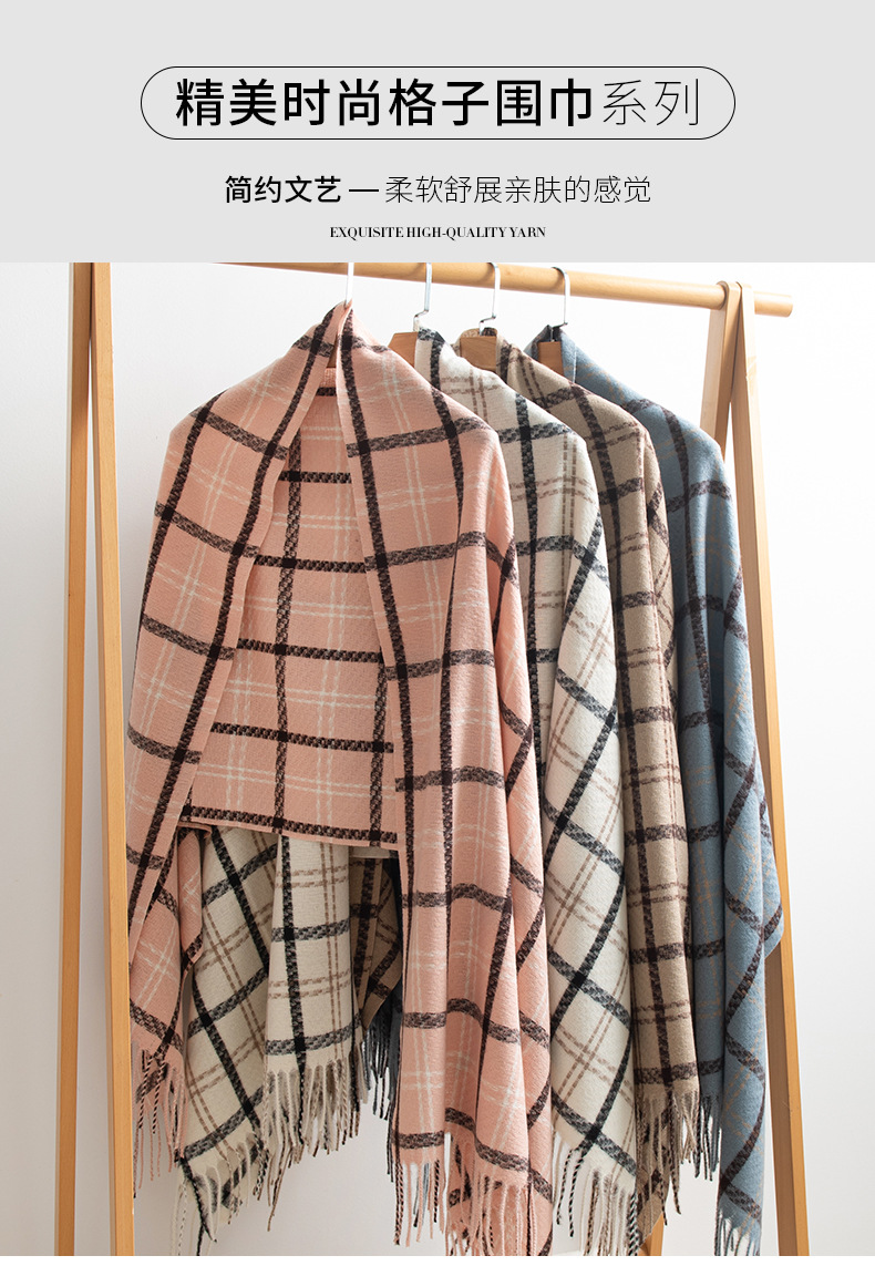 2024新款韩版仿羊绒围巾格纹加厚防寒披肩学生长款秋冬季保暖围脖